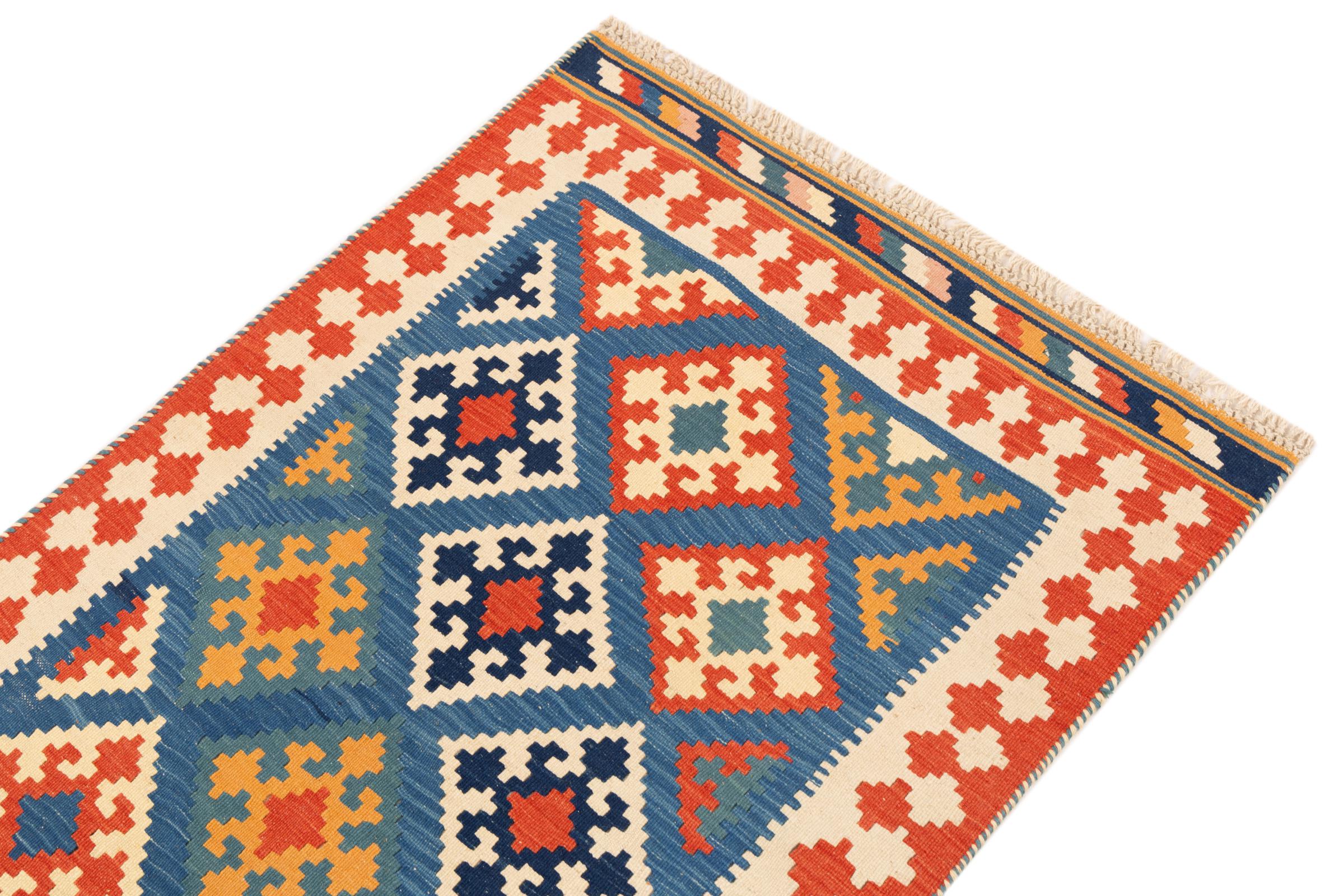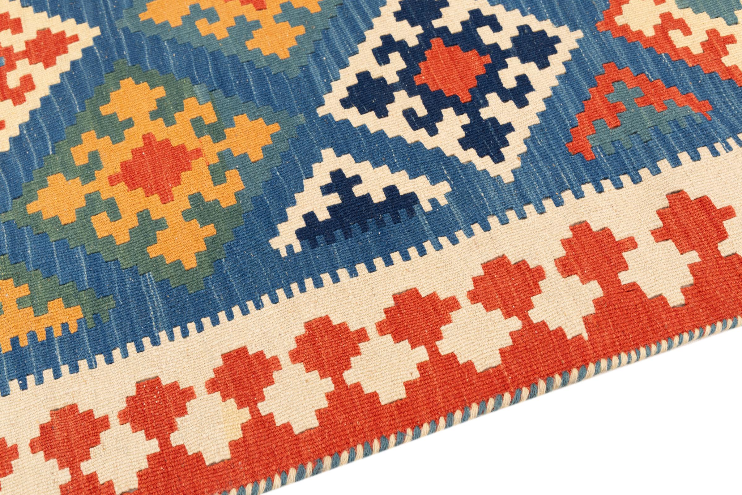 Dit tapijt is met de hand gemaakt op een weefgetouw als plat weefgetouw. Flatweave is de term die wordt gebruikt om tapijten zonder pool te beschrijven. Zoals de naam al belooft, zijn deze tapijten geweven en niet geknoopt. Dit resulteert in een vlak tapijt met een gestructureerd oppervlak. Platweefsels zijn niet zo zacht en meestal dunner dan geknoopte tapijten. Tegelijkertijd zijn ze veel minder complex te vervaardigen en kunnen ze meestal aan beide zijden (voor- en achterkant) worden gelegd. Hun patronen zijn meestal geometrisch, wat wordt bepaald door de stof.
