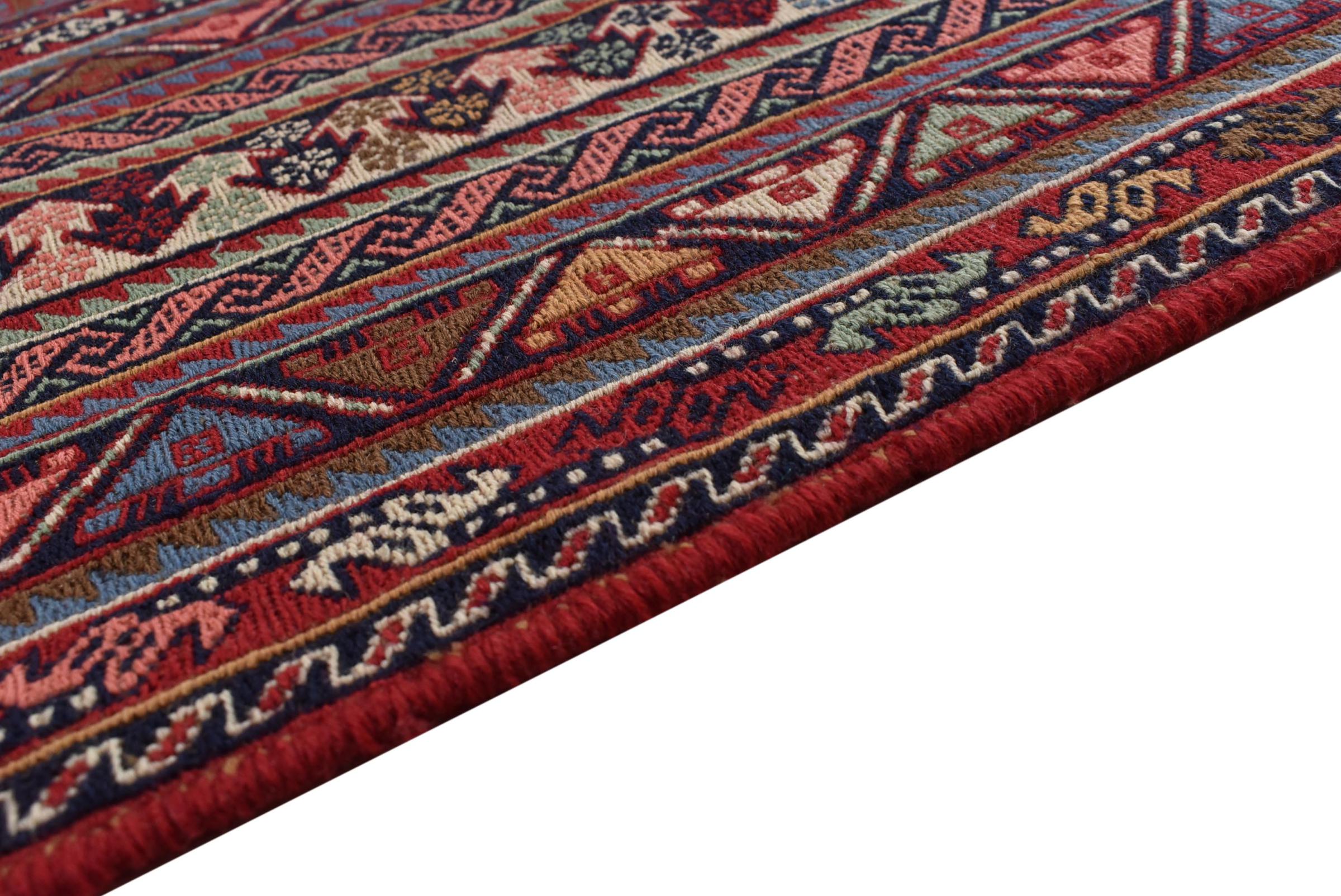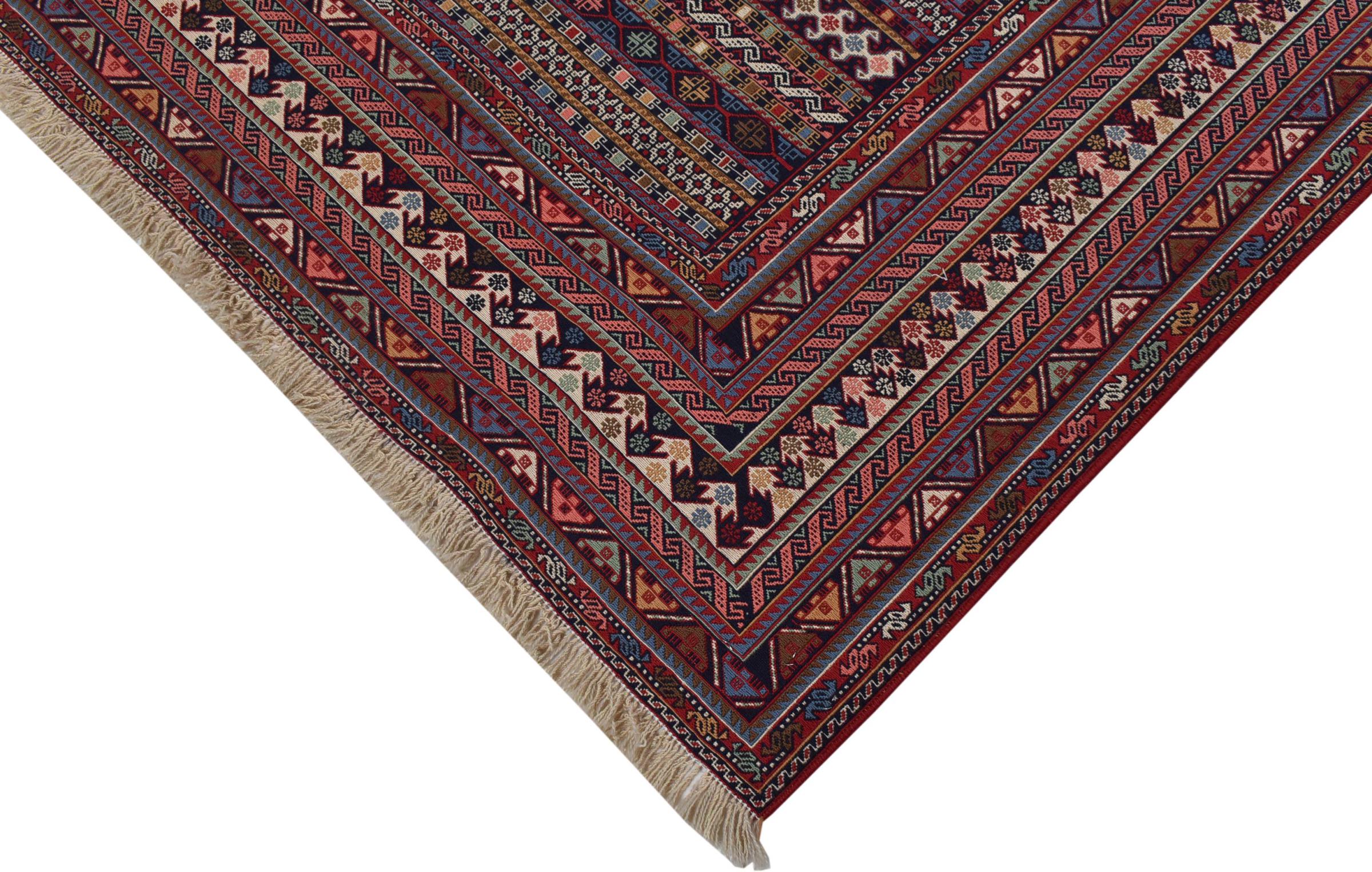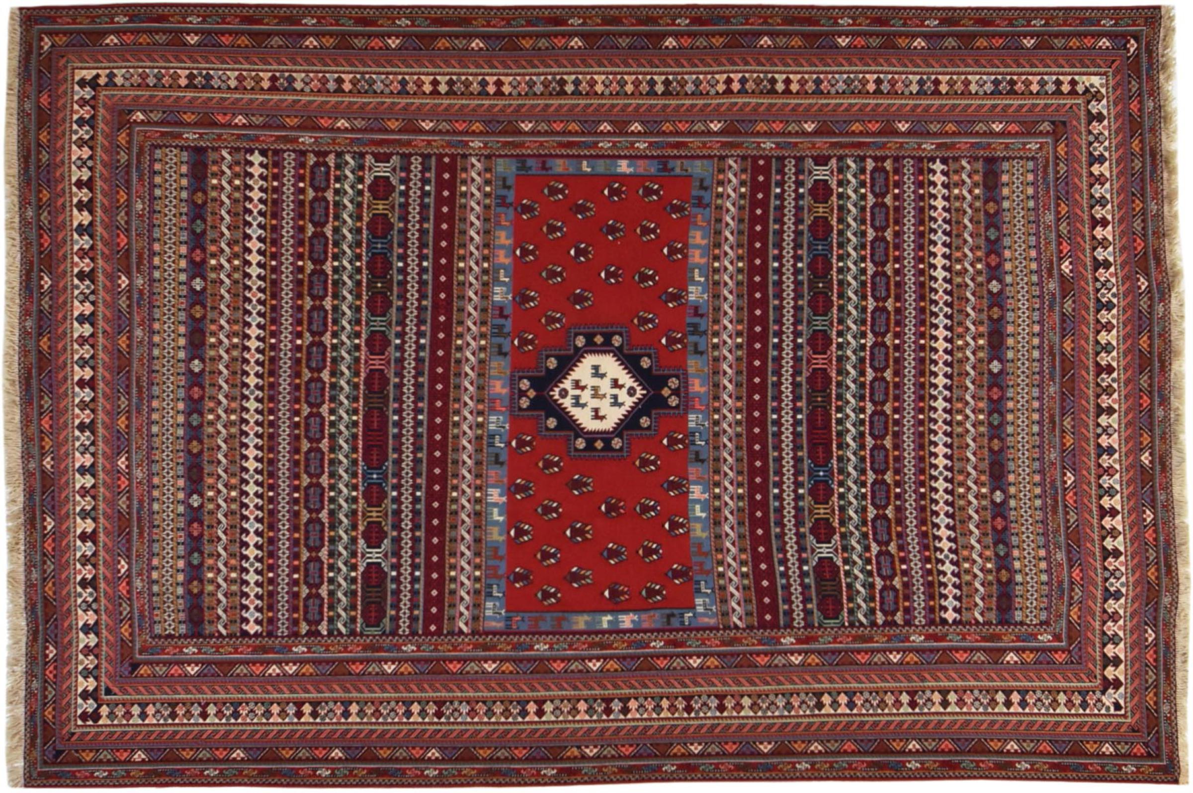 Deze handgeweven kilim fars combineert Perzische patronen en ornamenten met de traditie van platbindingen. Een geweldige en moderne combinatie van de meest populaire concepten van de Oriënt. Zo ontstaat een tapijt met een breed scala aan toepassingen. Of het nu gaat om sprei of als vloerkleed voor de bank - een Fars kelim maakt het mogelijk en is nu te vinden in de meest bekende interieurmagazines. Kelim Fars-tapijten worden met de hand geweven in Iran en behoren daarom tot de hoogste kwaliteit kelims.