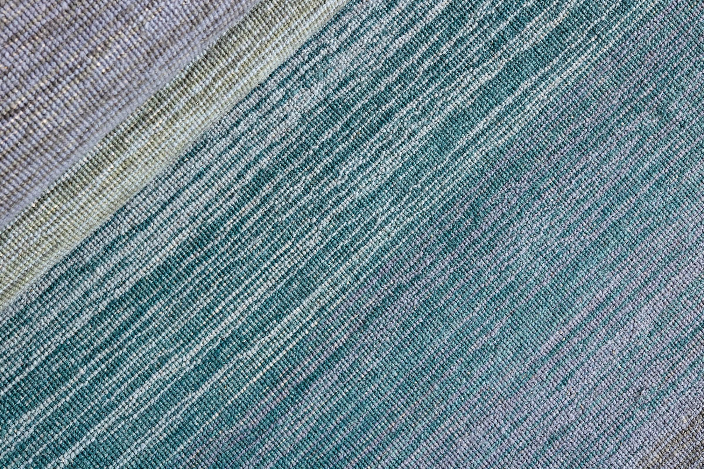 Dit tapijt is met de hand gemaakt op een weefgetouw als plat weefgetouw. Flatweave is de term die wordt gebruikt om tapijten zonder pool te beschrijven. Zoals de naam al belooft, zijn deze tapijten geweven en niet geknoopt. Dit resulteert in een vlak tapijt met een gestructureerd oppervlak. Platweefsels zijn niet zo zacht en meestal dunner dan geknoopte tapijten. Tegelijkertijd zijn ze veel minder complex te vervaardigen en kunnen ze meestal aan beide zijden (voor- en achterkant) worden gelegd. Hun patronen zijn meestal geometrisch, wat wordt bepaald door de stof.