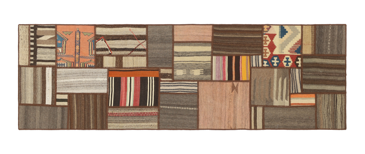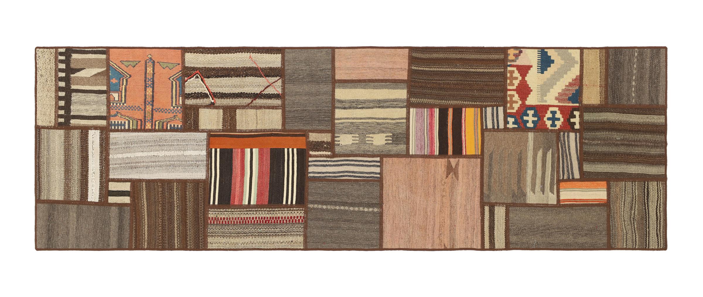 Deze prachtige patchwork kelim brengt het fijne vakmanschap van getalenteerde meester tapijtwevers uit Iran, Afghanistan, Turkije en de Kaukasus samen. De individuele stukken van traditioneel gemaakte kelims werden gereinigd, bewerkt en samengevoegd tot een nieuw patroon. Het resultaat is een oosters tapijt met een uniek patchwork-achtig ontwerp dat zowel licht als robuust is dankzij de geweven structuur.