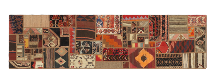 Deze prachtige patchwork kelim brengt het fijne vakmanschap van getalenteerde meester tapijtwevers uit Iran, Afghanistan, Turkije en de Kaukasus samen. De individuele stukken van traditioneel gemaakte kelims werden gereinigd, bewerkt en samengevoegd tot een nieuw patroon. Het resultaat is een oosters tapijt met een uniek patchwork-achtig ontwerp dat zowel licht als robuust is dankzij de geweven structuur.