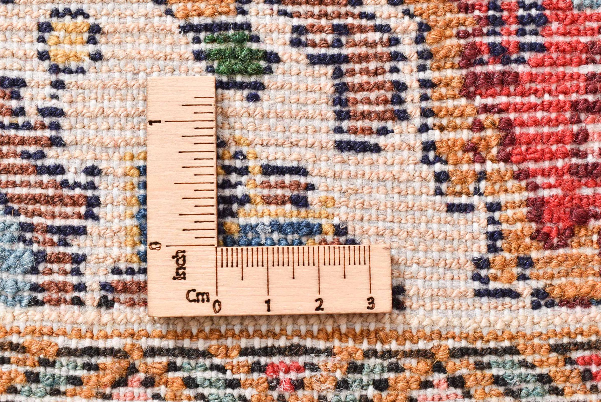 Dit tapijt is gemaakt van handgesponnen schapenwol van de hoogste kwaliteit. Vooral in Iran (voormalig Perzië), Afghanistan en Pakistan wordt de wol nog met de hand gesponnen voordat het eigenlijke knopen van het tapijt begint. Wol heeft zich door de eeuwen heen bewezen als een natuurlijk en extreem slijtvast materiaal. Het heeft onder andere vuilafstotende en warmte-isolerende eigenschappen. Tegelijkertijd is wol onvergelijkbaar zacht en heeft het een natuurlijke glans.