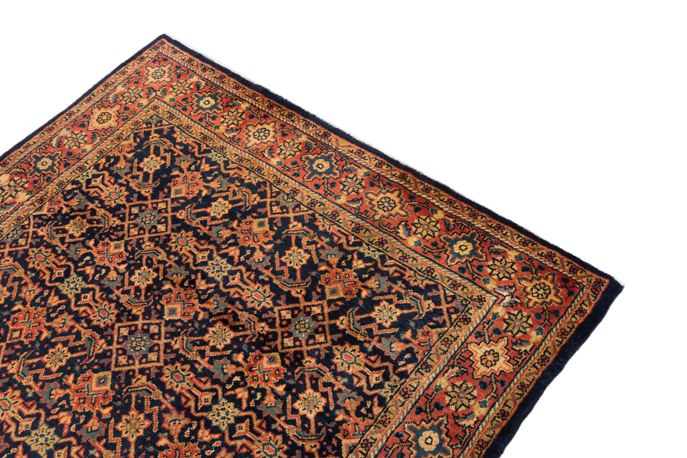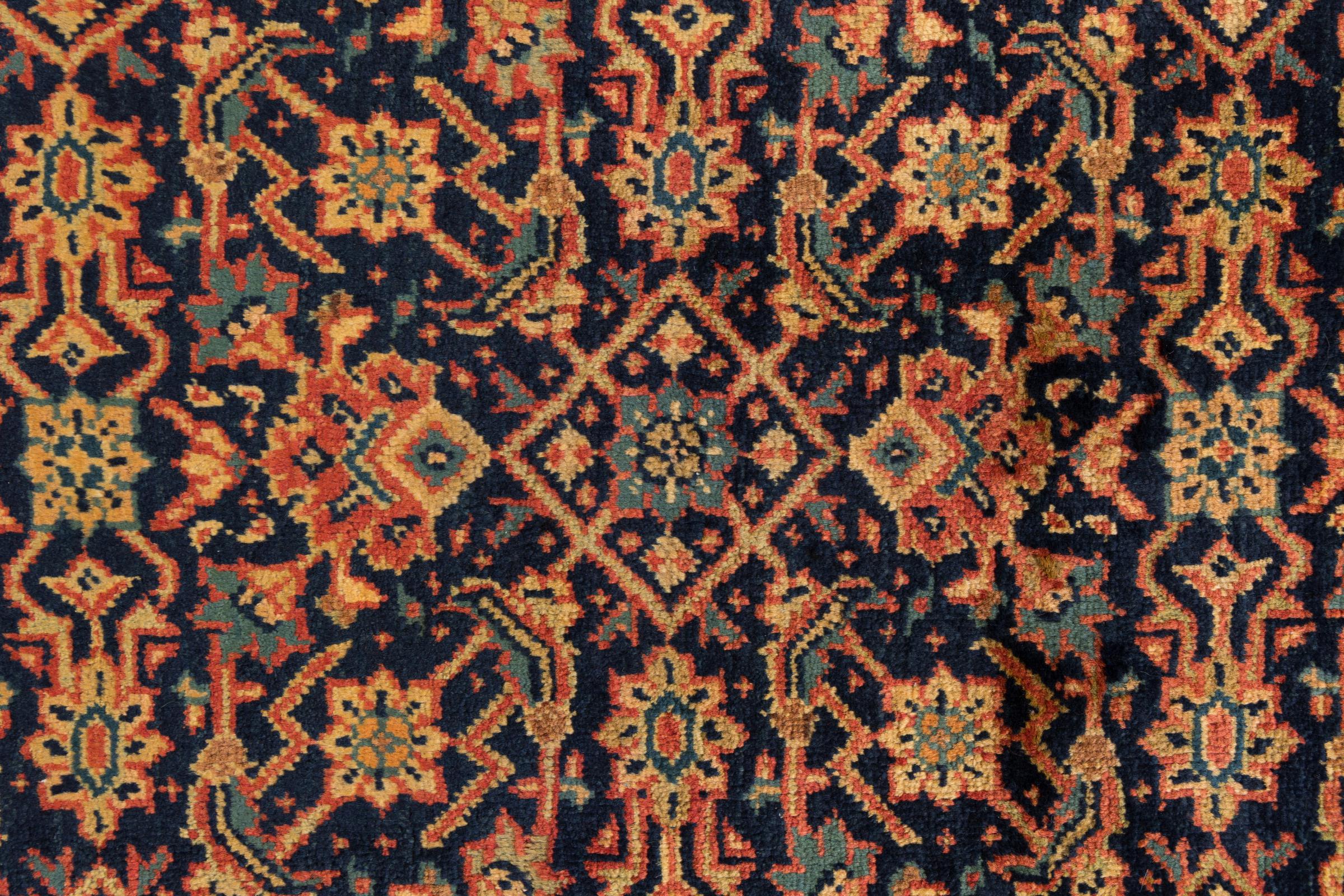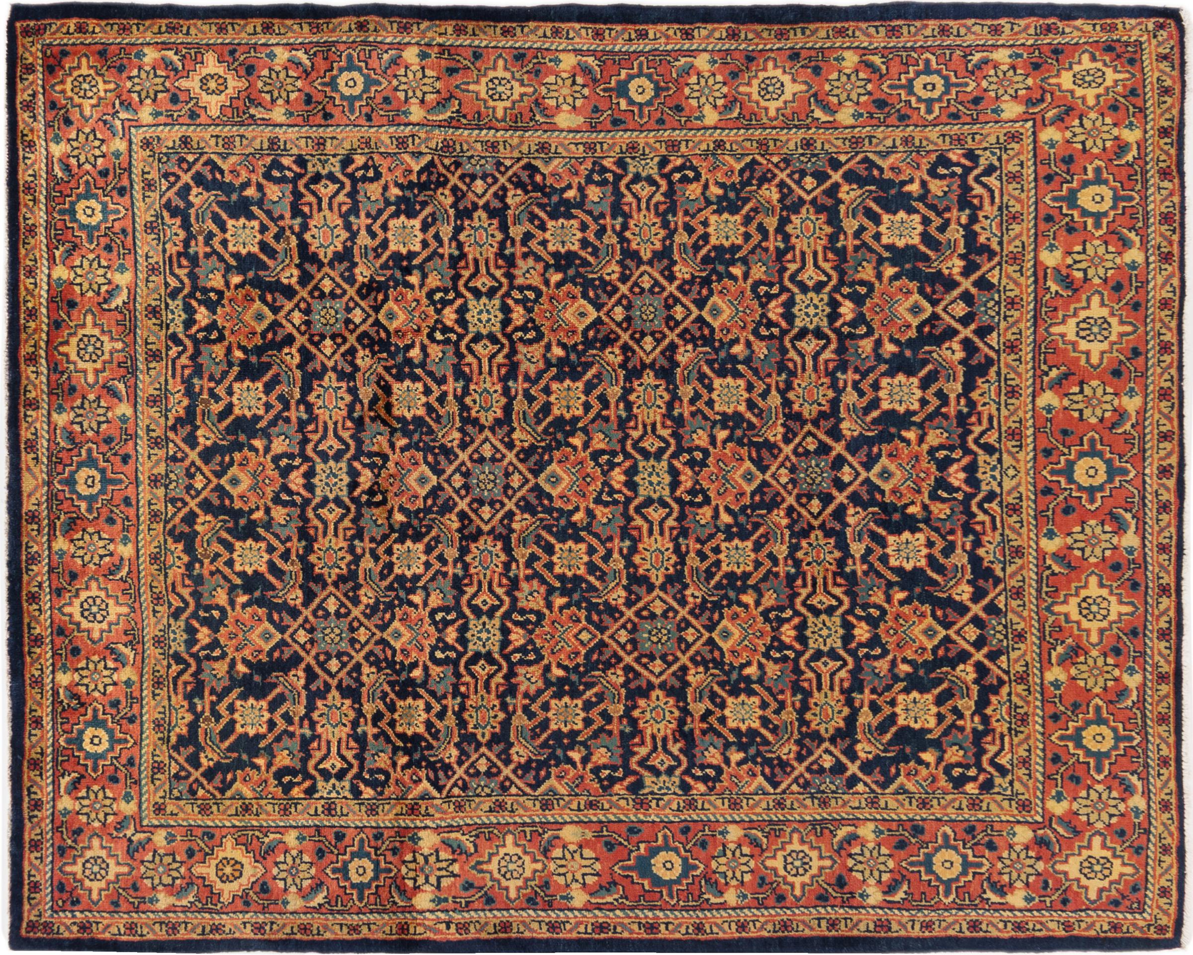Tapijt ID: 296273005614 Grootte: 213x173 cm Dikte: ap. 12 mm Knoopdichtheid: 72 000 - 90 000 / m² Verwerking: Handgeknoopte Pool: Hand gesponnen wol Schering: Katoen Oorsprong: Perzië / Iran Leeftijd: Oud/Semi antiek, boven 50 jaar Gewicht: ap. 13 kg Ook wel bekend als Mahalat Op voorraad: Uniek - Nog maar 1 op voorraad