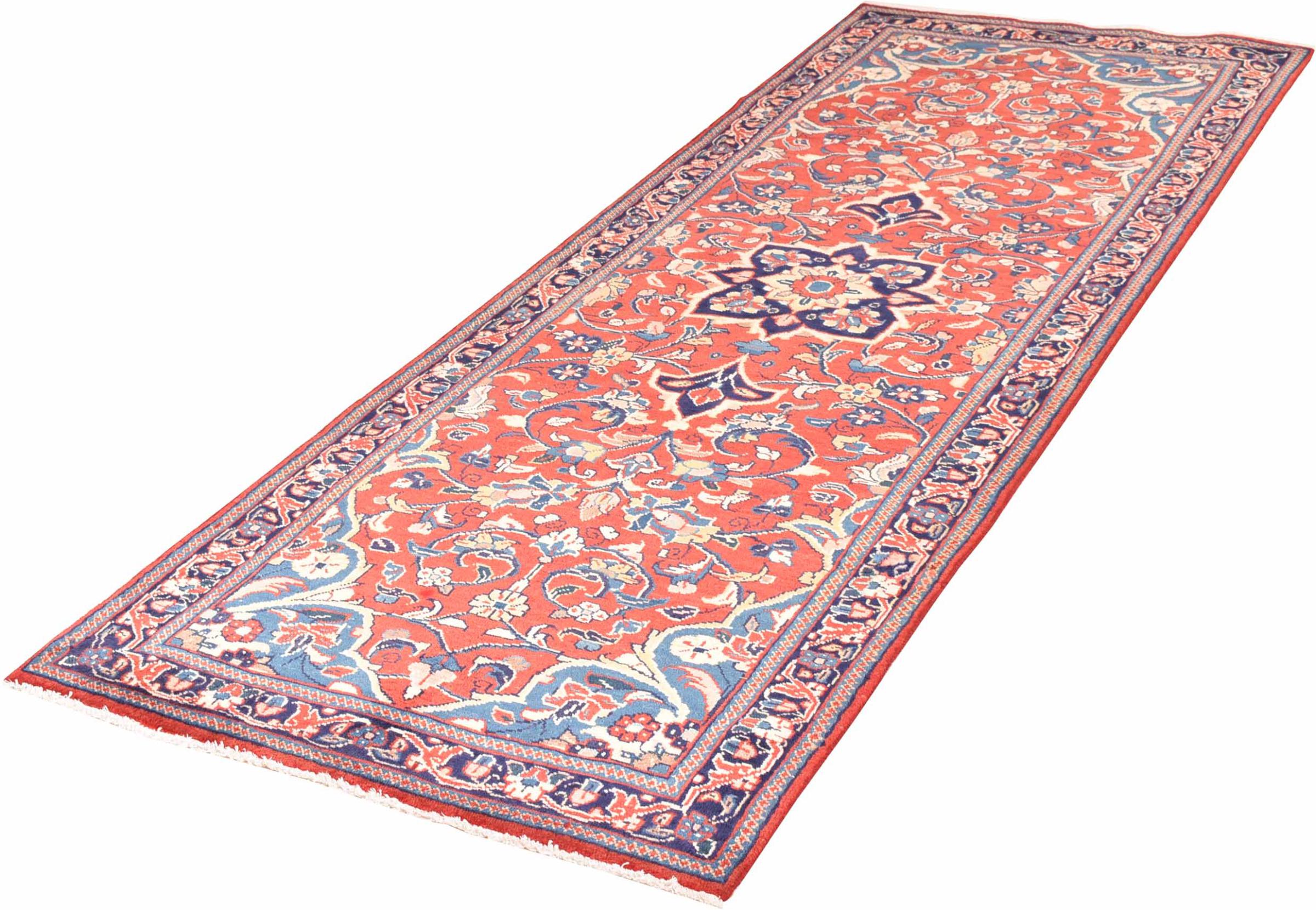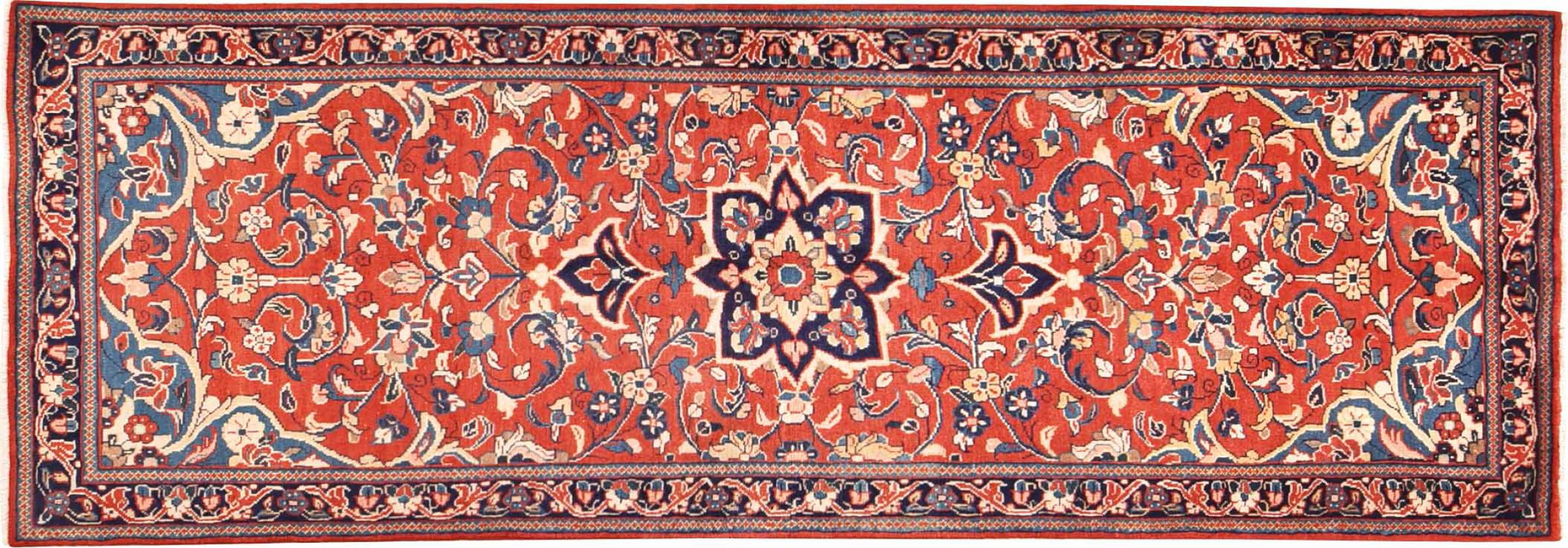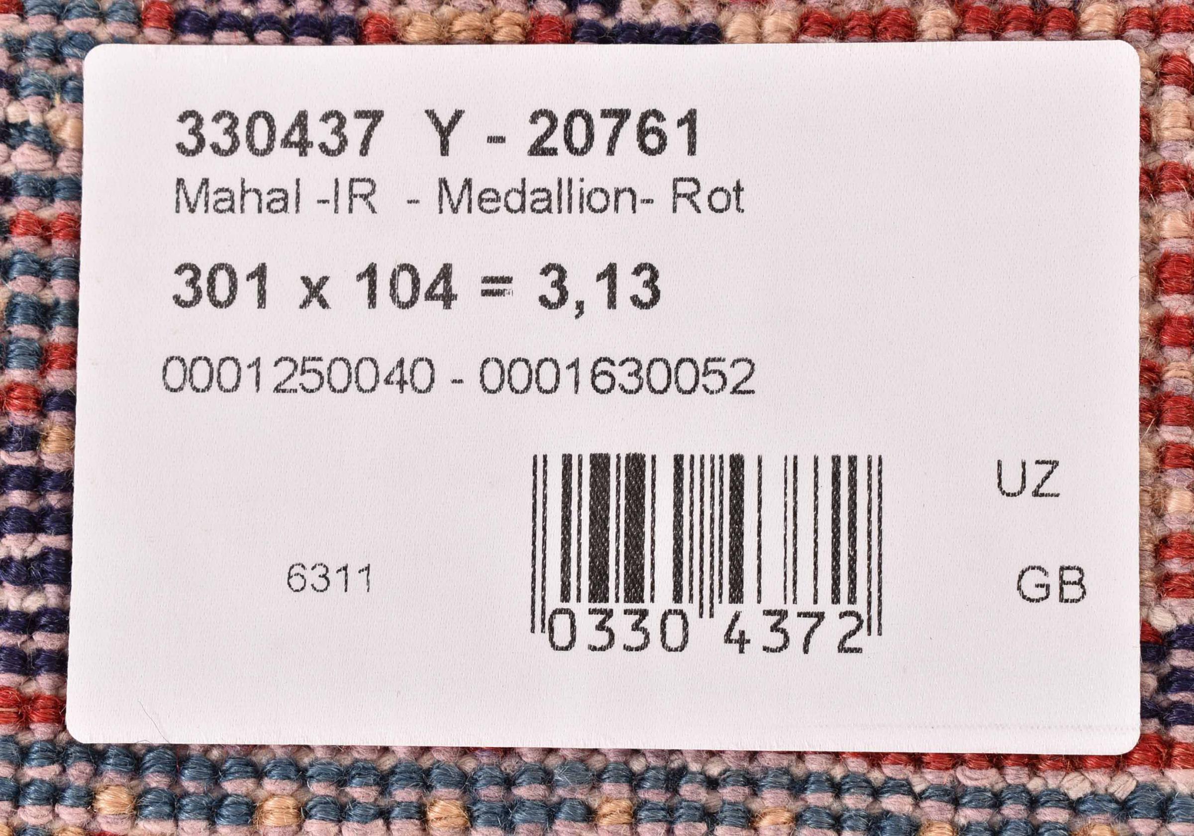 Tapijt ID: 300870008082159 Grootte: 300x103 cm Dikte: ap. 12 mm Knoopdichtheid: 128 000 - 160 000 / m² Verwerking: Handgeknoopte Pool: Hand gesponnen wol Schering: Katoen Oorsprong: Perzië / Iran Leeftijd: Nieuw Gewicht: ap. 11 kg Ook wel bekend als Mahalat Op voorraad: Uniek - Nog maar 1 op voorraad