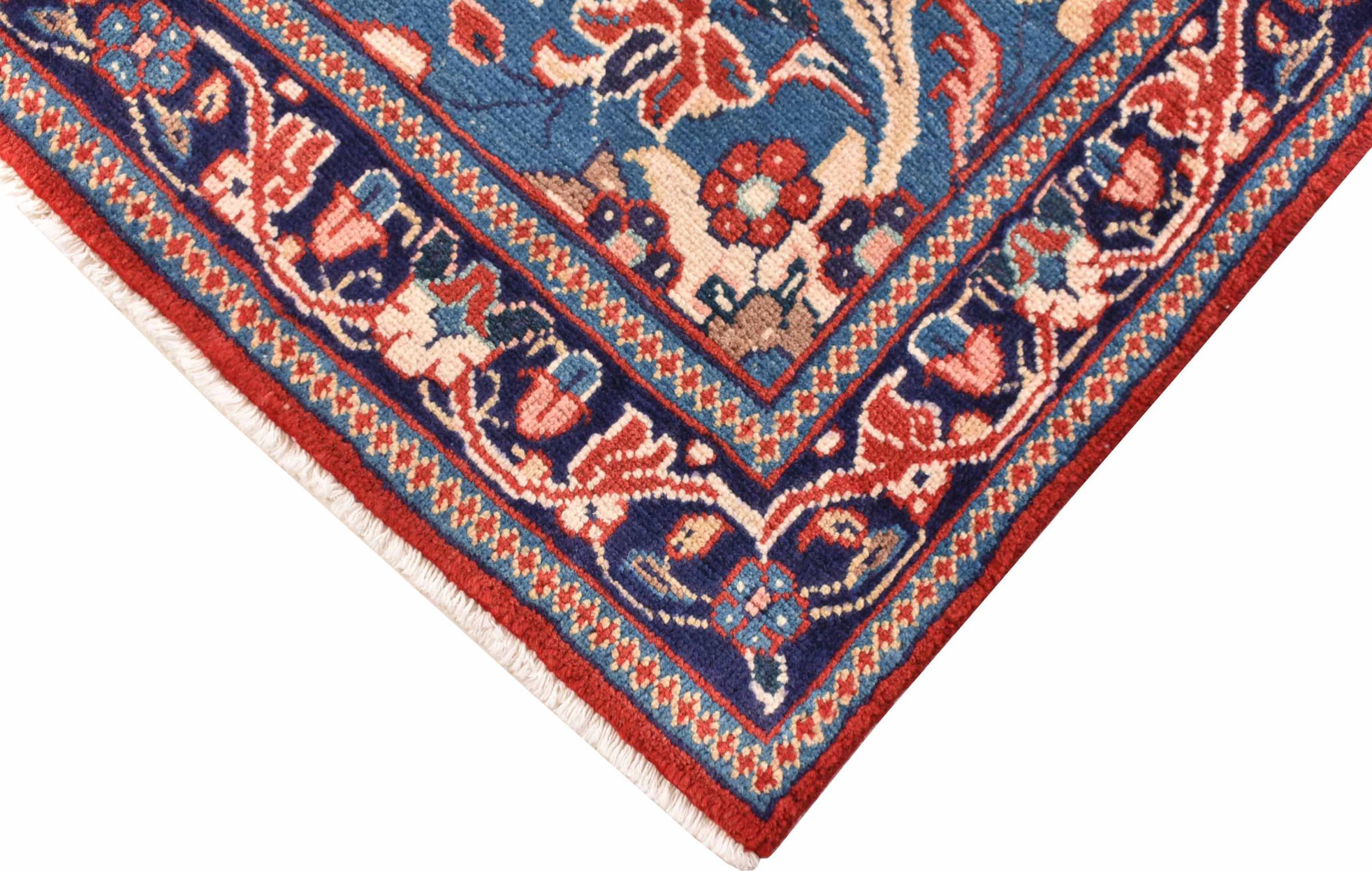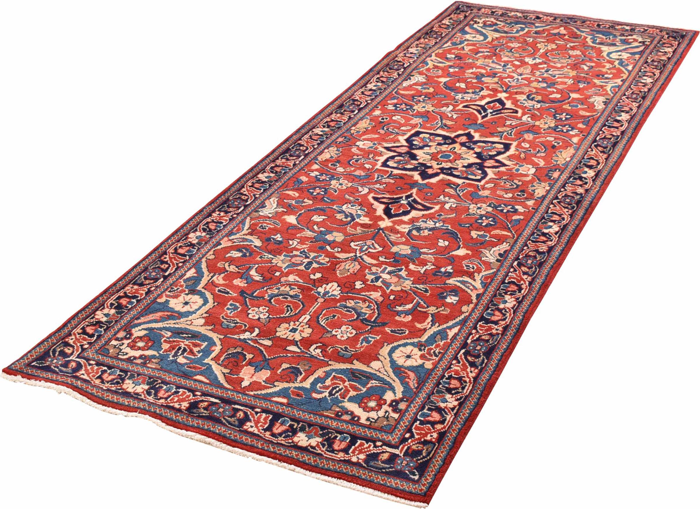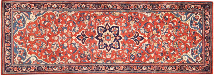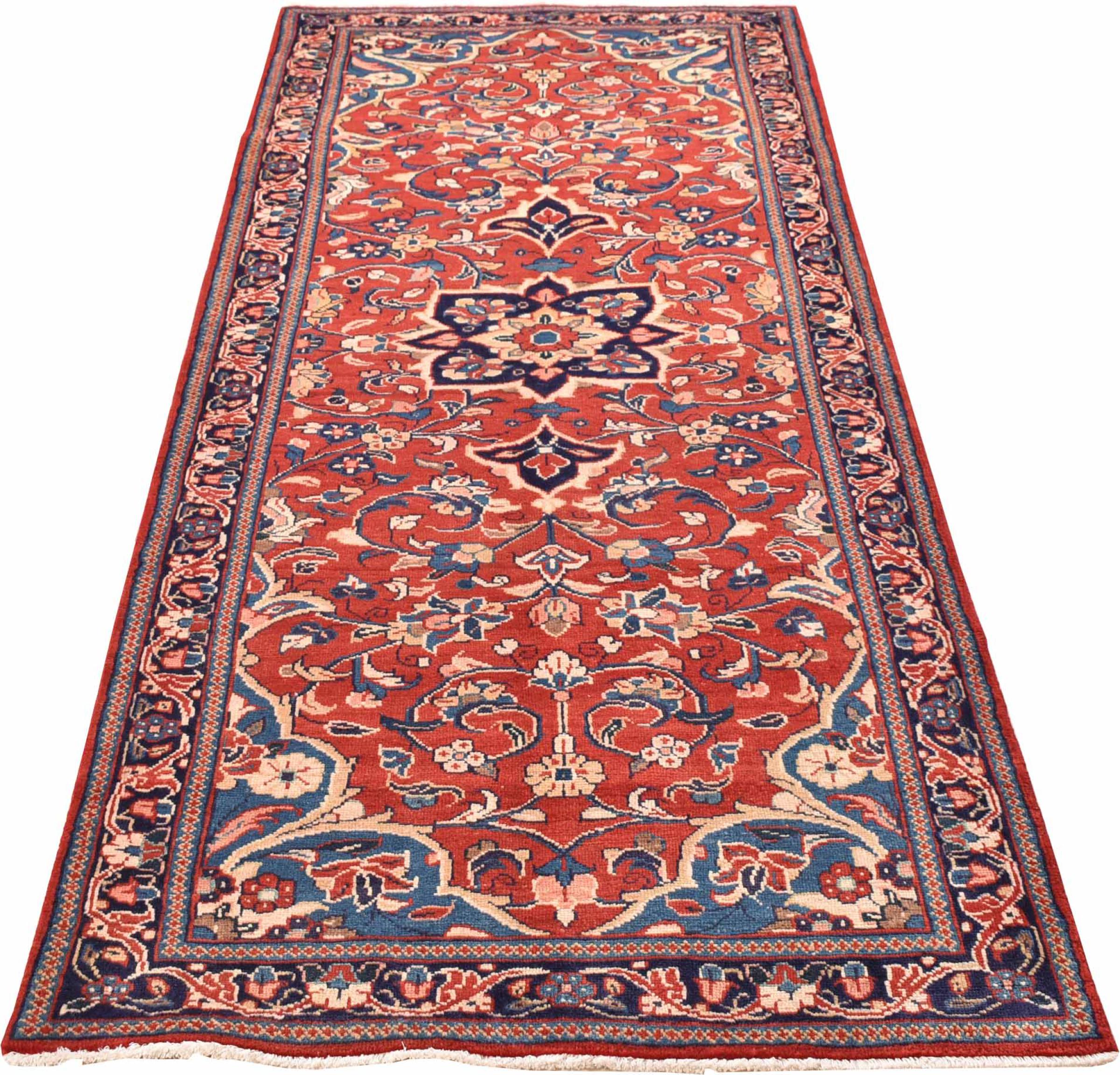 Tapijt ID: 300870008082159 Grootte: 300x103 cm Dikte: ap. 12 mm Knoopdichtheid: 128 000 - 160 000 / m² Verwerking: Handgeknoopte Pool: Hand gesponnen wol Schering: Katoen Oorsprong: Perzië / Iran Leeftijd: Nieuw Gewicht: ap. 11 kg Ook wel bekend als Mahalat Op voorraad: Uniek - Nog maar 1 op voorraad