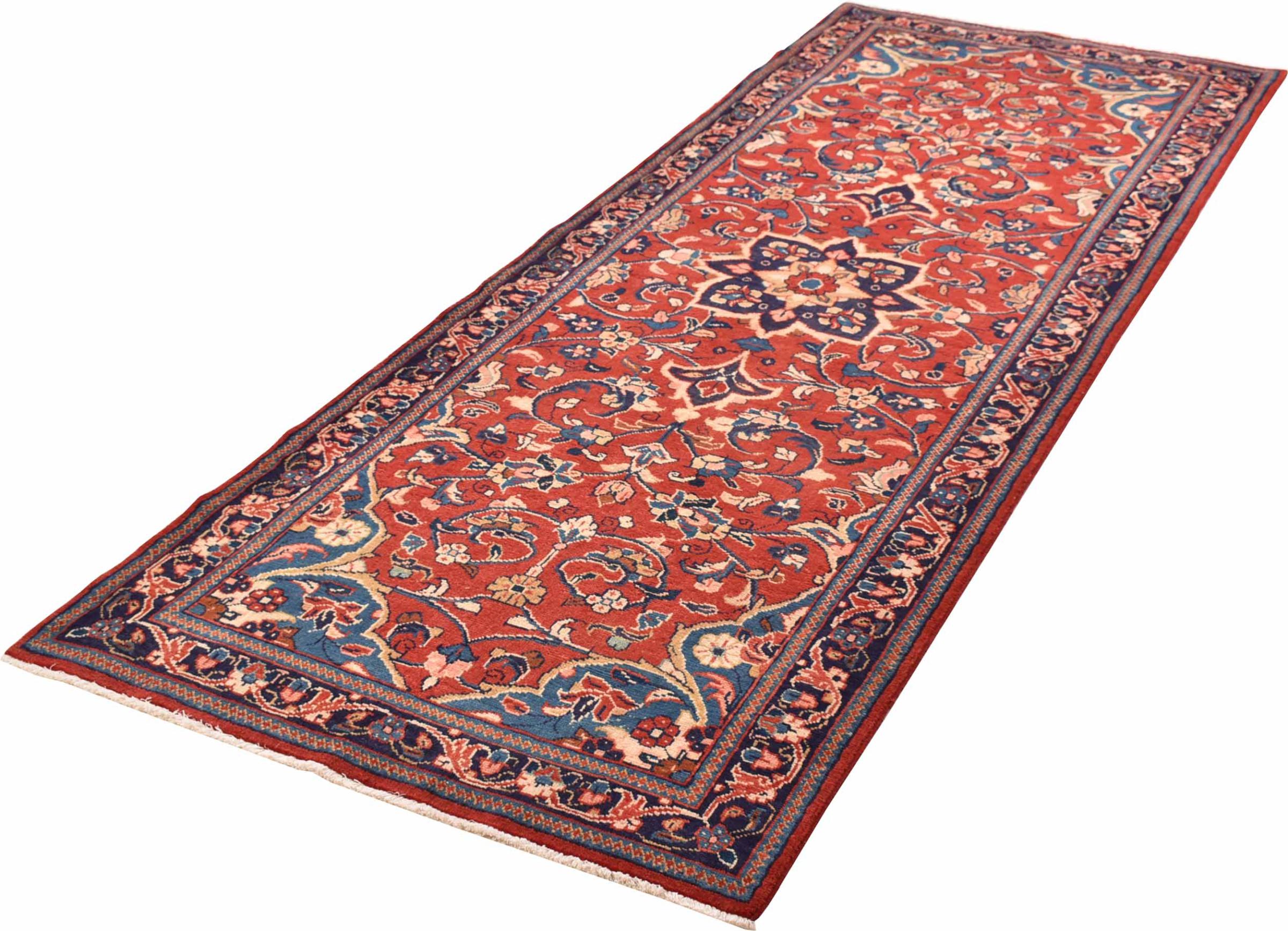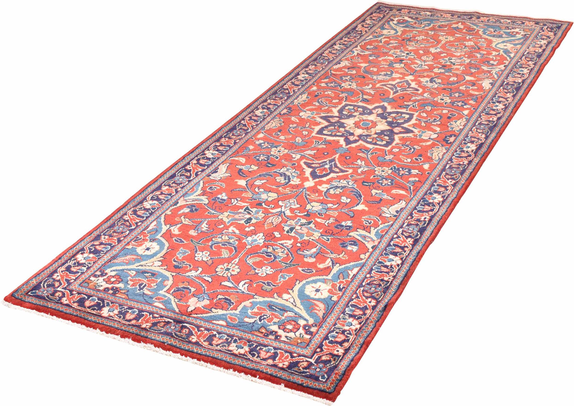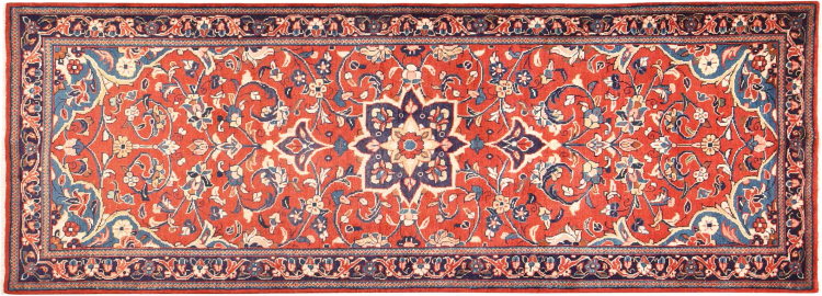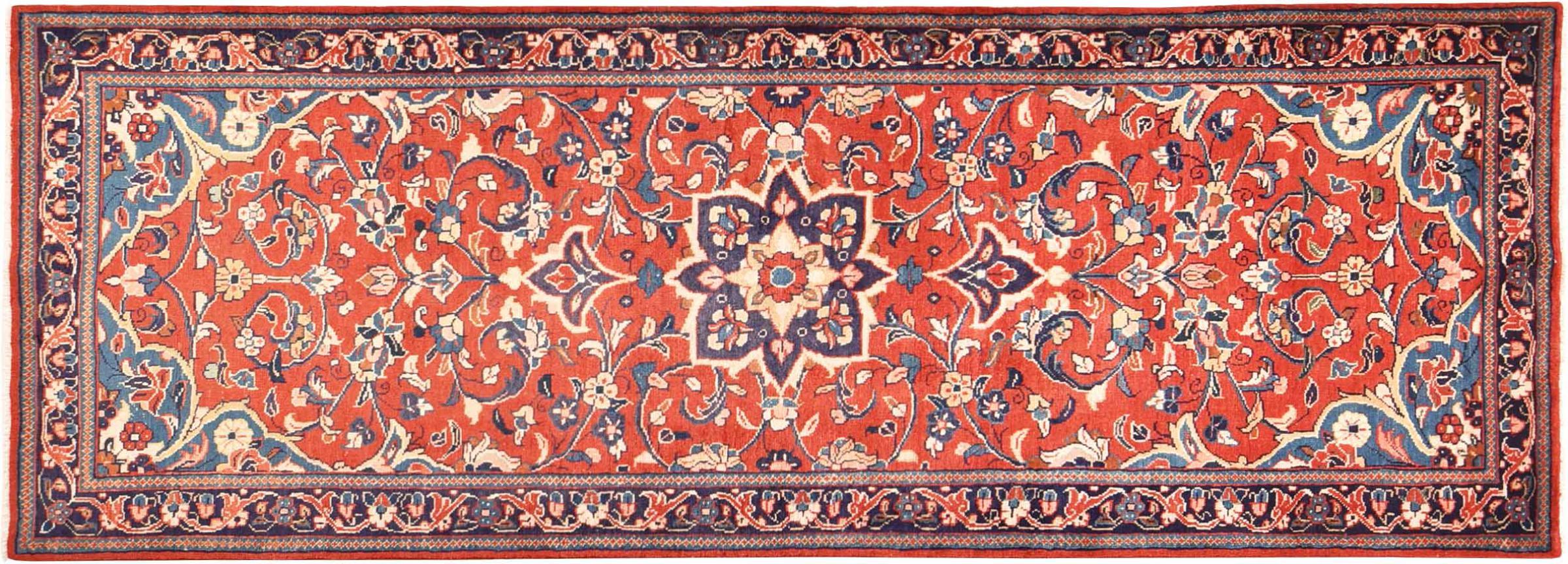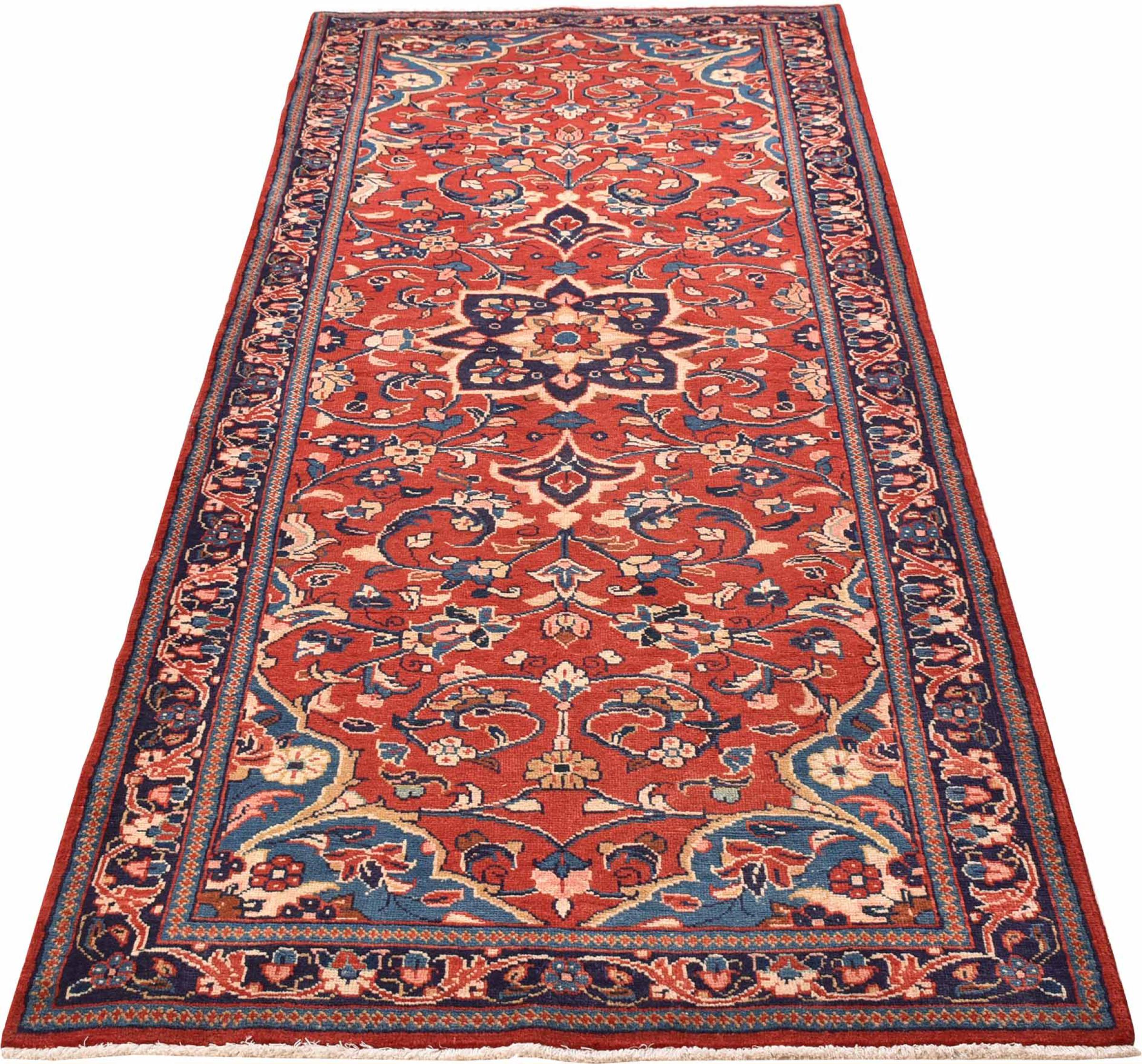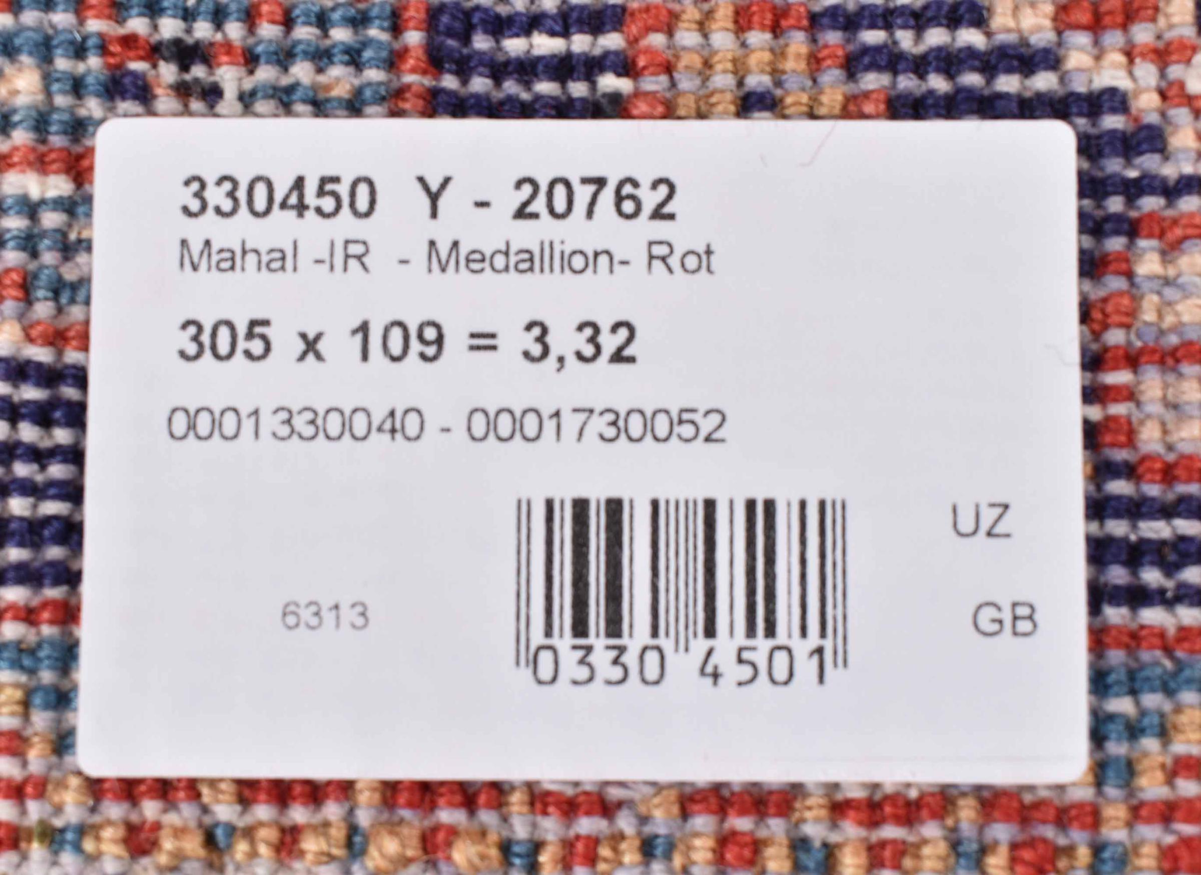 Tapijt ID: 30088300352807 Grootte: 306x110 cm Dikte: ap. 12 mm Knoopdichtheid: 128 000 - 160 000 / m² Verwerking: Handgeknoopte Pool: Hand gesponnen wol Schering: Katoen Oorsprong: Perzië / Iran Leeftijd: Nieuw Gewicht: ap. 12 kg Ook wel bekend als Mahalat Op voorraad: Uniek - Nog maar 1 op voorraad