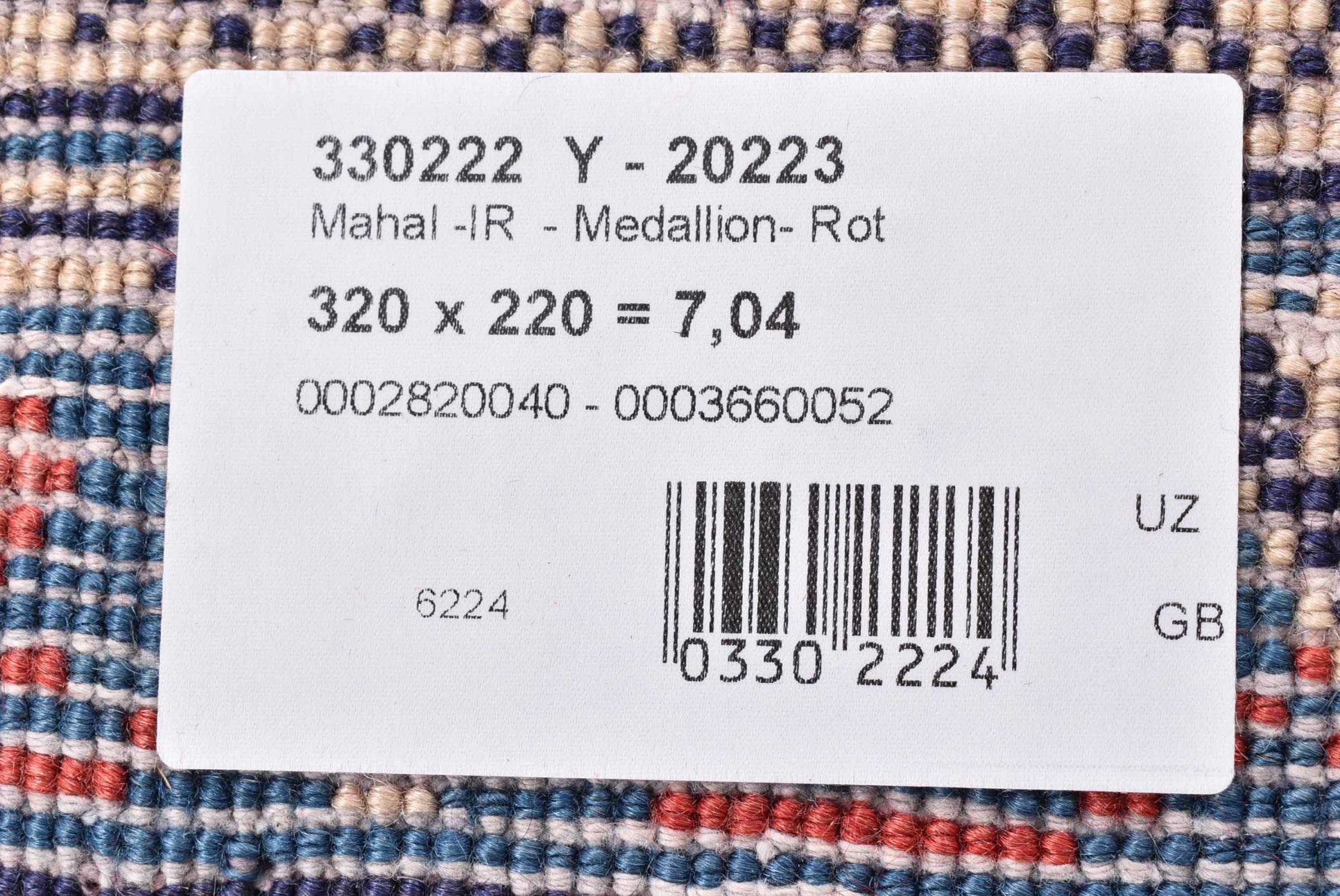 Tapijt ID: 300828008479745 Grootte: 319x219 cm Dikte: ap. 12 mm Knoopdichtheid: 128 000 - 160 000 / m² Verwerking: Handgeknoopte Pool: Hand gesponnen wol Schering: Katoen Oorsprong: Perzië / Iran Leeftijd: Nieuw Gewicht: ap. 24 kg Ook wel bekend als Mahalat Op voorraad: Uniek - Nog maar 1 op voorraad