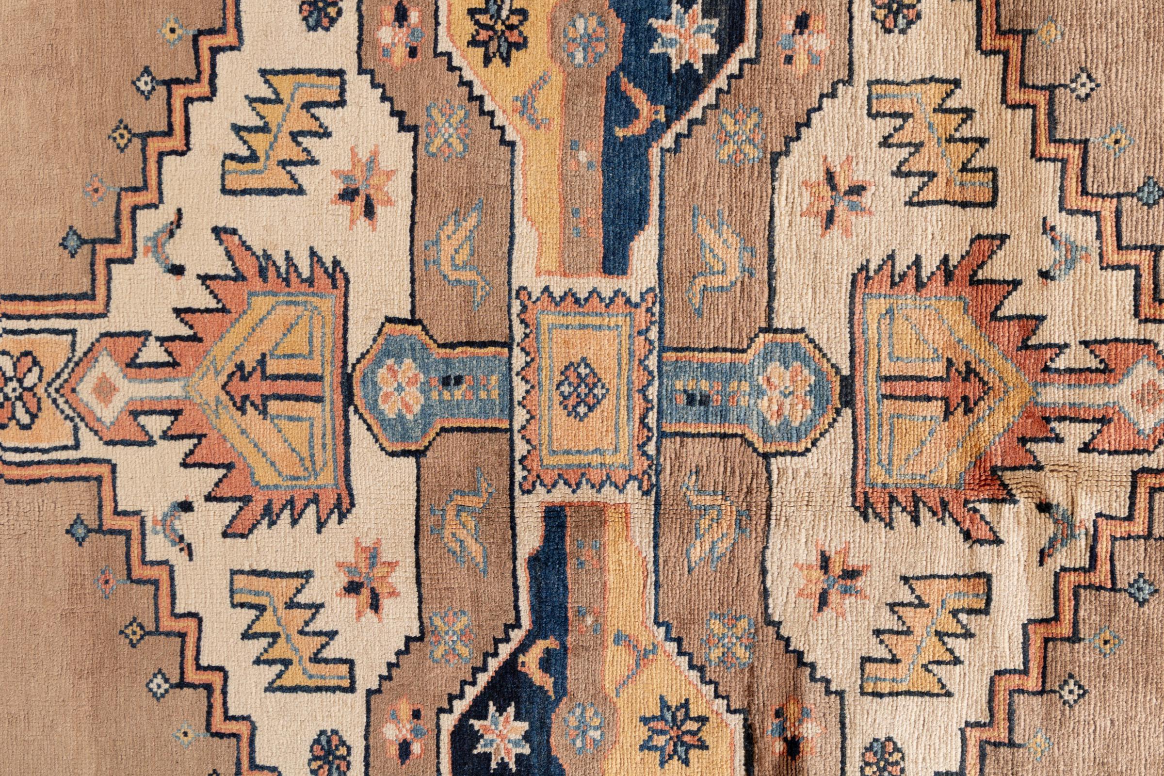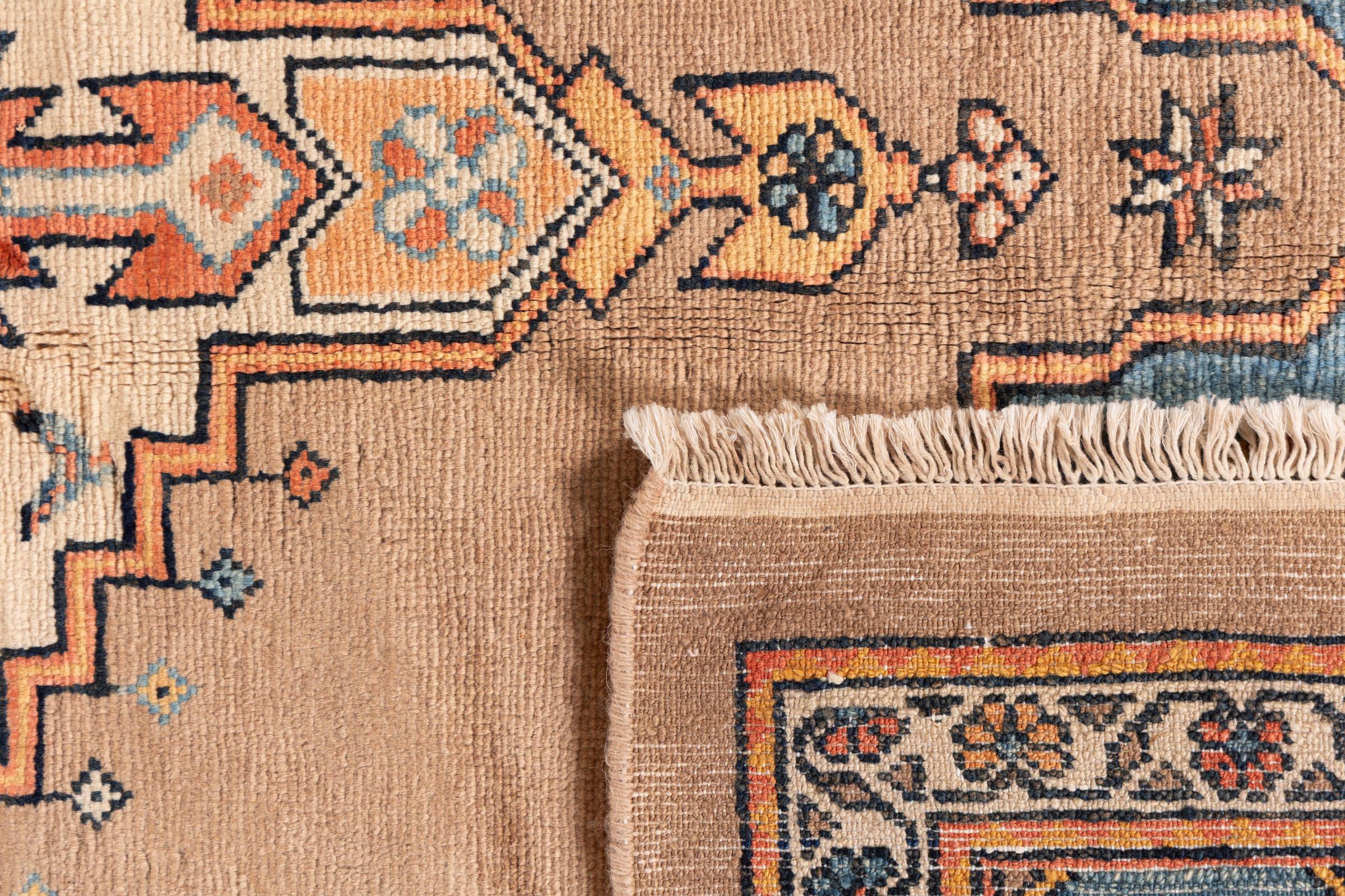 Dit tapijt is gemaakt van handgesponnen schapenwol van de hoogste kwaliteit. Vooral in Iran (voormalig Perzië), Afghanistan en Pakistan wordt de wol nog met de hand gesponnen voordat het eigenlijke knopen van het tapijt begint. Wol heeft zich door de eeuwen heen bewezen als een natuurlijk en extreem slijtvast materiaal. Het heeft onder andere vuilafstotende en warmte-isolerende eigenschappen. Tegelijkertijd is wol onvergelijkbaar zacht en heeft het een natuurlijke glans.