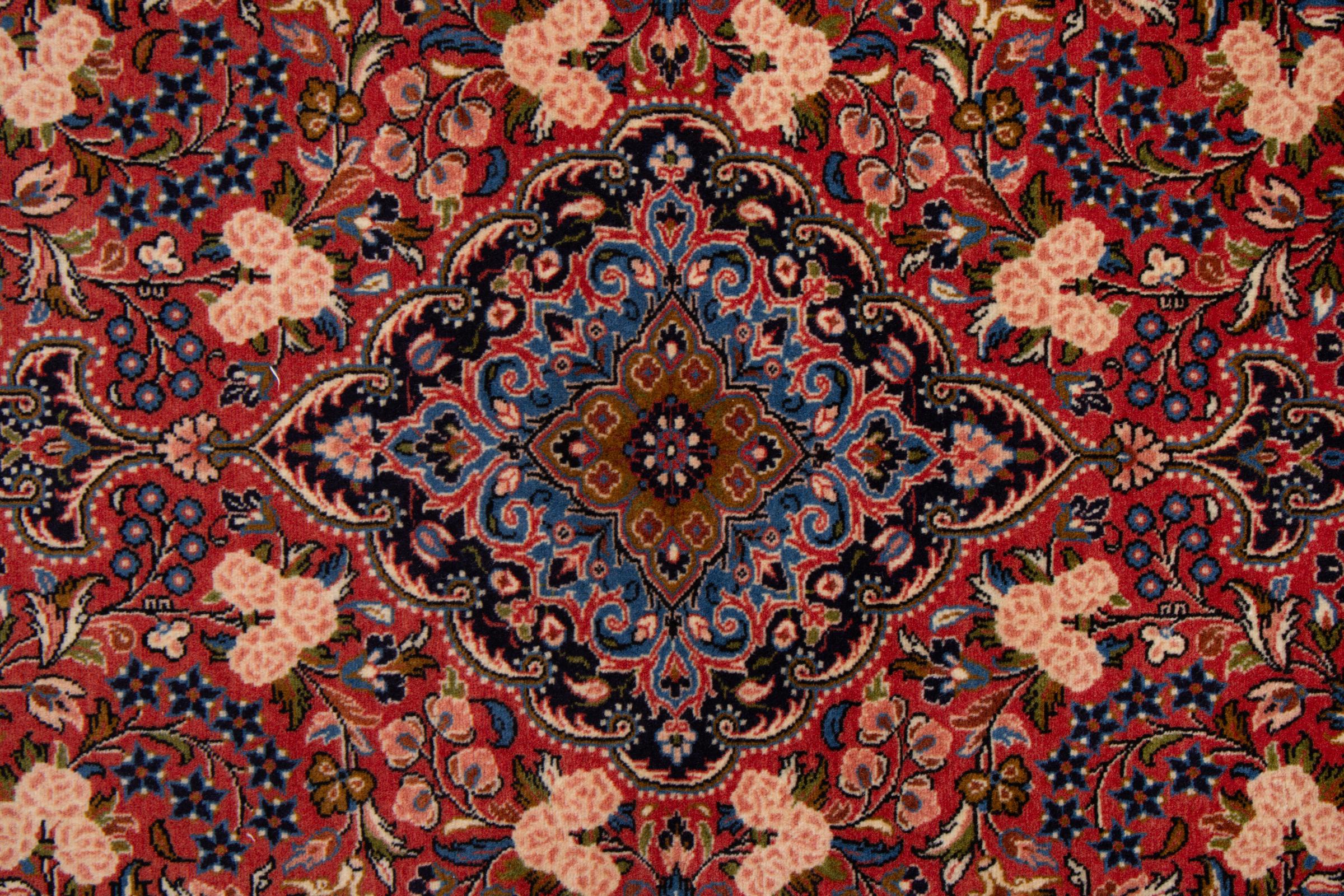 Dit tapijt is gemaakt van handgesponnen schapenwol van de hoogste kwaliteit. Vooral in Iran (voormalig Perzië), Afghanistan en Pakistan wordt de wol nog met de hand gesponnen voordat het eigenlijke knopen van het tapijt begint. Wol heeft zich door de eeuwen heen bewezen als een natuurlijk en extreem slijtvast materiaal. Het heeft onder andere vuilafstotende en warmte-isolerende eigenschappen. Tegelijkertijd is wol onvergelijkbaar zacht en heeft het een natuurlijke glans.