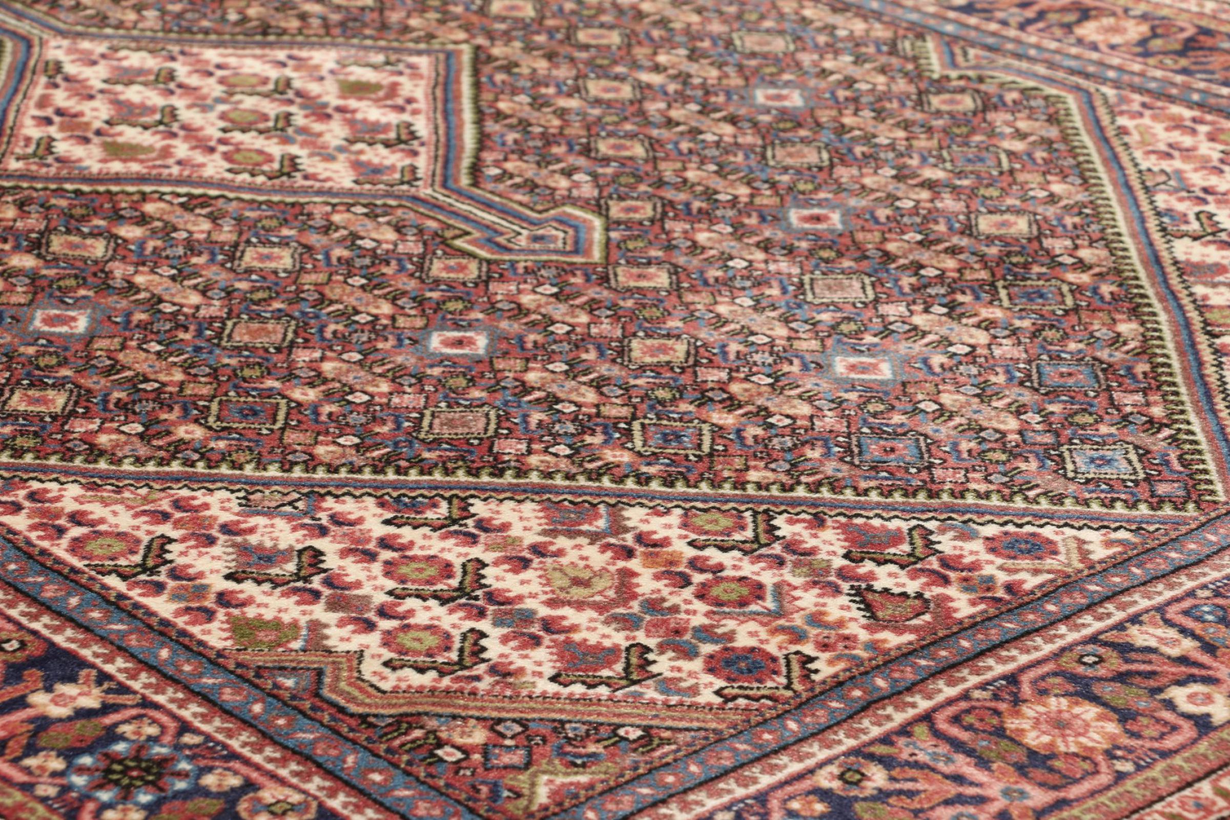Er is een reden waarom dit Hamadan tapijt zo populair is in nieuwe interieurconcepten. Het combineert een onklopbare prijs met uitzonderlijke kwaliteit. Dankzij de sterke garens die worden gebruikt bij de vervaardiging van Hamadan tapijten, is dit Perzische tapijt bijzonder duurzaam. Het is met de hand geknoopt in de stad Hamadan. De vaak geometrische patronen en ornamenten zijn tijdloos en daarom ook erg populair in Scandinavische interieurs. De gedurfde kleuren brengen gezelligheid en warmte in je kamer.