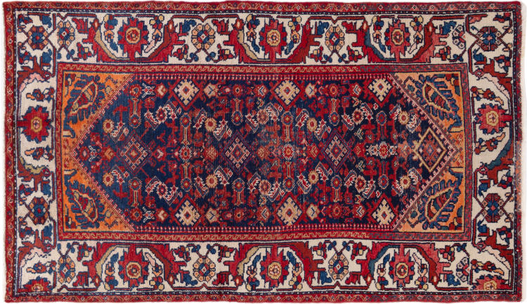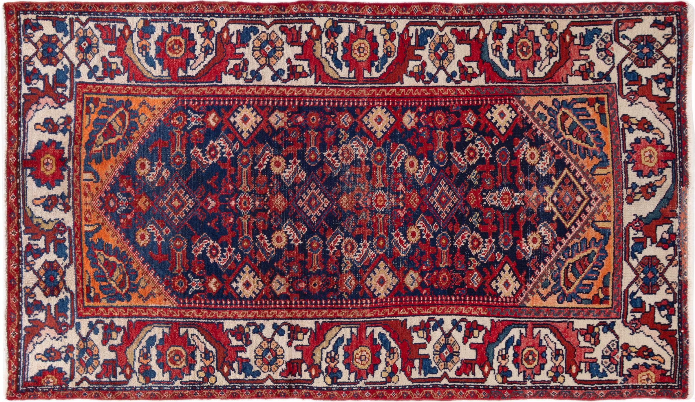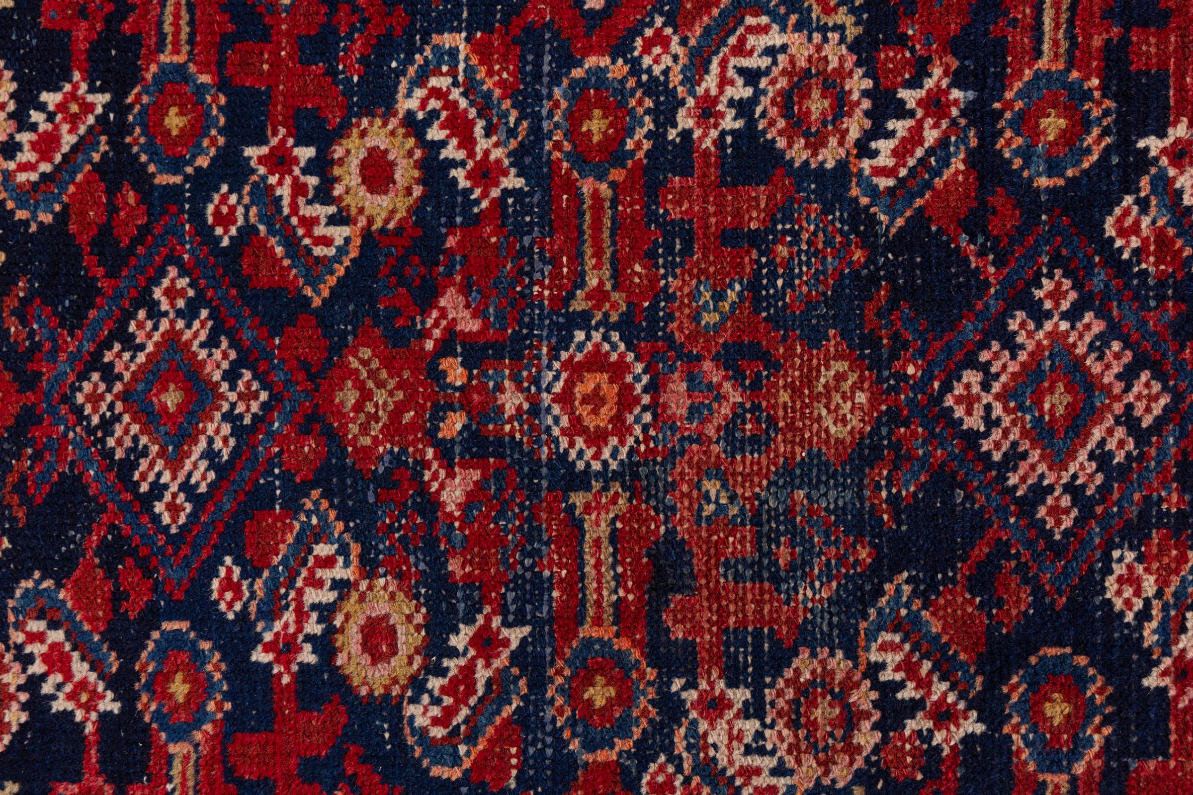 Tapijt ID: 297544009004 Grootte: 203x115 cm Dikte: ap. 12 mm Knoopdichtheid: 200 000 - 250 000 / m² Verwerking: Handgeknoopte Pool: Hand gesponnen wol Schering: Katoen Conditie / Conservering Tapijt is zwaar en onregelmatig gerafeld Oorsprong: Perzië / Iran Leeftijd: Antiek, boven 80 jaar Gewicht: ap. 8 kg Ook wel bekend als Huseinabad Op voorraad: Uniek - Nog maar 1 op voorraad