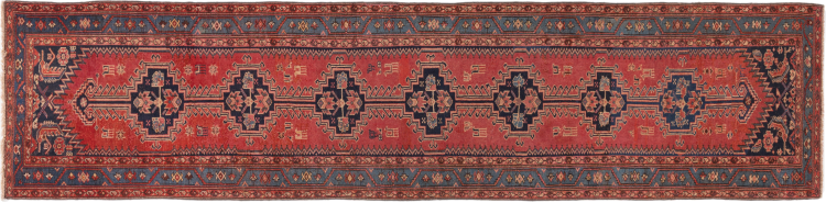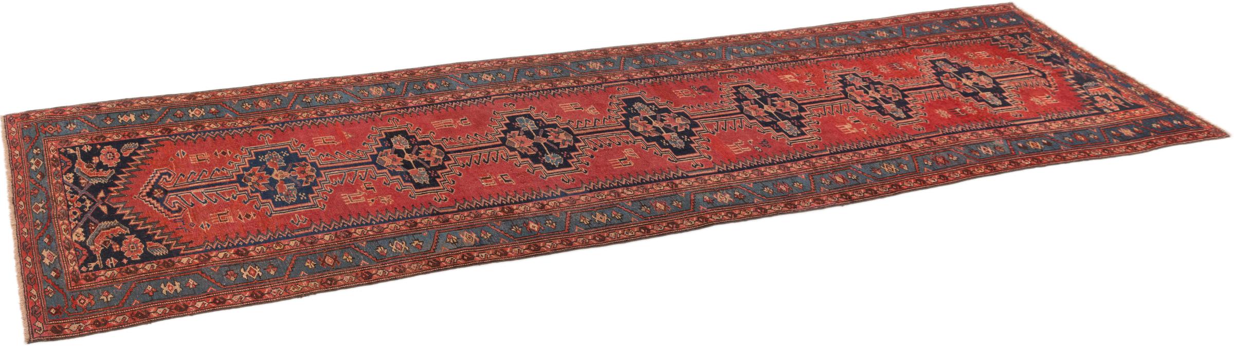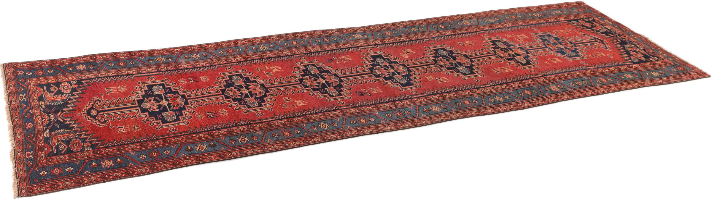 Tapijt ID: 298541007227 Grootte: 433x102 cm Dikte: ap. 12 mm Knoopdichtheid: 200 000 - 250 000 / m² Verwerking: Handgeknoopte Pool: Hand gesponnen wol Schering: Wol Conditie / Conservering Perfect Oorsprong: Perzië / Iran Leeftijd: Antiek, boven 80 jaar Gewicht: ap. 15 kg Ook wel bekend als Huseinabad Op voorraad: Uniek - Nog maar 1 op voorraad
