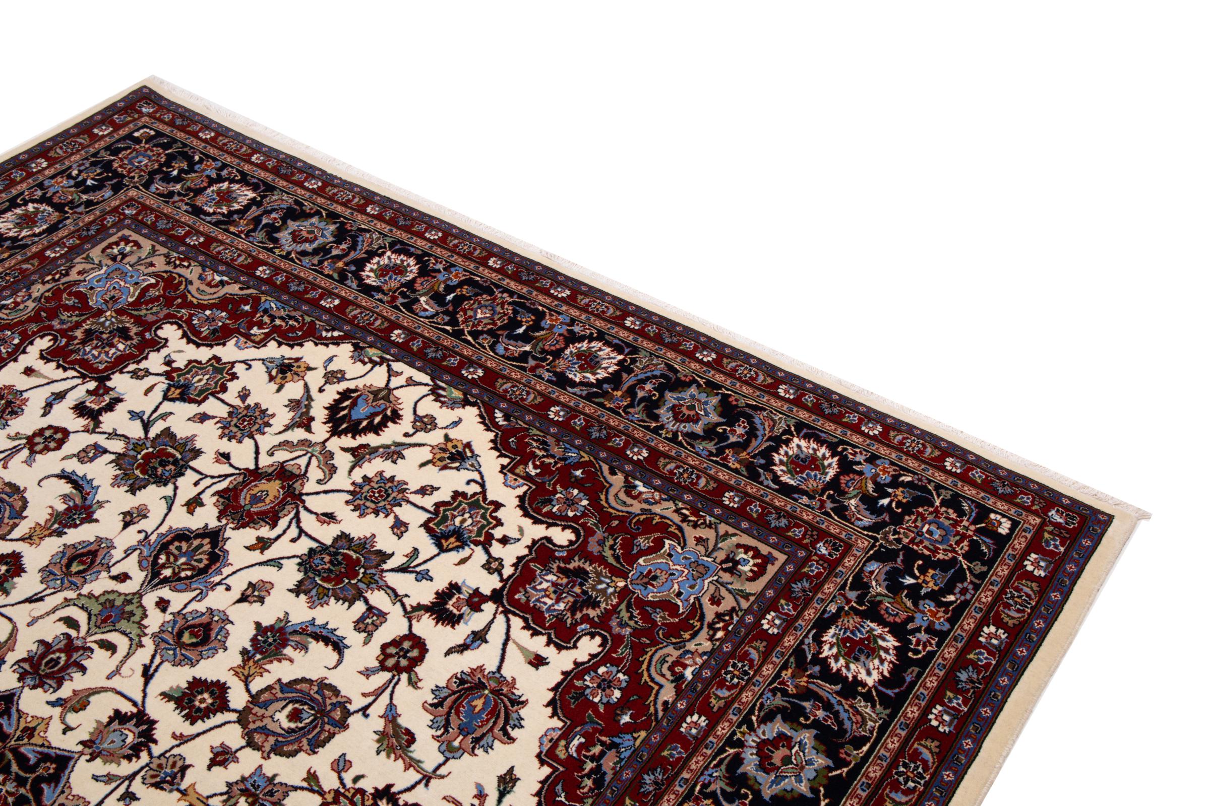 Dit tapijt uit Mashhad, een van de grootste steden in Iran, is met de hand geknoopt van zuiver natuurlijke wol. Miljoenen mensen maken elk jaar een pelgrimstocht naar deze heilige Perzische stad. Mashhad tapijten staan bekend om hun ongewone afmetingen en om hun extreem hoogwaardige wol.