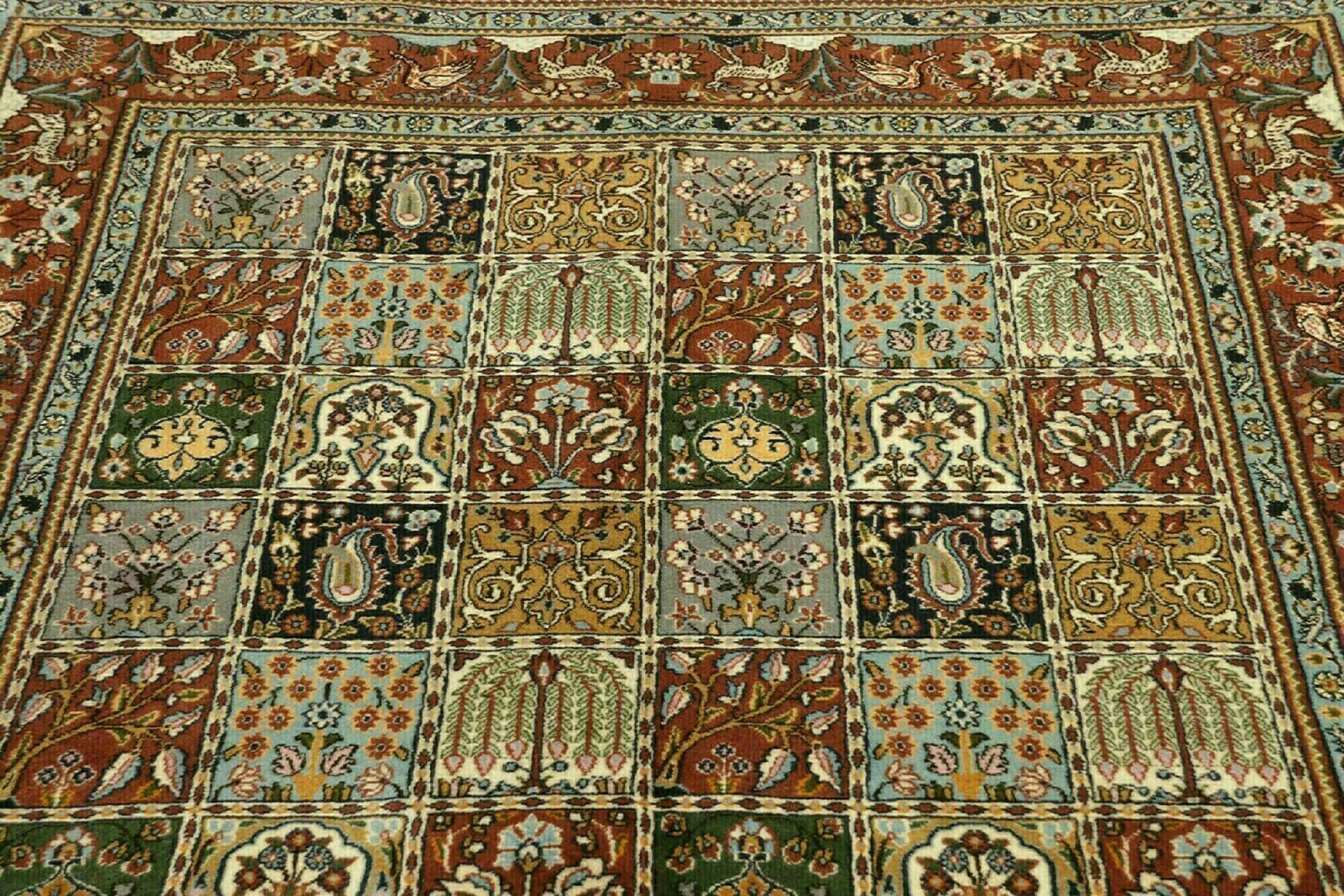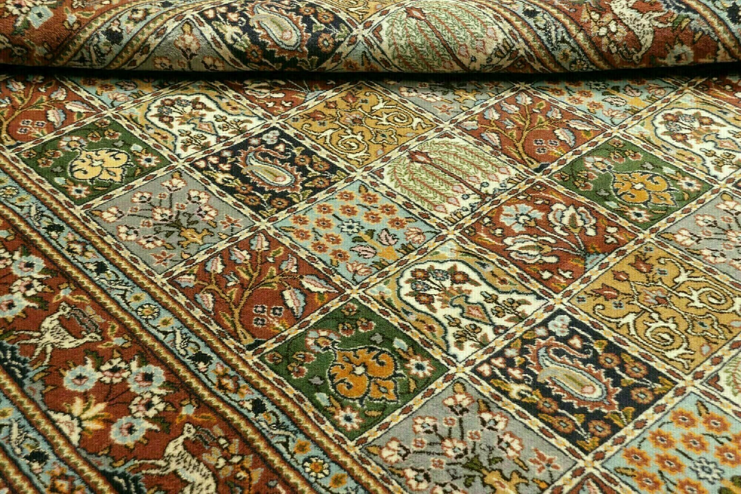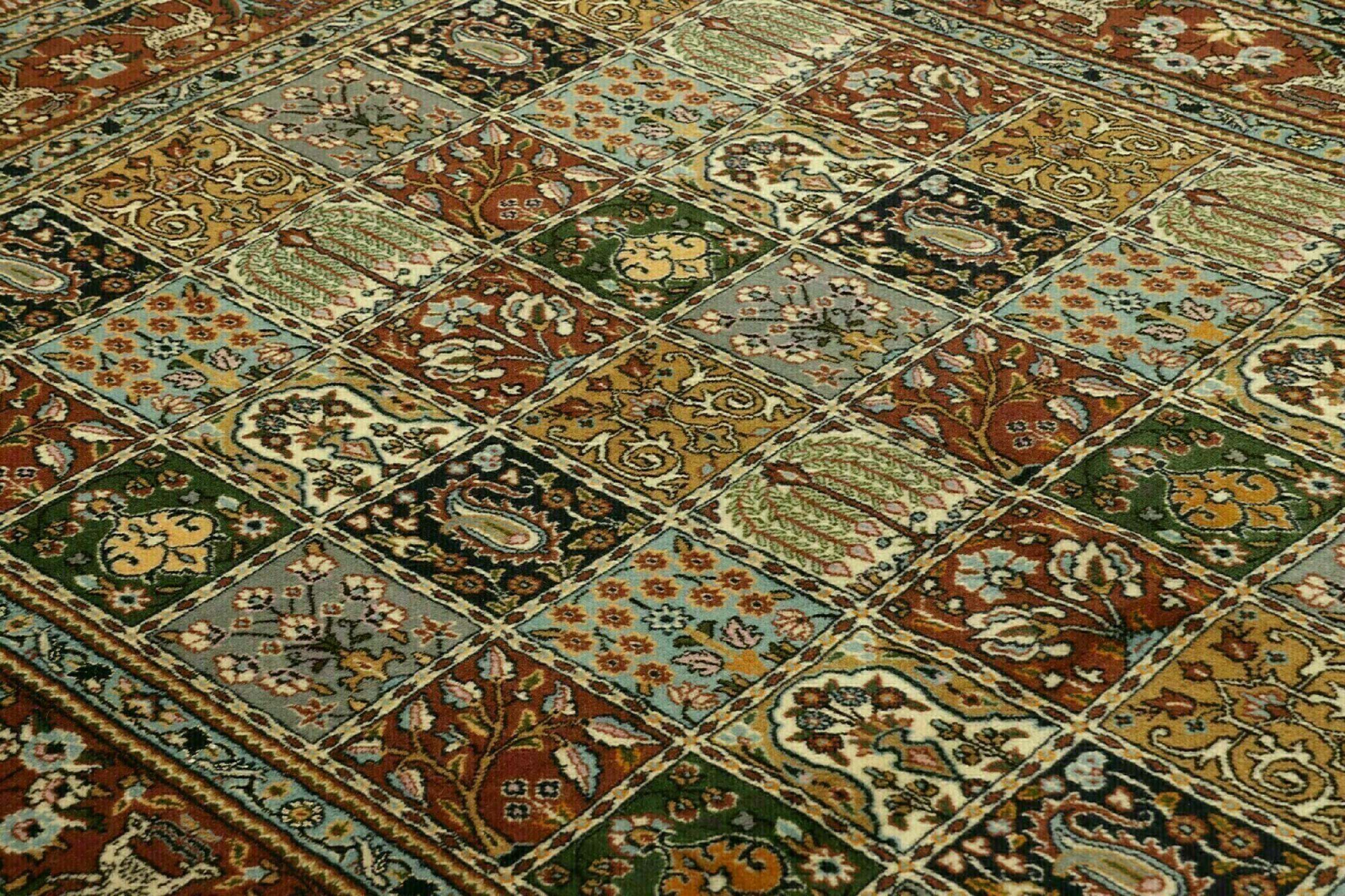 Tapijt ID: 30058900295903 Grootte: 201x152 cm Dikte: ap. 12 mm Knoopdichtheid: 128 000 - 160 000 / m² Verwerking: Handgeknoopte Pool: Wol met zijde Schering: Katoen Oorsprong: Perzië / Iran Leeftijd: Nieuw Gewicht: ap. 11 kg Op voorraad: Uniek - Nog maar 1 op voorraad