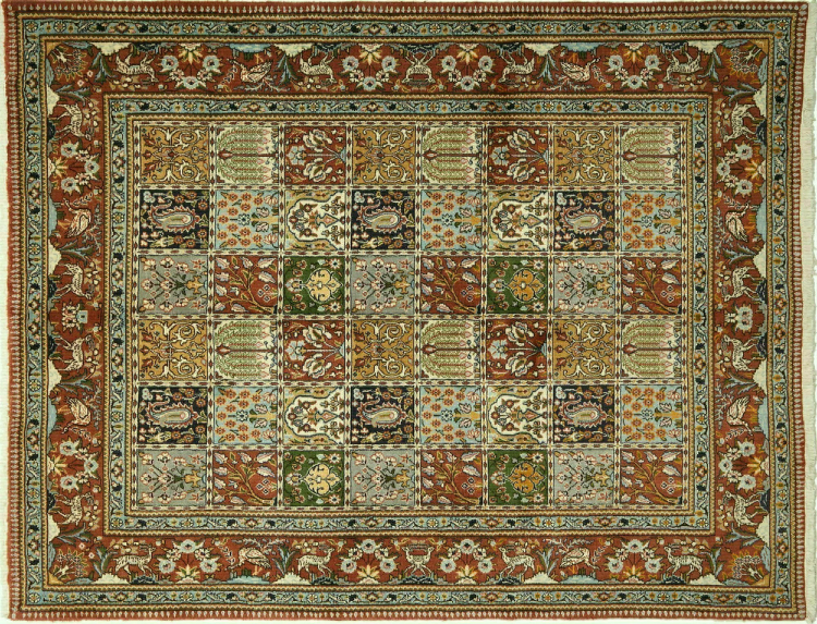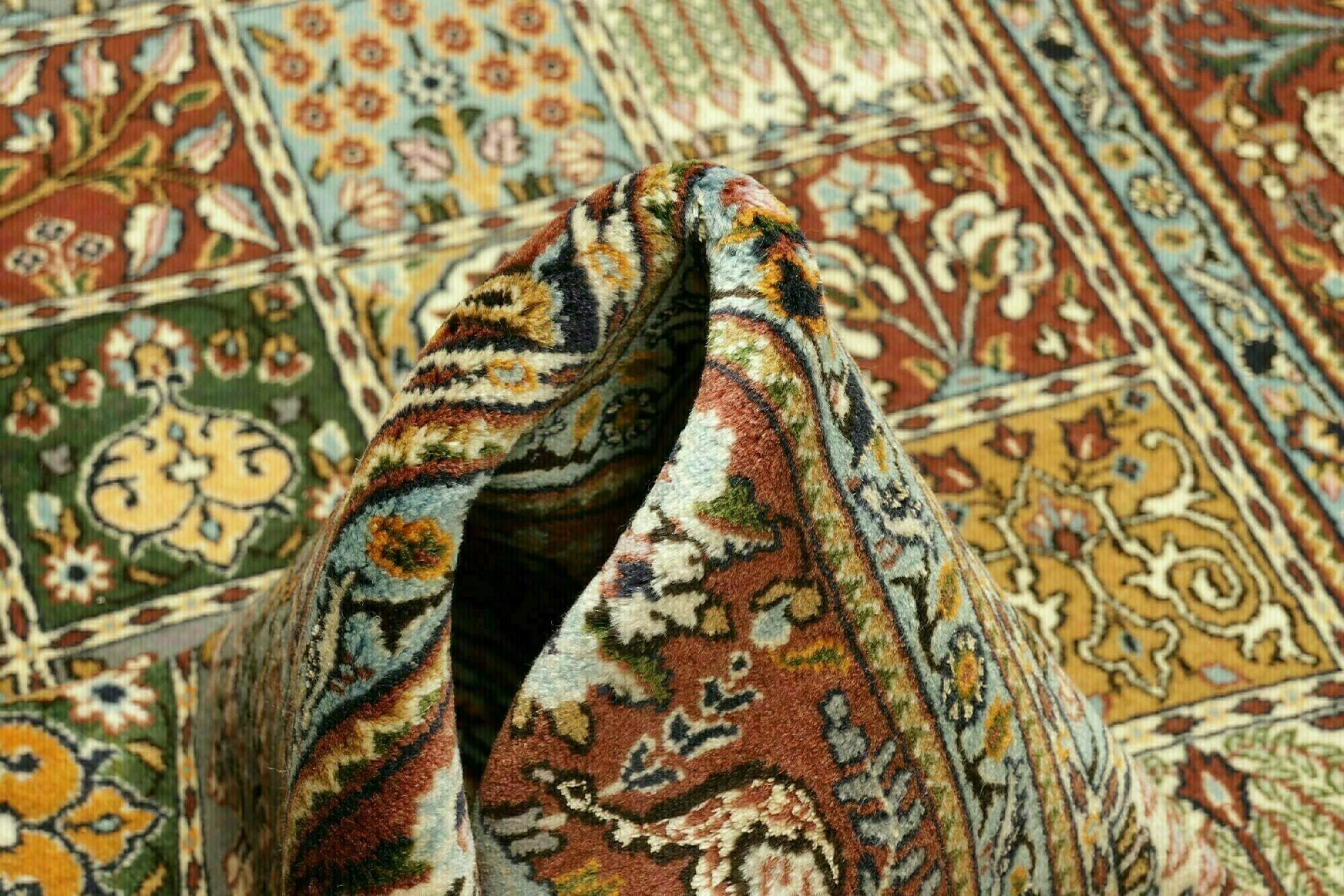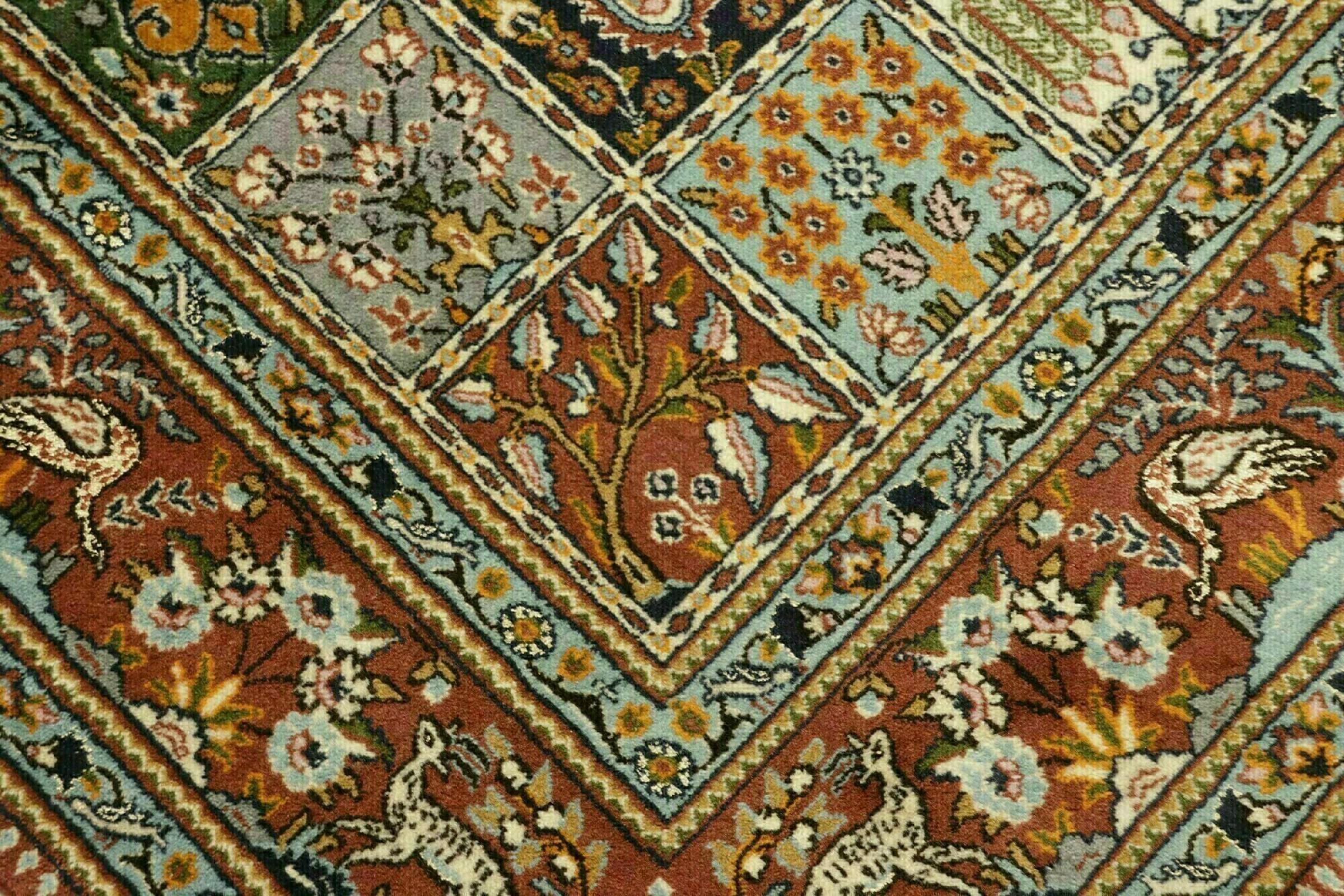 Tapijt ID: 30058900295903 Grootte: 201x152 cm Dikte: ap. 12 mm Knoopdichtheid: 128 000 - 160 000 / m² Verwerking: Handgeknoopte Pool: Wol met zijde Schering: Katoen Oorsprong: Perzië / Iran Leeftijd: Nieuw Gewicht: ap. 11 kg Op voorraad: Uniek - Nog maar 1 op voorraad