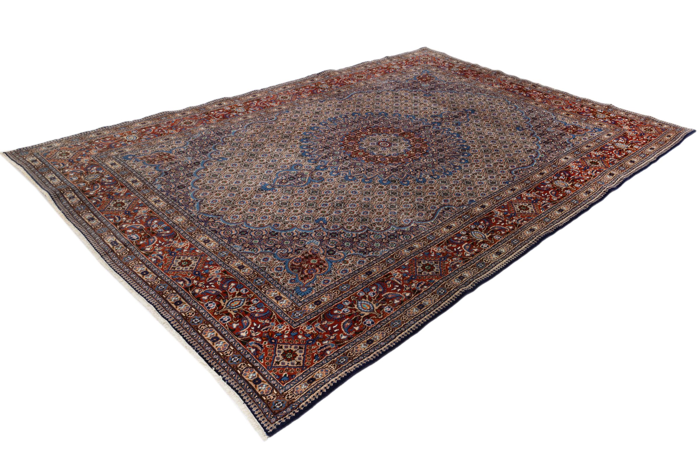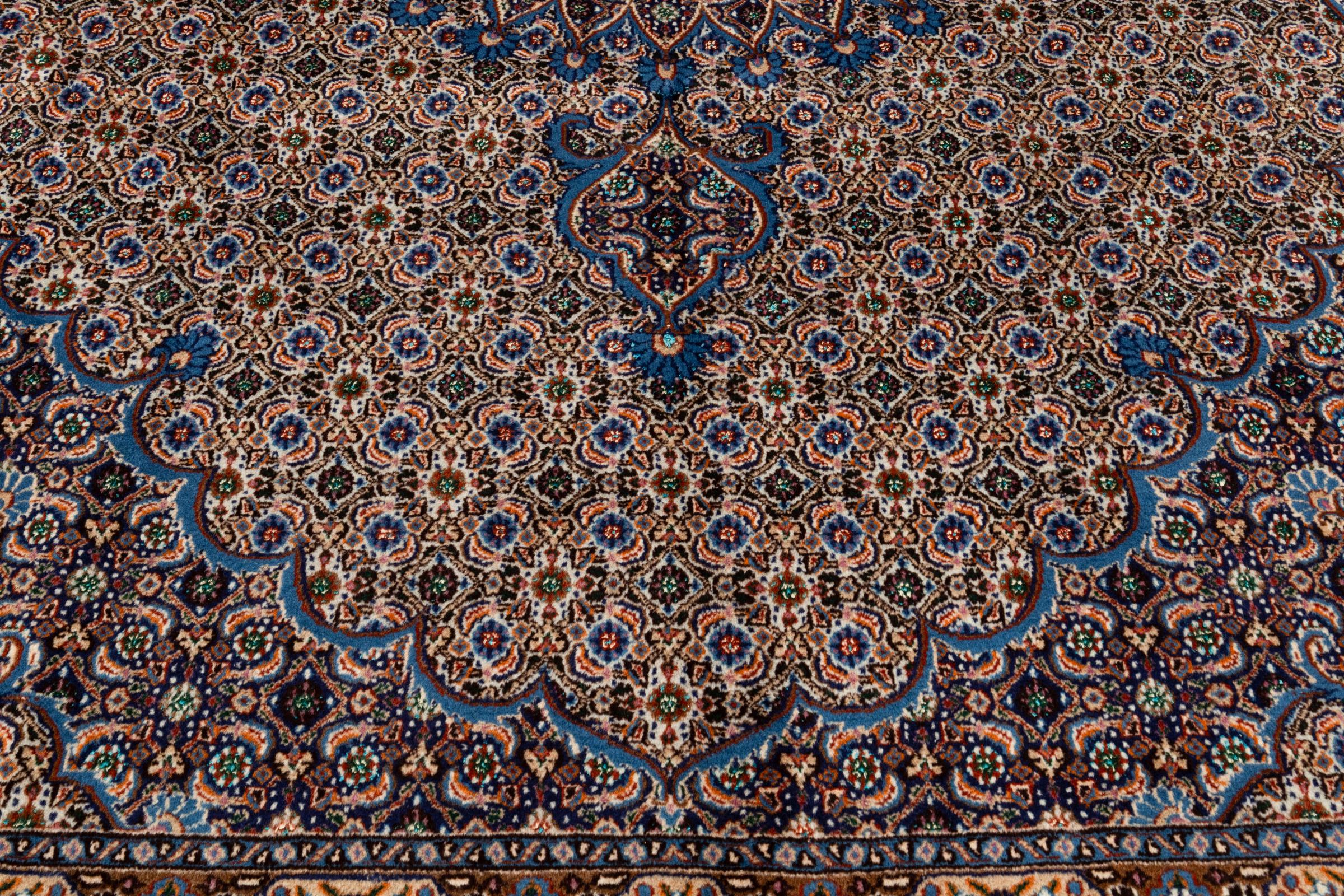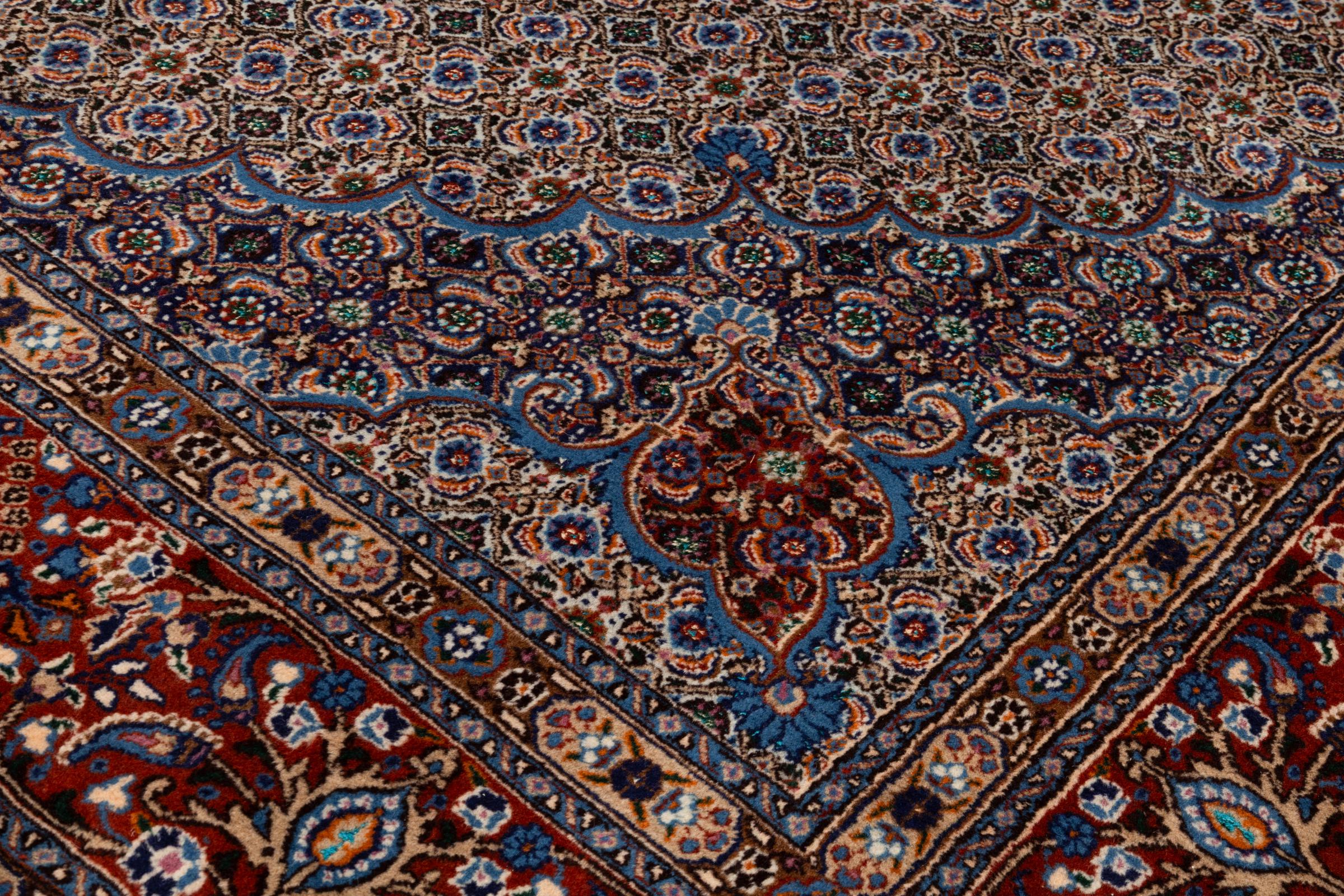 Dit tapijt uit Moud, een stadje 300 km ten zuiden van Mashhad, is op het eerste gezicht indrukwekkend. Het typische Herati-patroon of tuindessin wordt gewaardeerd door kenners en liefhebbers van echte Perzische tapijten. Als u op zoek bent naar een handgemaakt tapijt van fijne kwaliteit met een zeer uniek en onderscheidend ontwerp, dan is dit type tapijt absoluut iets voor u.