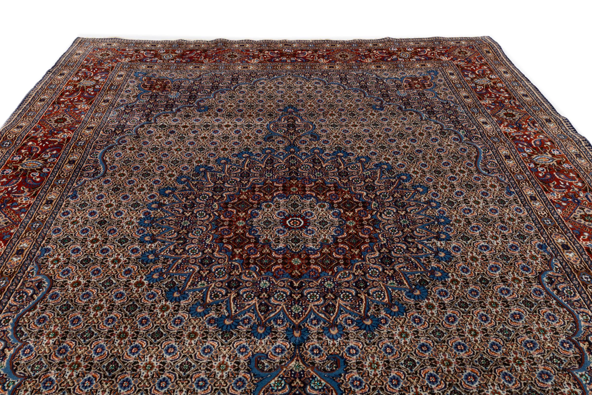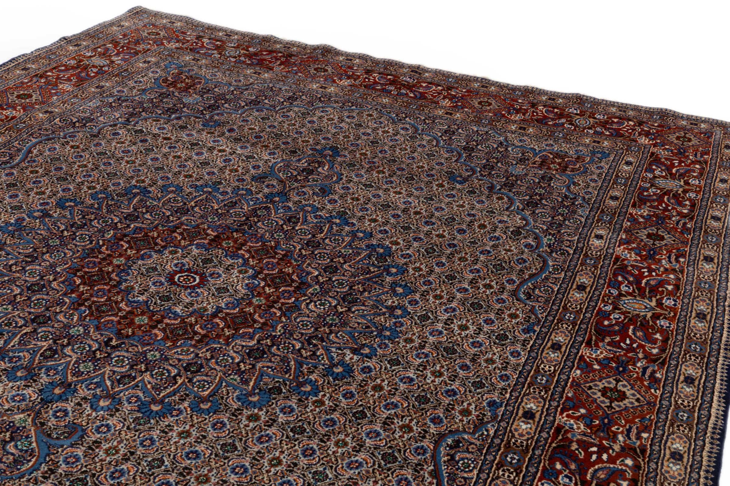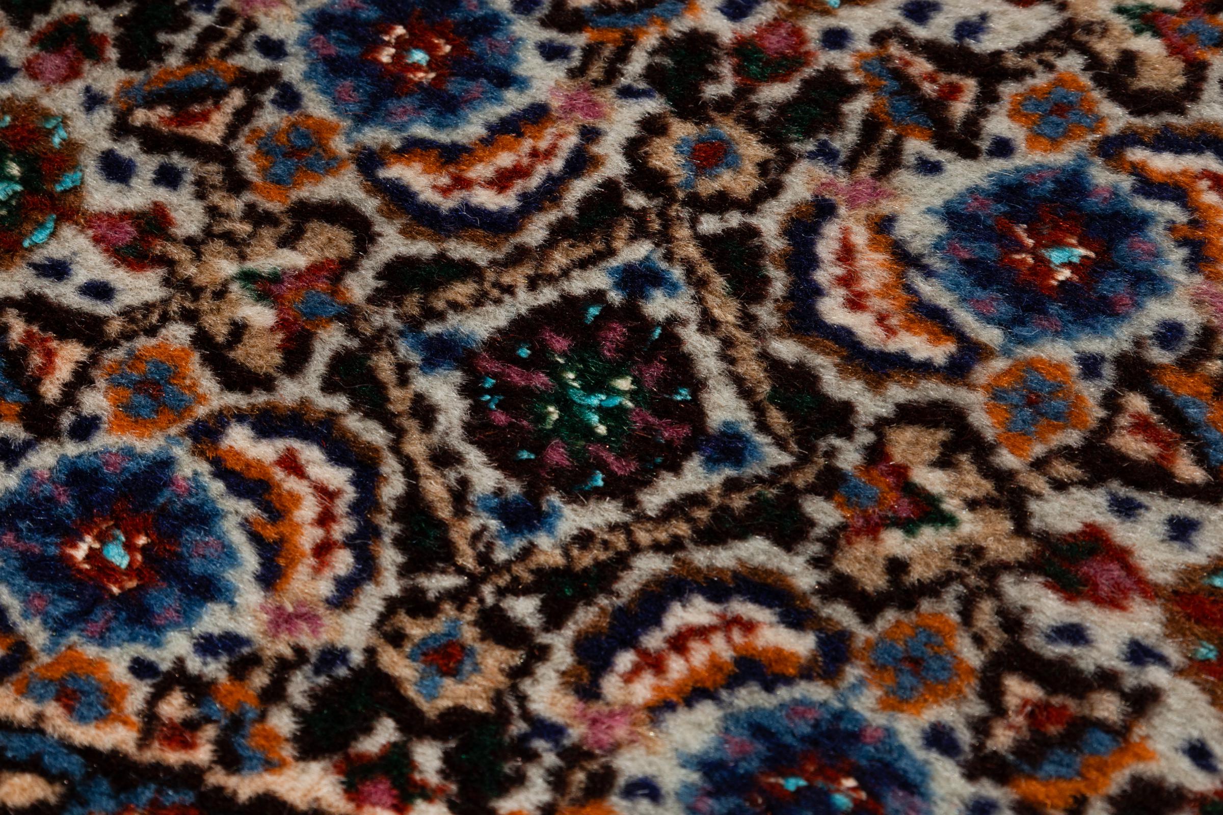 Dit tapijt uit Moud, een stadje 300 km ten zuiden van Mashhad, is op het eerste gezicht indrukwekkend. Het typische Herati-patroon of tuindessin wordt gewaardeerd door kenners en liefhebbers van echte Perzische tapijten. Als u op zoek bent naar een handgemaakt tapijt van fijne kwaliteit met een zeer uniek en onderscheidend ontwerp, dan is dit type tapijt absoluut iets voor u.