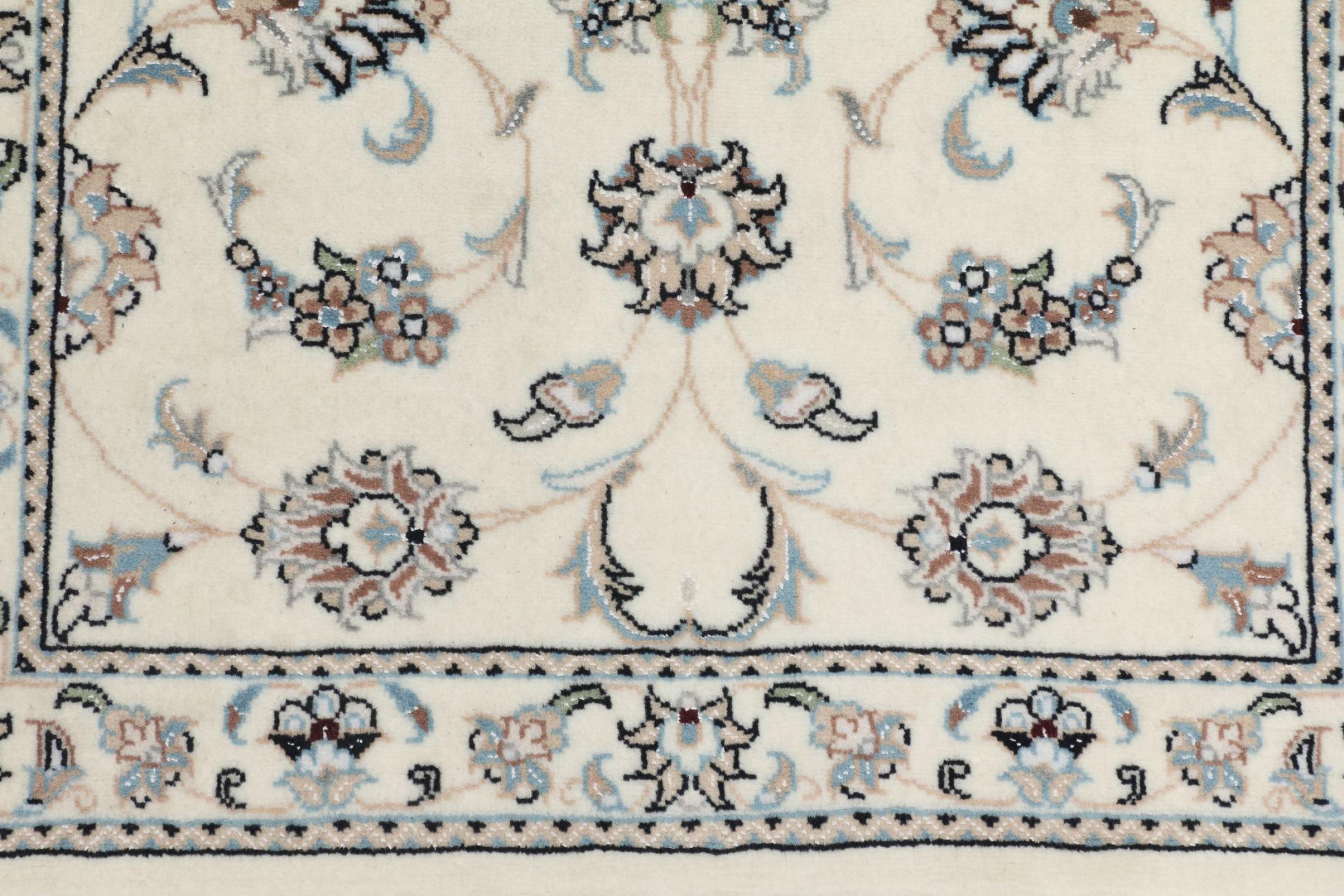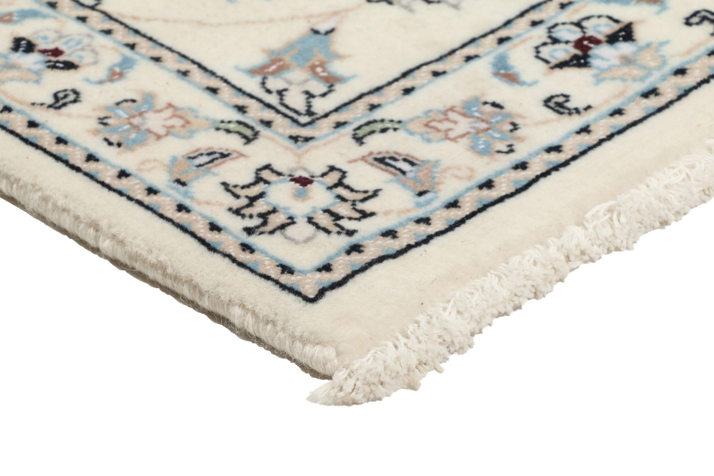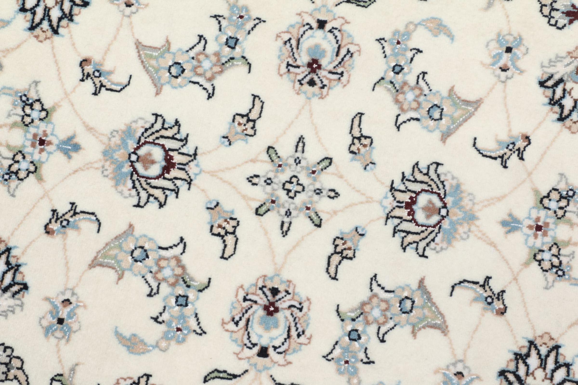 Dit Nain-tapijt heeft een beoordeling van 9La. De uitstekende kwaliteit en het prachtige oosterse ontwerp met zijn ronde patronen zullen elke koper bekoren. Dit Perzische tapijt is handgemaakt in de stad Nain, gelegen aan de westelijke rand van de Dasht-e-Kavir-woestijn, van hoogwaardige wol en natuurlijke zijde. 9La Nain zijn duidelijk dunner dan een 12La en laten al mooie details zien.