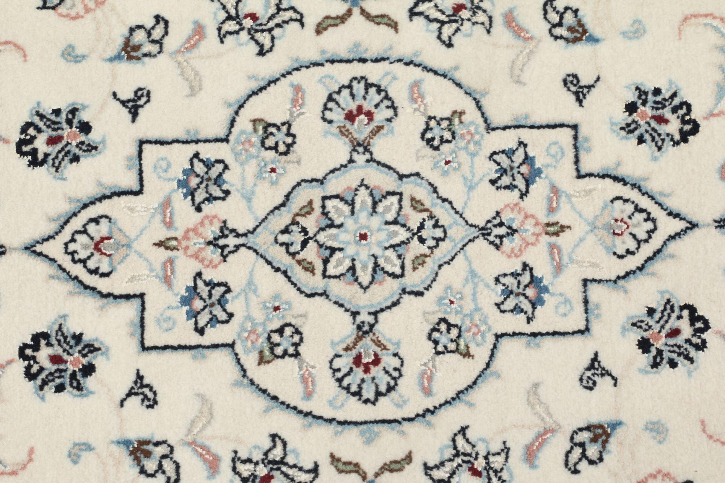 Dit Nain-tapijt heeft een beoordeling van 9La. De uitstekende kwaliteit en het prachtige oosterse ontwerp met zijn ronde patronen zullen elke koper bekoren. Dit Perzische tapijt is handgemaakt in de stad Nain, gelegen aan de westelijke rand van de Dasht-e-Kavir-woestijn, van hoogwaardige wol en natuurlijke zijde. 9La Nain zijn duidelijk dunner dan een 12La en laten al mooie details zien.