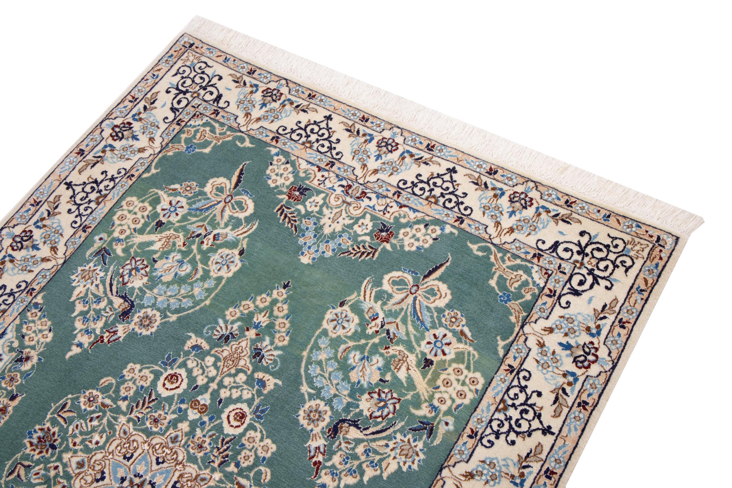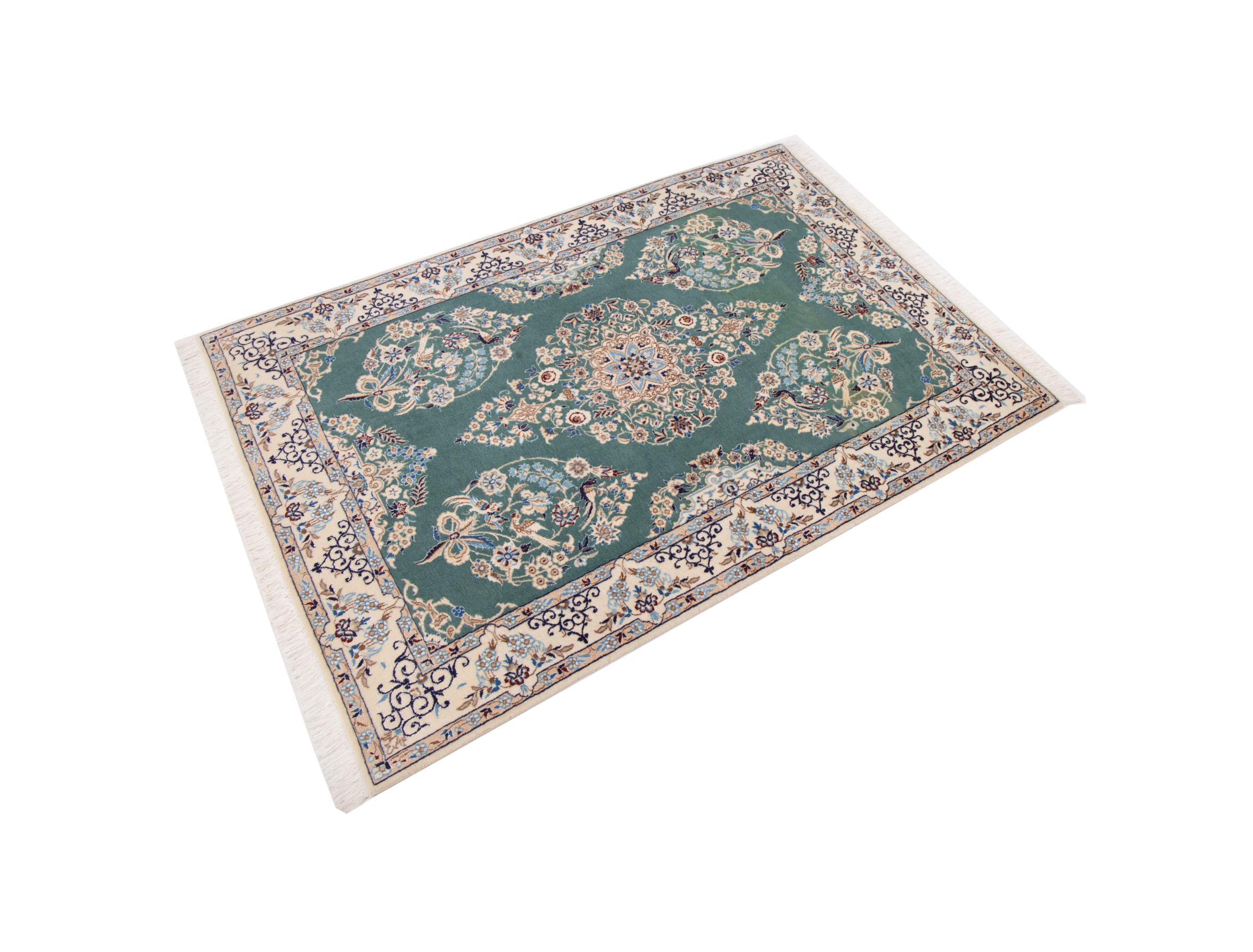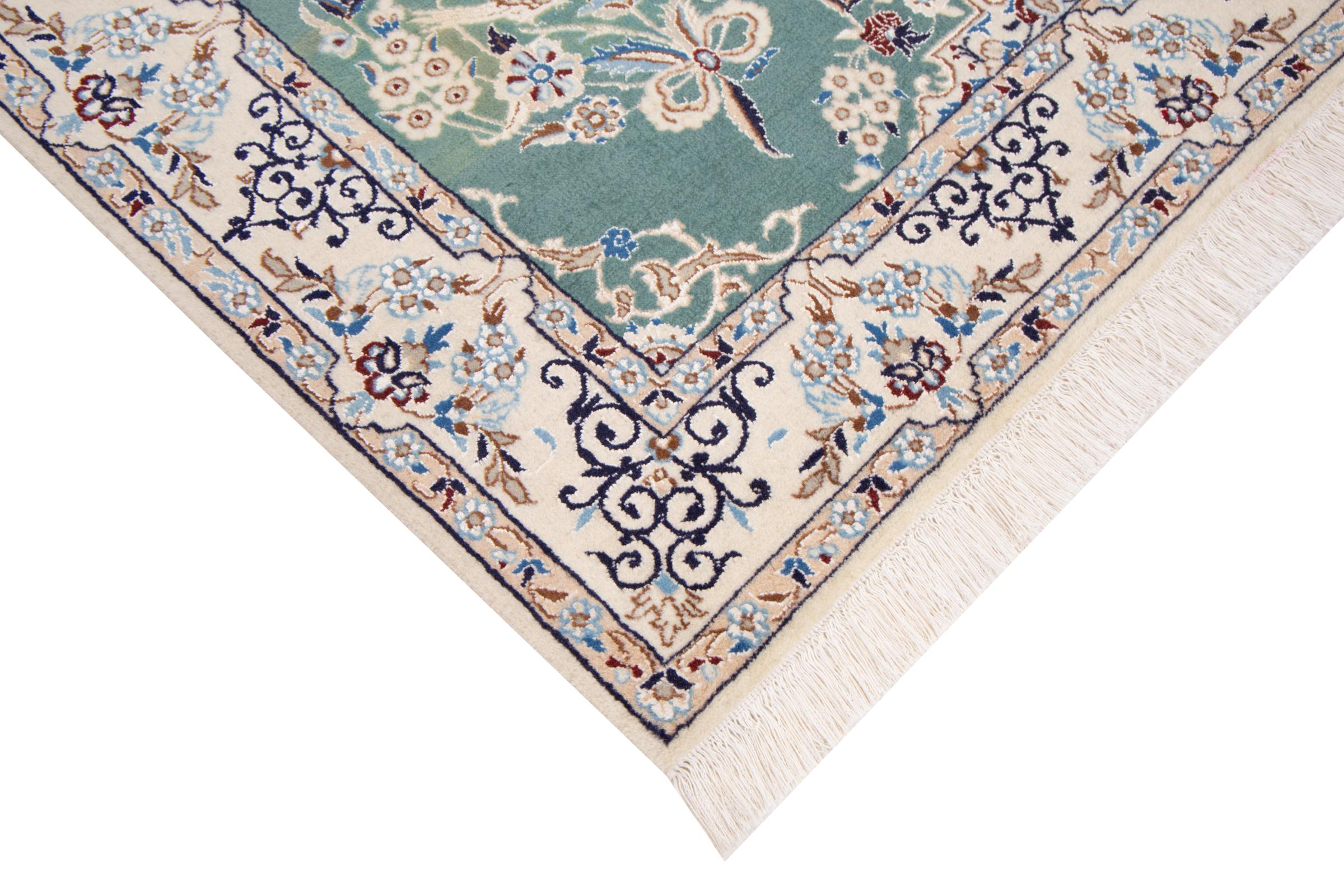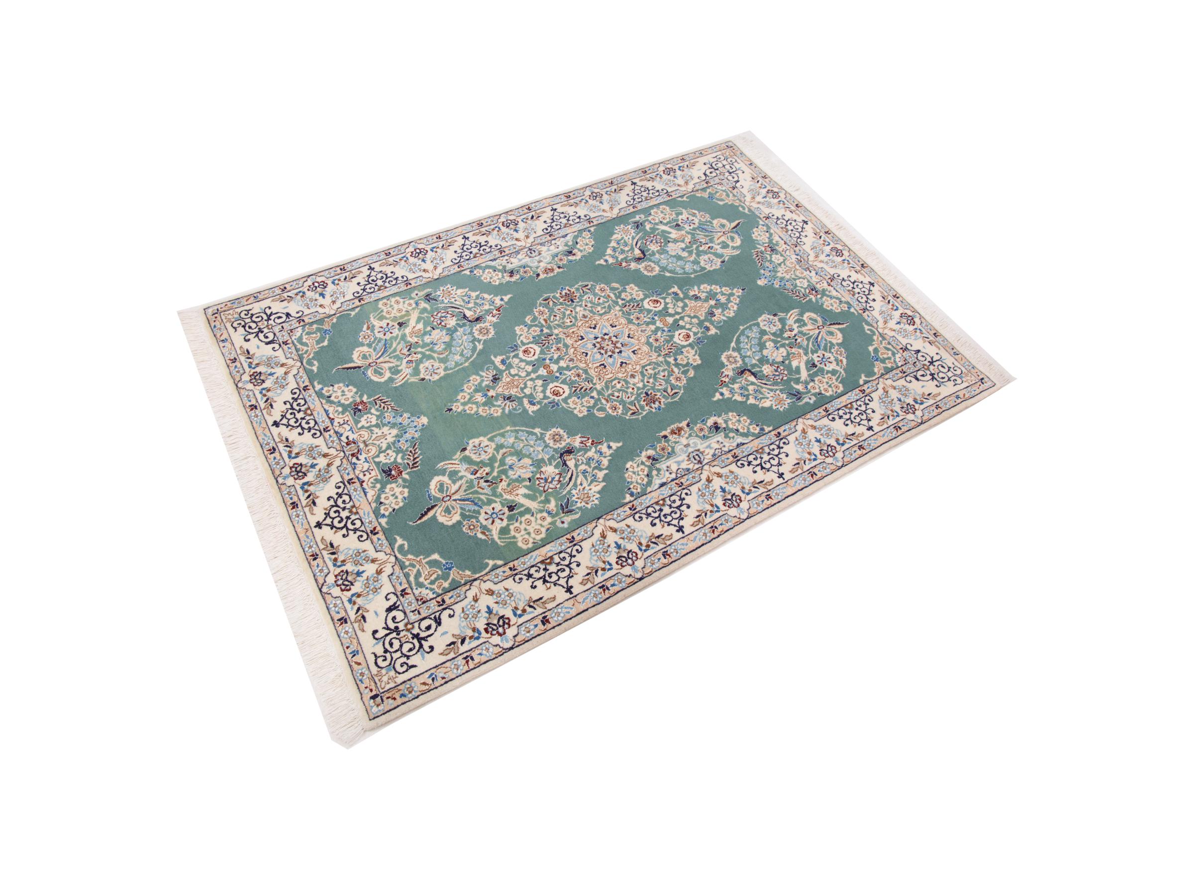 Dit Nain tapijt combineert kwaliteit, traditie en een onmiskenbaar design. Het werd met de hand geknoopt in het gelijknamige woestijnstadje Nain, van hoogwaardige kurkwol en natuurlijke zijde. Liefhebbers van waardevolle tapijten uit Iran zullen dit Perzische tapijt waarderen. Met Nain tapijten van de classificatie 6La en 4La heb je een echt kunstwerk met een ongelooflijk detailniveau waarin je letterlijk kunt verdwalen. Nain 4La-tapijten zijn tegenwoordig moeilijk te vinden omdat ze uiterst complex zijn om te produceren.