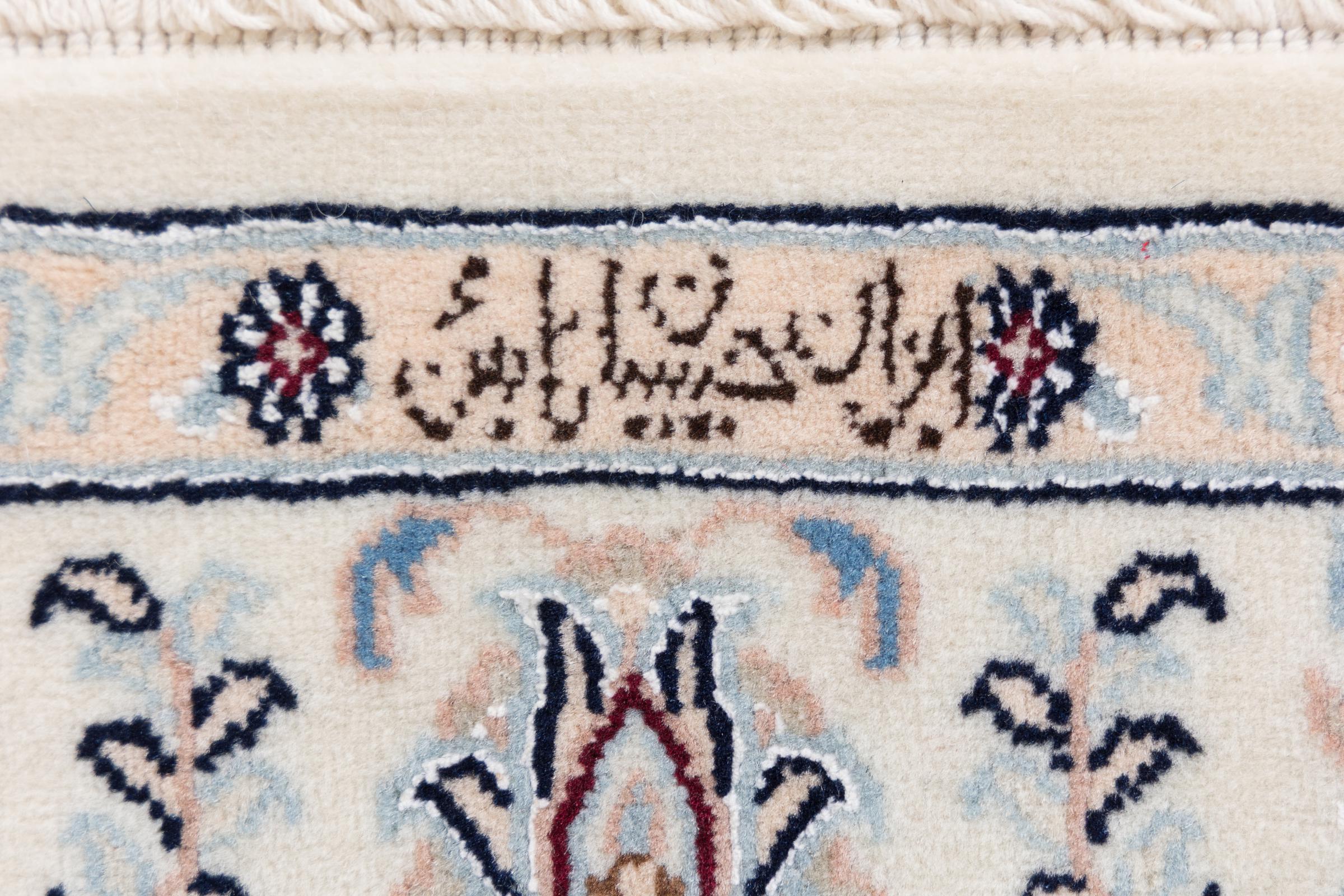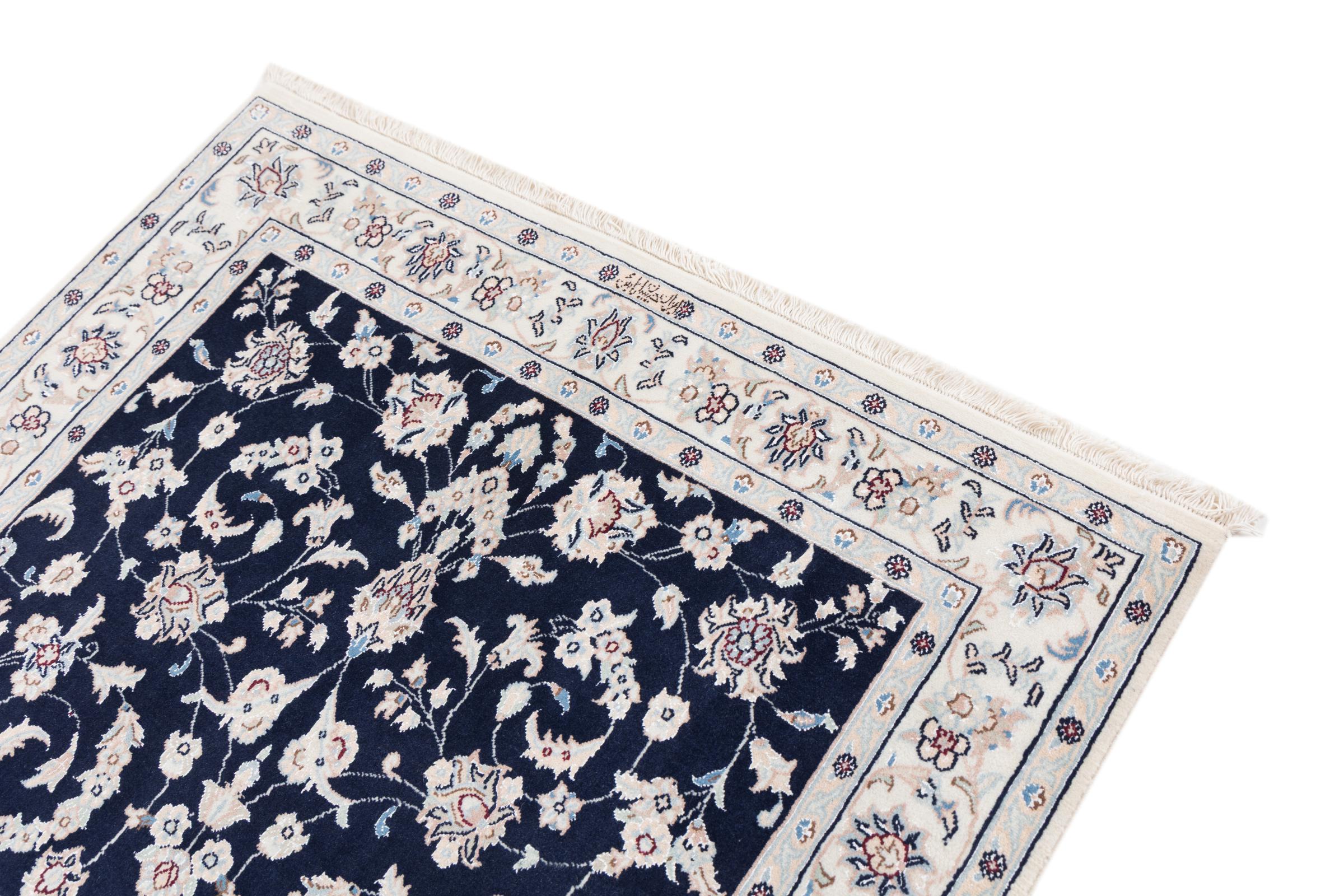 Dit Nain tapijt combineert kwaliteit, traditie en een onmiskenbaar design. Het werd met de hand geknoopt in het gelijknamige woestijnstadje Nain, van hoogwaardige kurkwol en natuurlijke zijde. Liefhebbers van waardevolle tapijten uit Iran zullen dit Perzische tapijt waarderen. Met Nain tapijten van de classificatie 6La en 4La heb je een echt kunstwerk met een ongelooflijk detailniveau waarin je letterlijk kunt verdwalen. Nain 4La-tapijten zijn tegenwoordig moeilijk te vinden omdat ze uiterst complex zijn om te produceren.