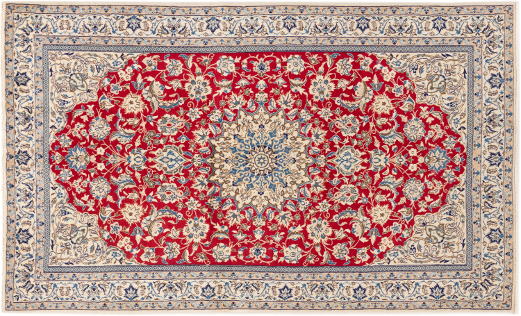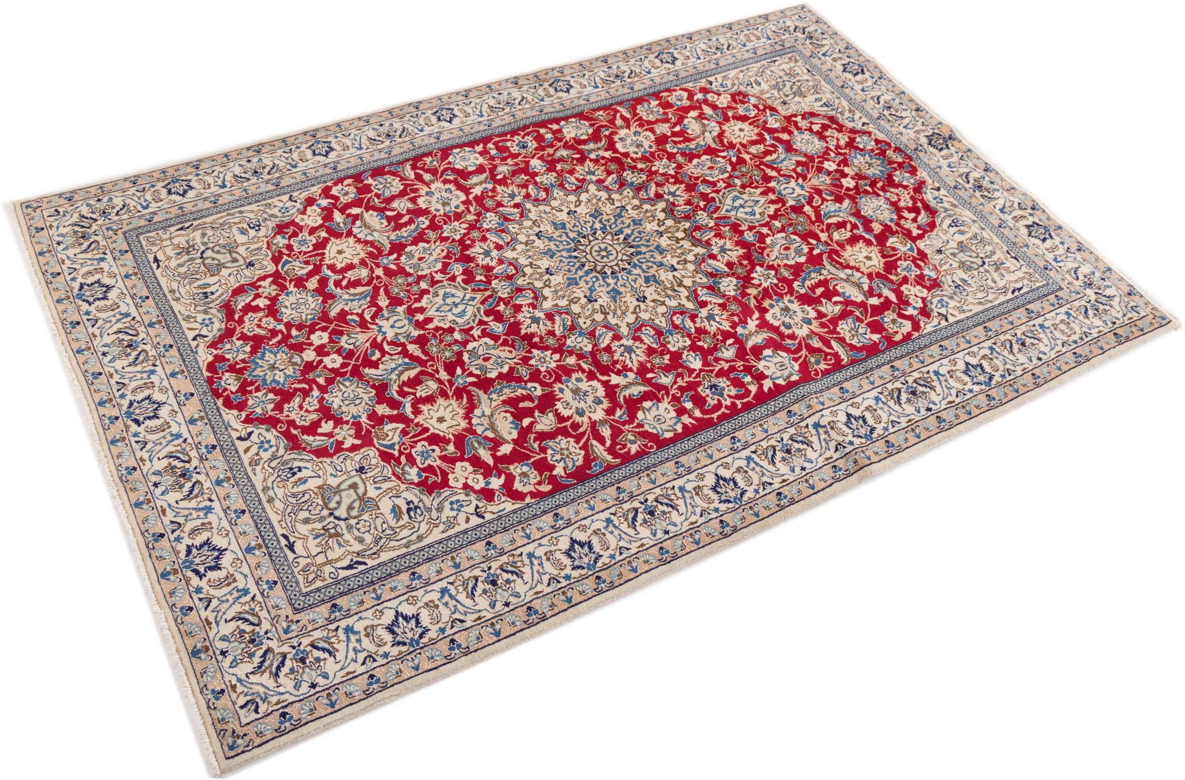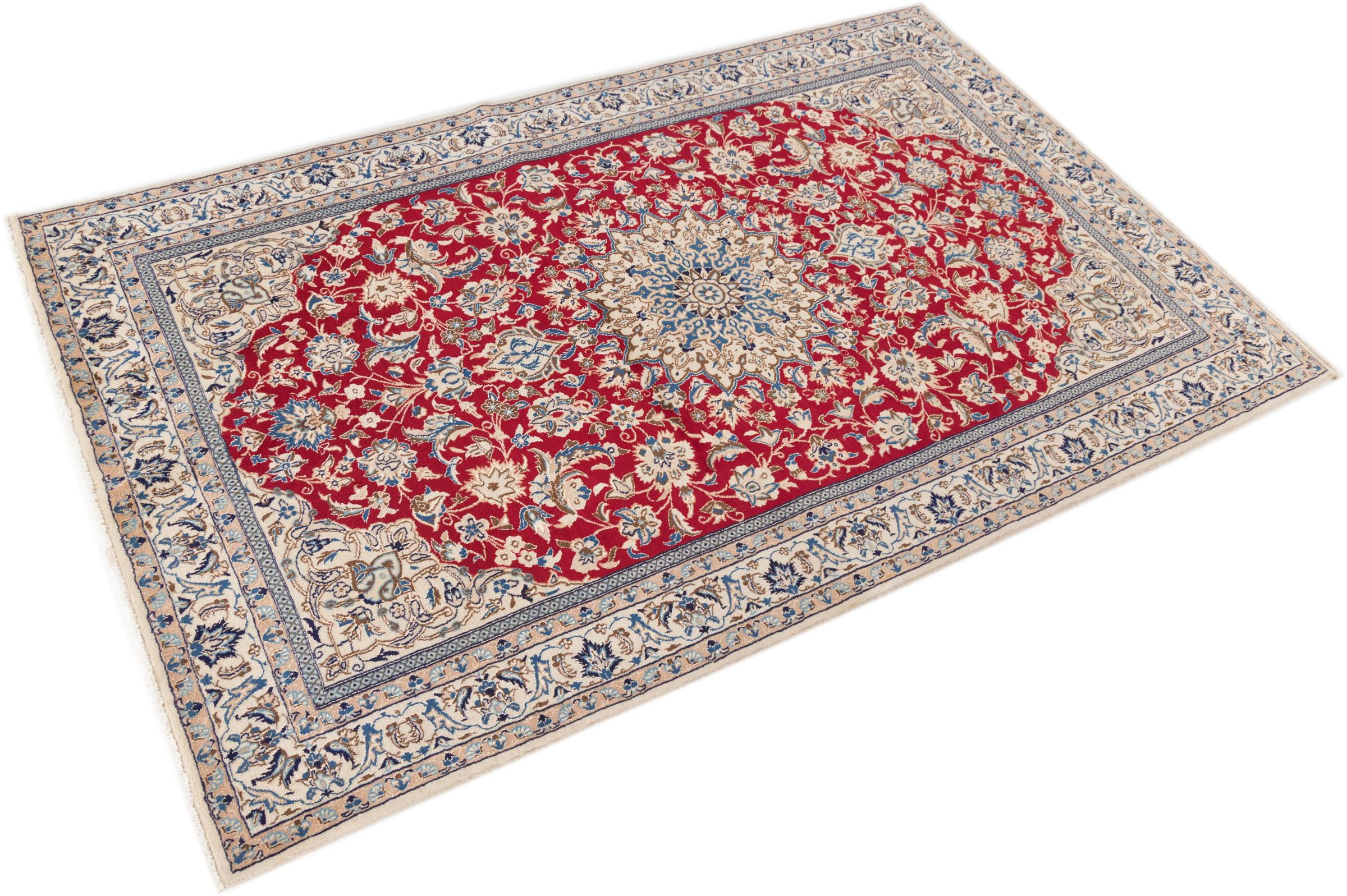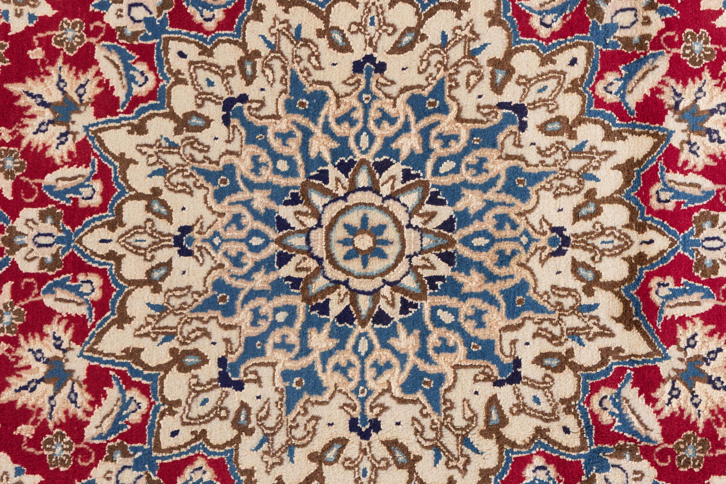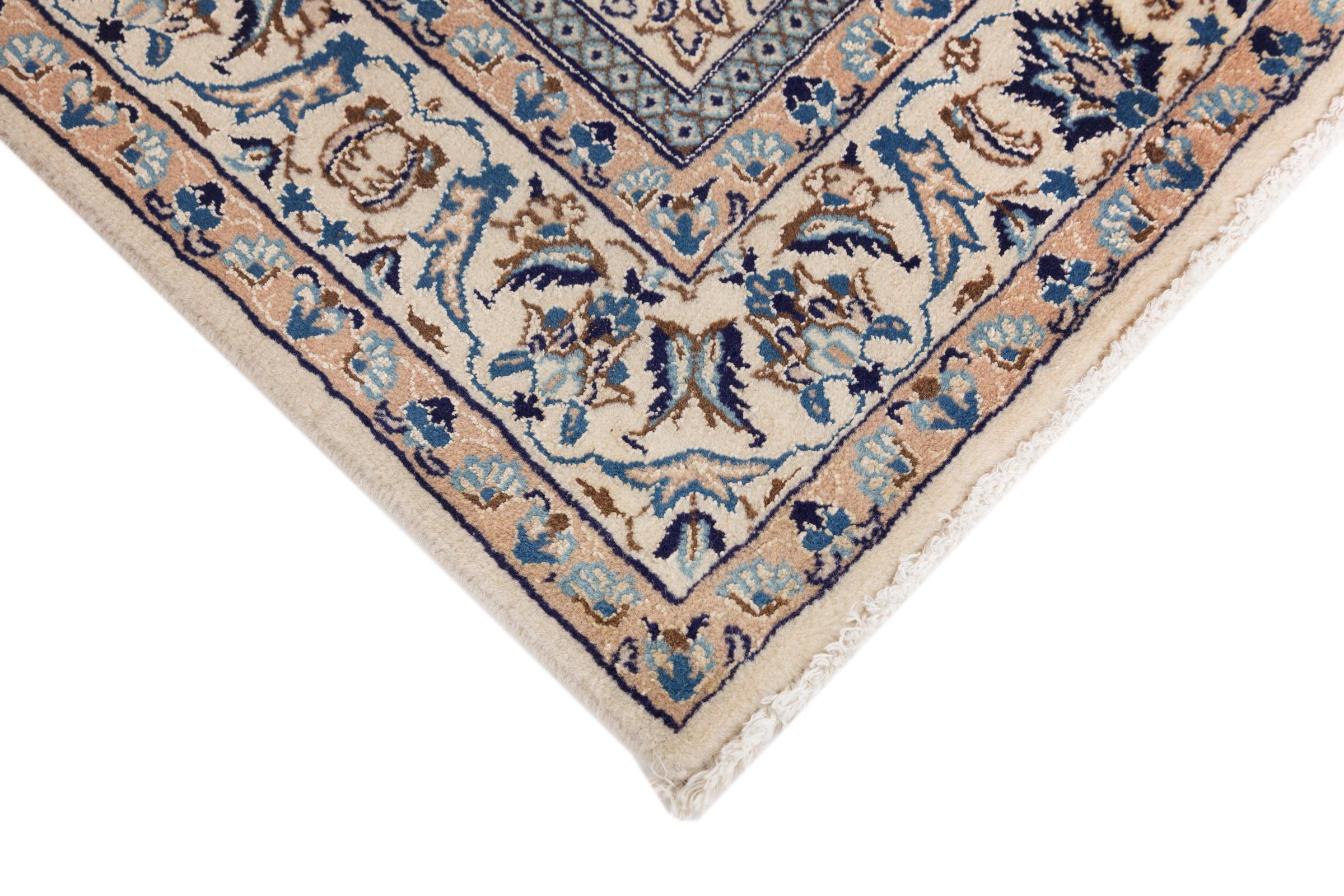 Dit Nain-tapijt heeft een beoordeling van 9La. De uitstekende kwaliteit en het prachtige oosterse ontwerp met zijn ronde patronen zullen elke koper bekoren. Dit Perzische tapijt is handgemaakt in de stad Nain, gelegen aan de westelijke rand van de Dasht-e-Kavir-woestijn, van hoogwaardige wol en natuurlijke zijde. 9La Nain zijn duidelijk dunner dan een 12La en laten al mooie details zien.