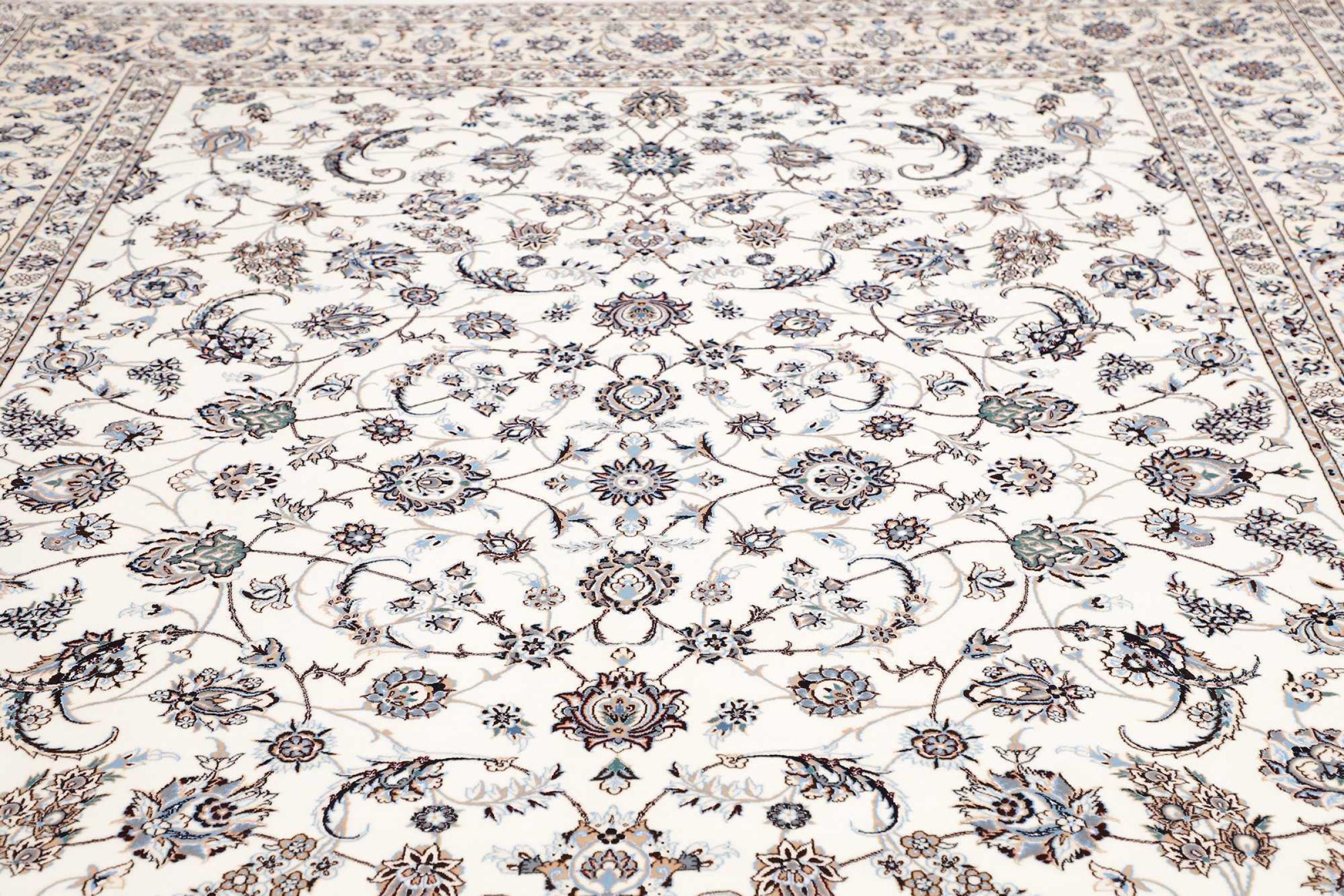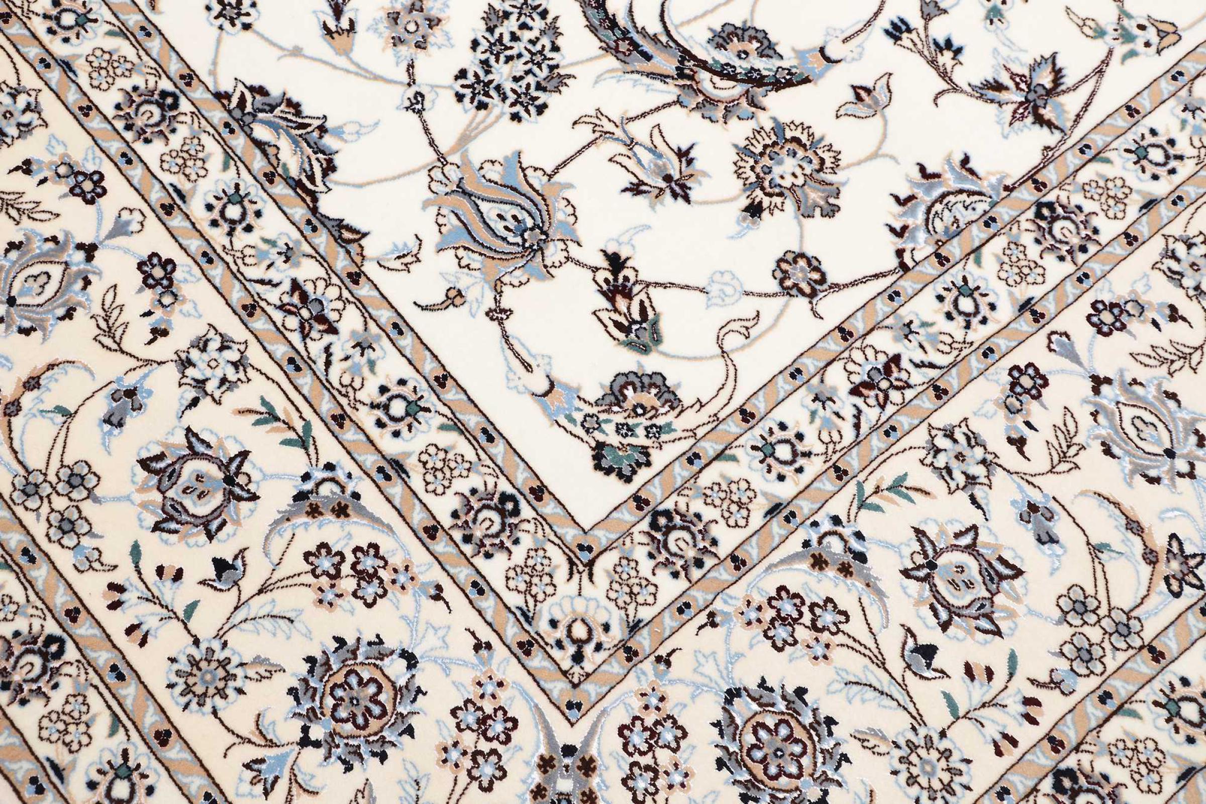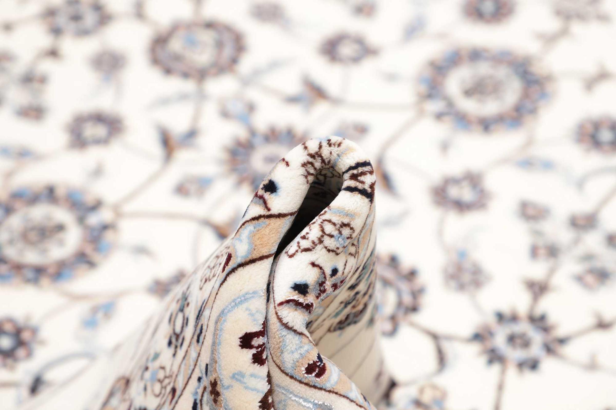 Dit Nain tapijt combineert kwaliteit, traditie en een onmiskenbaar design. Het werd met de hand geknoopt in het gelijknamige woestijnstadje Nain, van hoogwaardige kurkwol en natuurlijke zijde. Liefhebbers van waardevolle tapijten uit Iran zullen dit Perzische tapijt waarderen. Met Nain tapijten van de classificatie 6La en 4La heb je een echt kunstwerk met een ongelooflijk detailniveau waarin je letterlijk kunt verdwalen. Nain 4La-tapijten zijn tegenwoordig moeilijk te vinden omdat ze uiterst complex zijn om te produceren.
