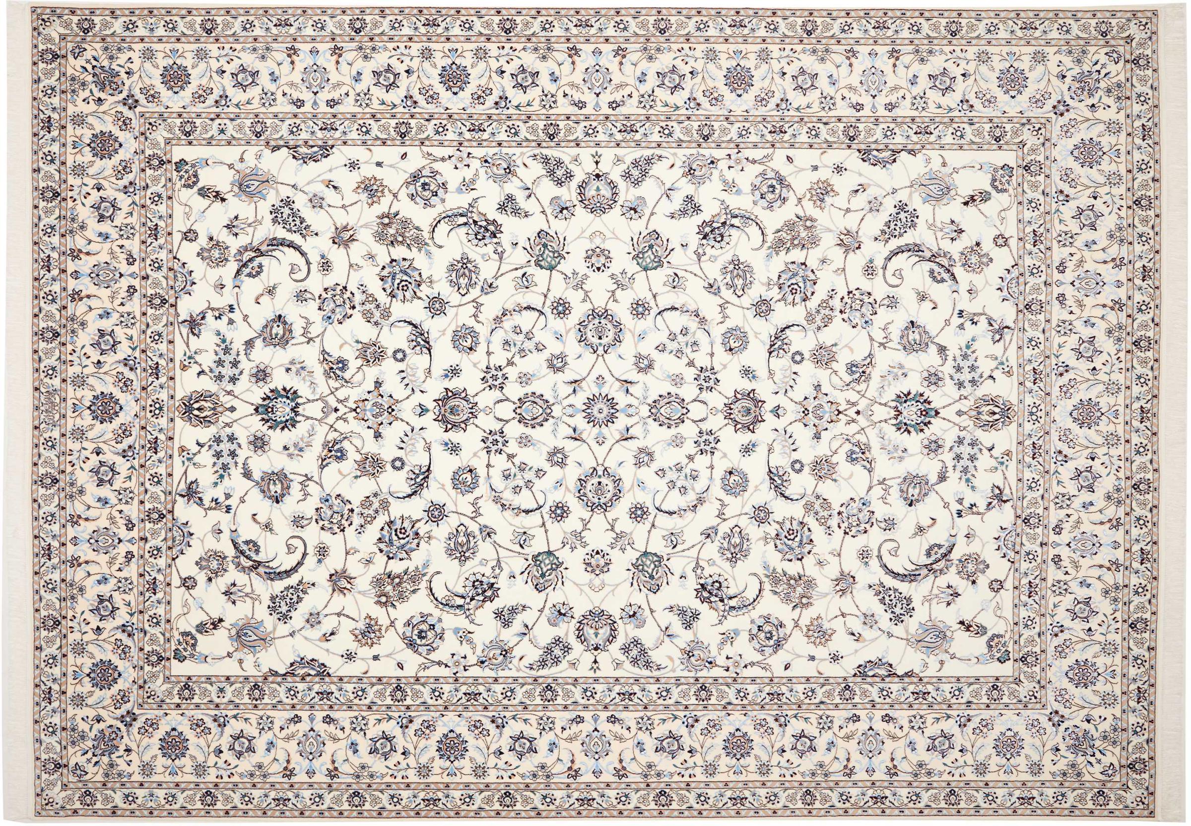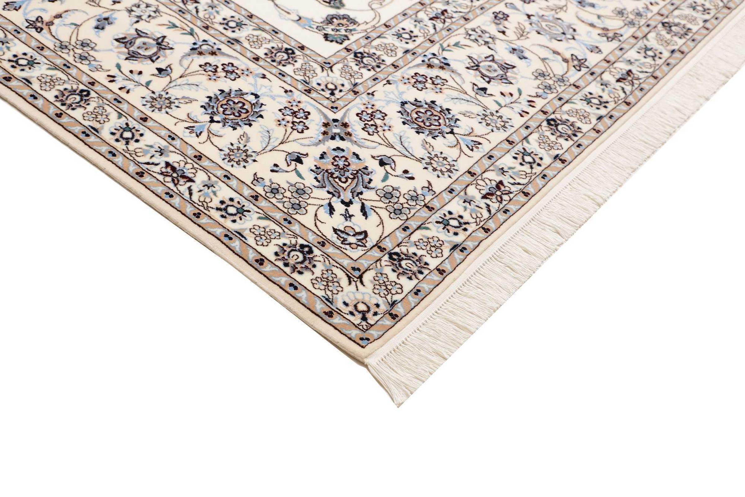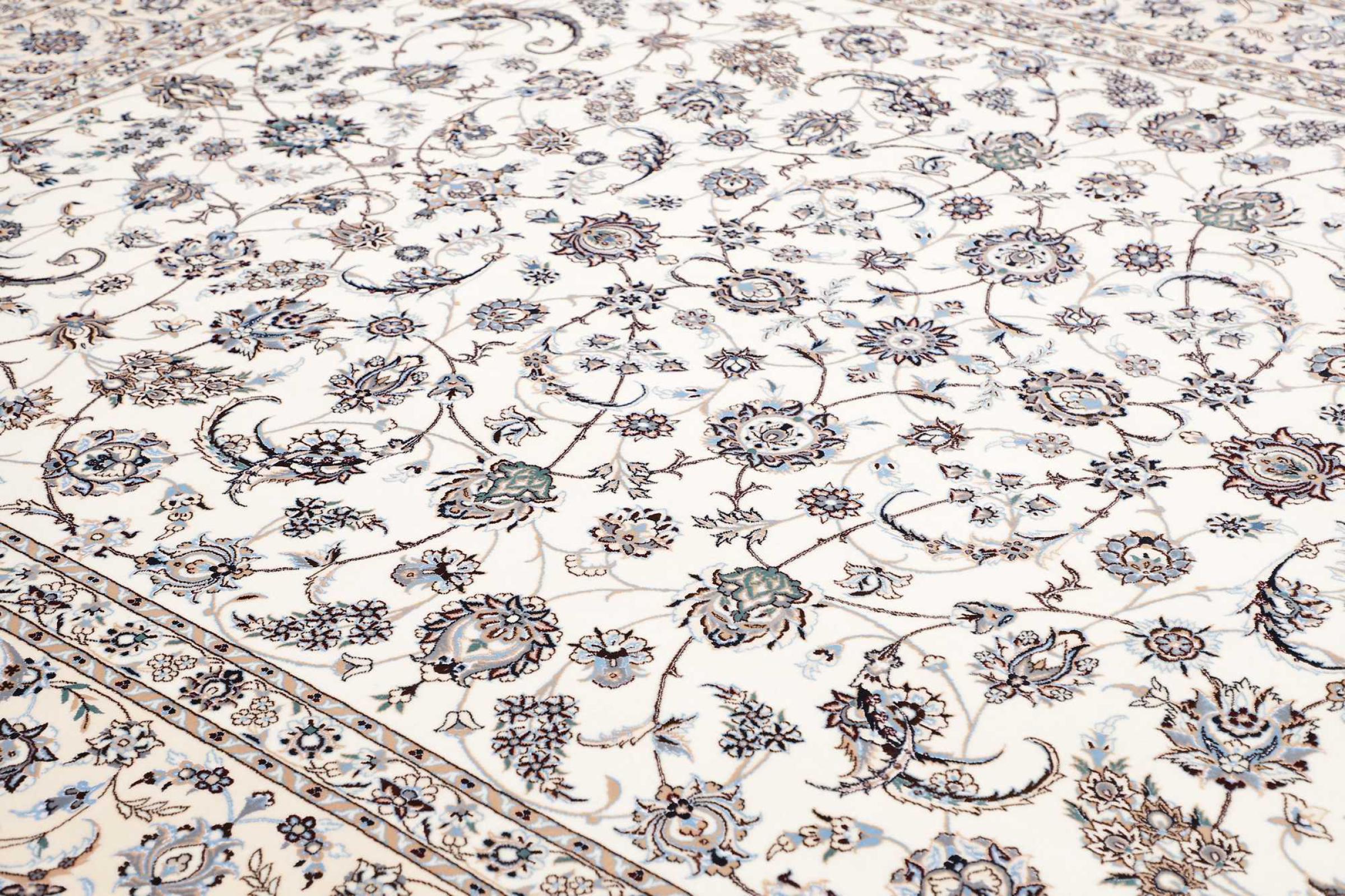 Dit Nain tapijt combineert kwaliteit, traditie en een onmiskenbaar design. Het werd met de hand geknoopt in het gelijknamige woestijnstadje Nain, van hoogwaardige kurkwol en natuurlijke zijde. Liefhebbers van waardevolle tapijten uit Iran zullen dit Perzische tapijt waarderen. Met Nain tapijten van de classificatie 6La en 4La heb je een echt kunstwerk met een ongelooflijk detailniveau waarin je letterlijk kunt verdwalen. Nain 4La-tapijten zijn tegenwoordig moeilijk te vinden omdat ze uiterst complex zijn om te produceren.