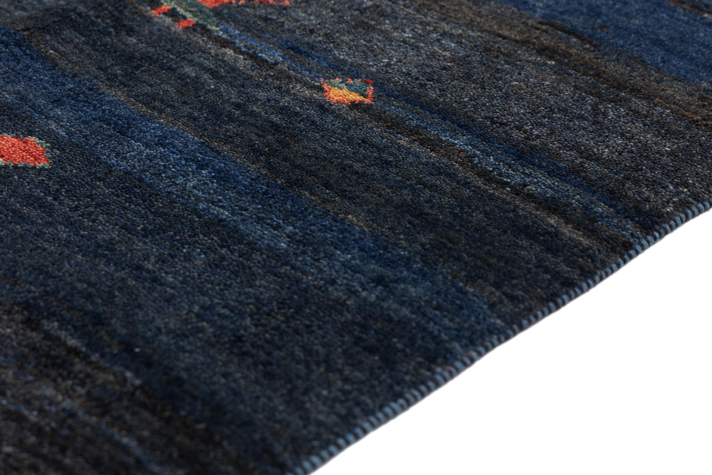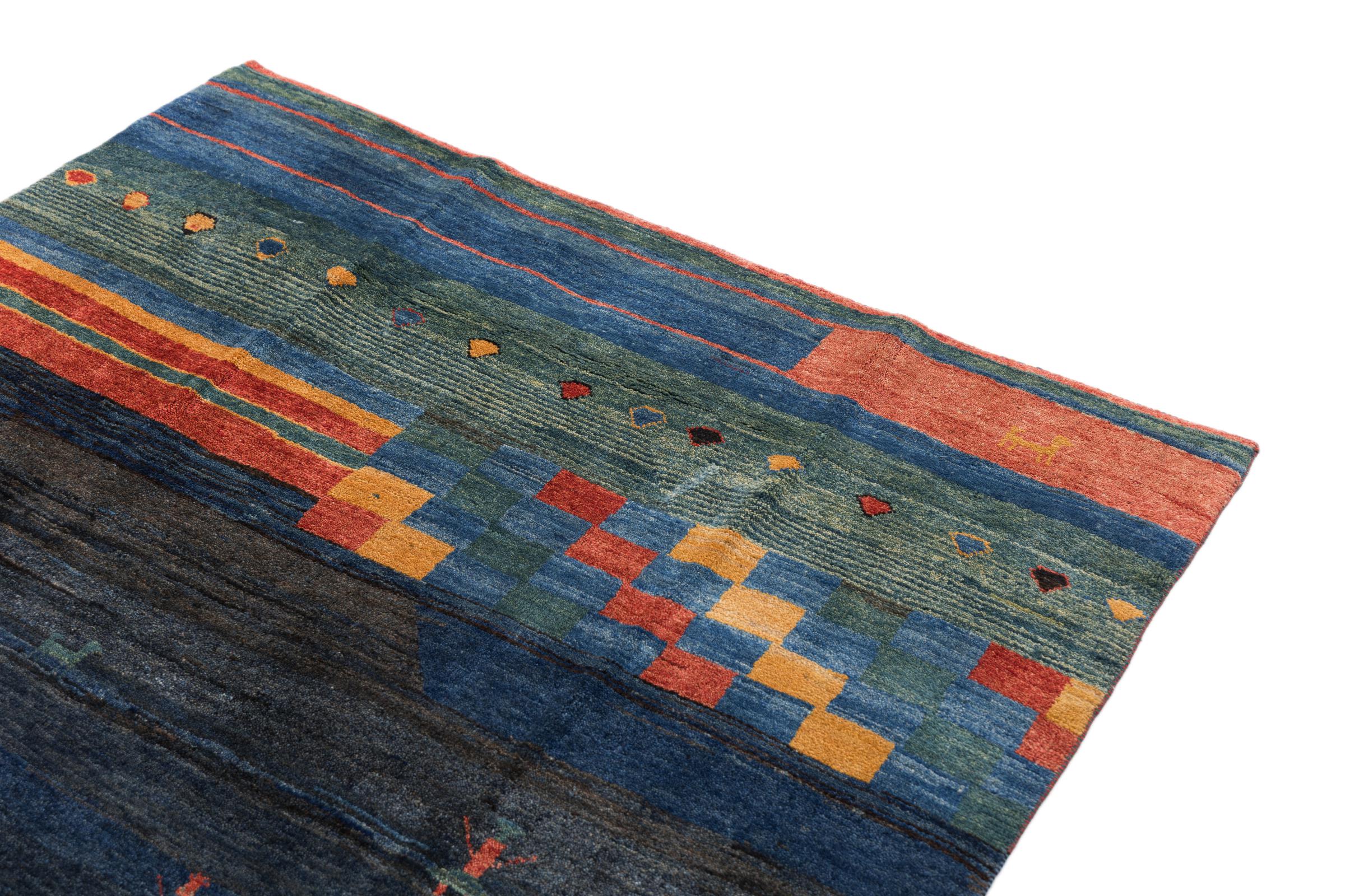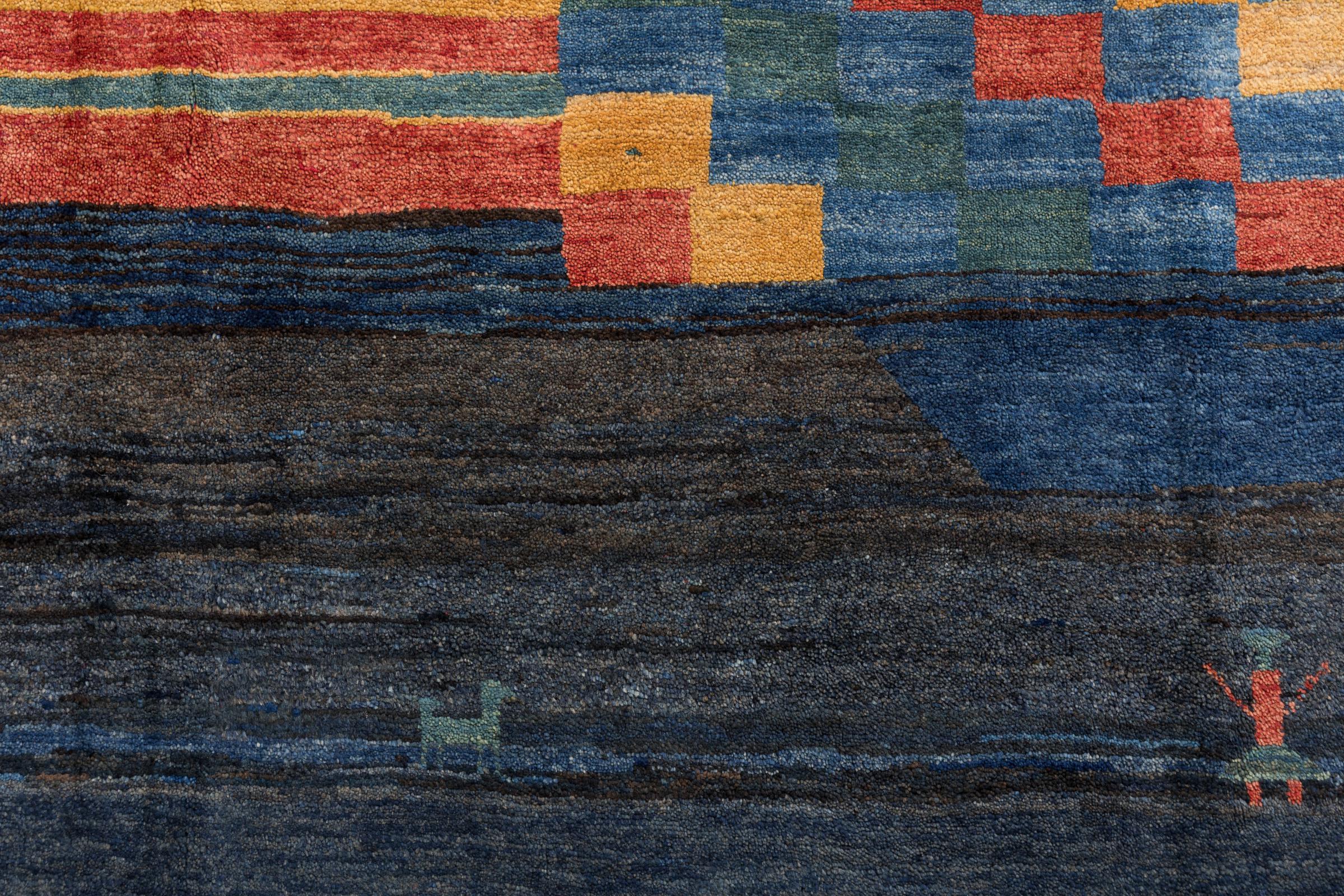 Deze handgeknoopte Perzische Gabbeh valt meteen op door zijn hoogwaardige en zeer robuuste pool. Het werd met de hand geknoopt door Ghashghai-nomaden in de provincie Fars in het zuiden van Perzië van de beste lokale schapenwol. Voor het verven van de wol worden natuurlijke plantaardige kleurstoffen gebruikt. Hierdoor is het een zeer waardevolle toevoeging aan de kinderkamer. Deze Perzische Gabbeh vertegenwoordigt de hoogste klasse Gabbeh-tapijten.