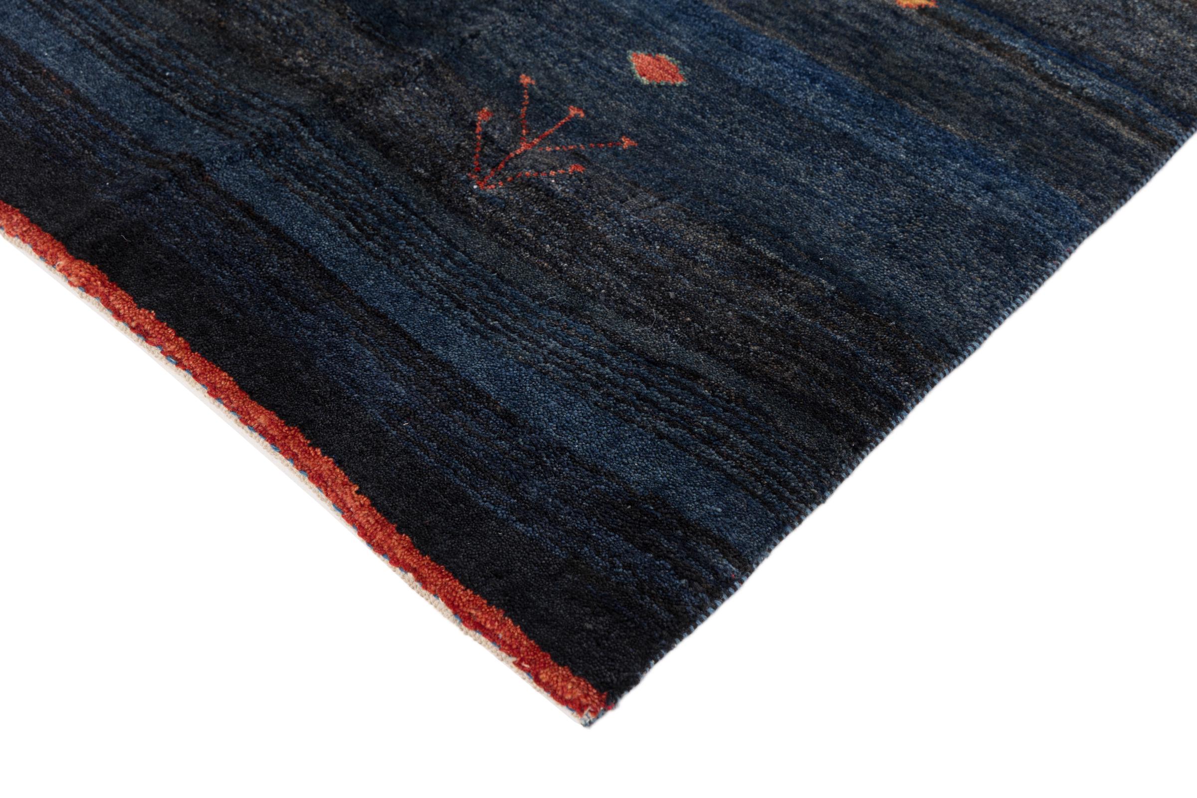 Dit prachtige tapijt is een Perzisch Gabbeh-tapijt en behoort daarom tot de hoogste kwaliteit Gabbeh-tapijten. De tapijten worden geknoopt door nomaden of semi-nomaden in Iran volgens traditioneel vakmanschap. De eenvoudige motieven en patronen zijn vooral geïnspireerd op de directe omgeving van de nomaden. Zo zijn er bijvoorbeeld kamelen, bomen of struiken te vinden op de traditionele tapijten. De Perzische Gabbeh-tapijten zijn gemaakt van wol van lokaal opgefokte kuddes schapen. De wol wordt dus meestal nog met de hand gesponnen. Elk van deze oosterse tapijten belichaamt dus een uniek karakter van de eeuwenoude cultuur.