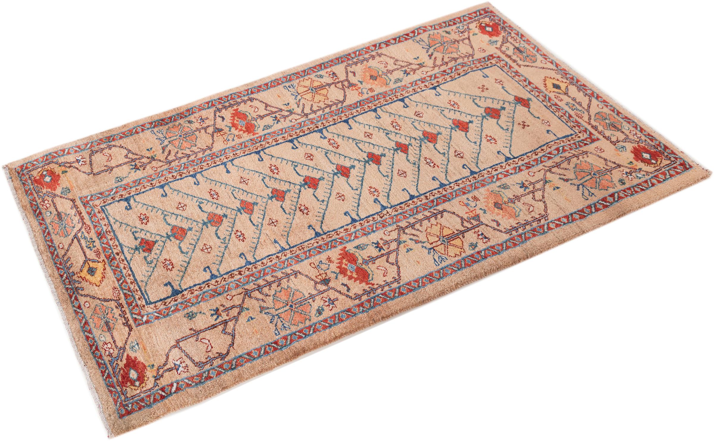 Dit prachtige tapijt is een Perzisch Gabbeh-tapijt en behoort daarom tot de hoogste kwaliteit Gabbeh-tapijten. De tapijten worden geknoopt door nomaden of semi-nomaden in Iran volgens traditioneel vakmanschap. De eenvoudige motieven en patronen zijn vooral geïnspireerd op de directe omgeving van de nomaden. Zo zijn er bijvoorbeeld kamelen, bomen of struiken te vinden op de traditionele tapijten. De Perzische Gabbeh-tapijten zijn gemaakt van wol van lokaal opgefokte kuddes schapen. De wol wordt dus meestal nog met de hand gesponnen. Elk van deze oosterse tapijten belichaamt dus een uniek karakter van de eeuwenoude cultuur.