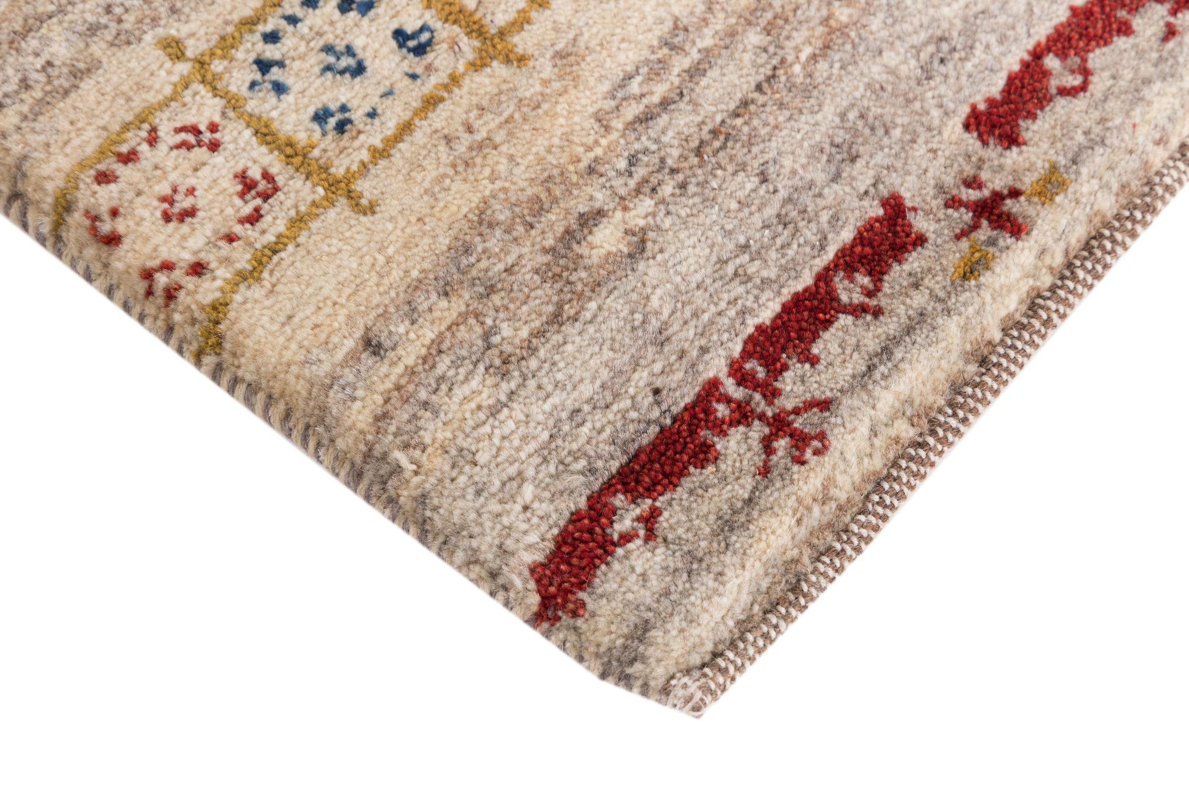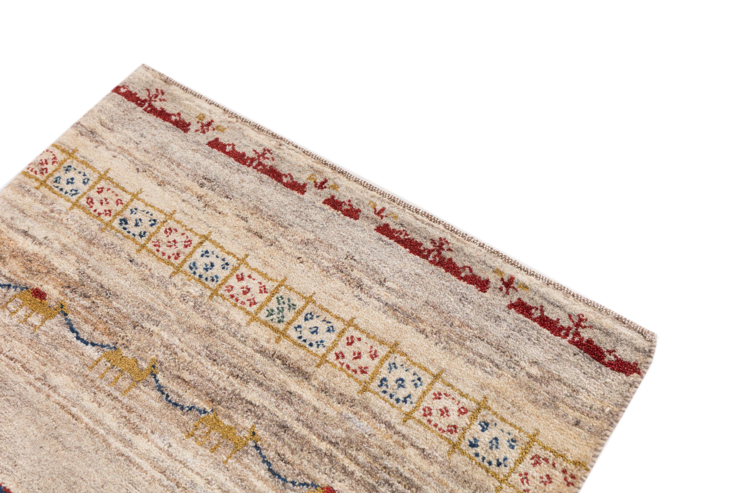 Dit prachtige tapijt is een Perzisch Gabbeh-tapijt en behoort daarom tot de hoogste kwaliteit Gabbeh-tapijten. De tapijten worden geknoopt door nomaden of semi-nomaden in Iran volgens traditioneel vakmanschap. De eenvoudige motieven en patronen zijn vooral geïnspireerd op de directe omgeving van de nomaden. Zo zijn er bijvoorbeeld kamelen, bomen of struiken te vinden op de traditionele tapijten. De Perzische Gabbeh-tapijten zijn gemaakt van wol van lokaal opgefokte kuddes schapen. De wol wordt dus meestal nog met de hand gesponnen. Elk van deze oosterse tapijten belichaamt dus een uniek karakter van de eeuwenoude cultuur.