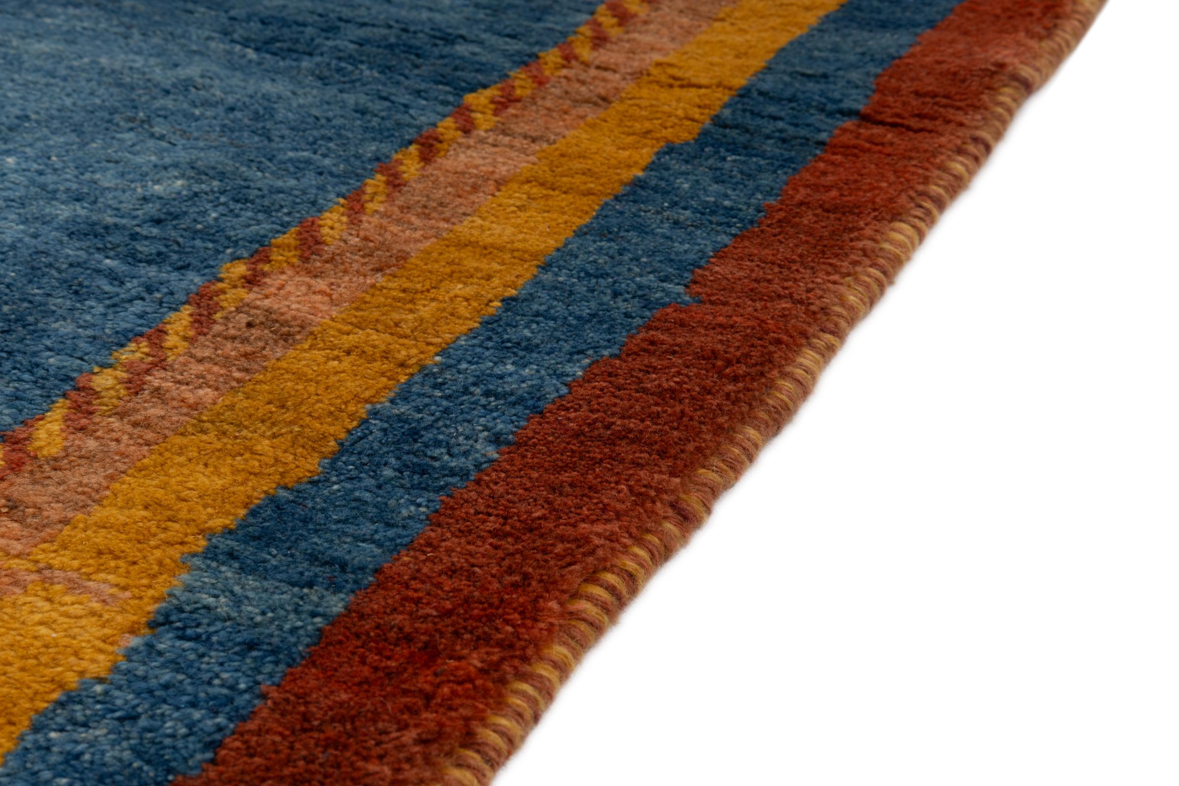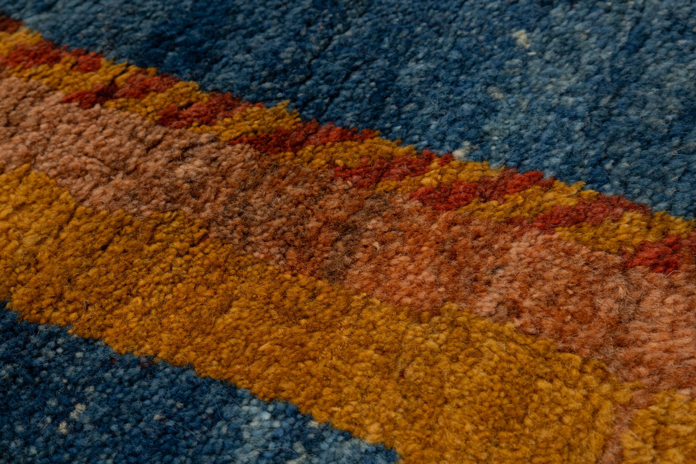Dit prachtige tapijt is een Perzisch Gabbeh-tapijt en behoort daarom tot de hoogste kwaliteit Gabbeh-tapijten. De tapijten worden geknoopt door nomaden of semi-nomaden in Iran volgens traditioneel vakmanschap. De eenvoudige motieven en patronen zijn vooral geïnspireerd op de directe omgeving van de nomaden. Zo zijn er bijvoorbeeld kamelen, bomen of struiken te vinden op de traditionele tapijten. De Perzische Gabbeh-tapijten zijn gemaakt van wol van lokaal opgefokte kuddes schapen. De wol wordt dus meestal nog met de hand gesponnen. Elk van deze oosterse tapijten belichaamt dus een uniek karakter van de eeuwenoude cultuur.