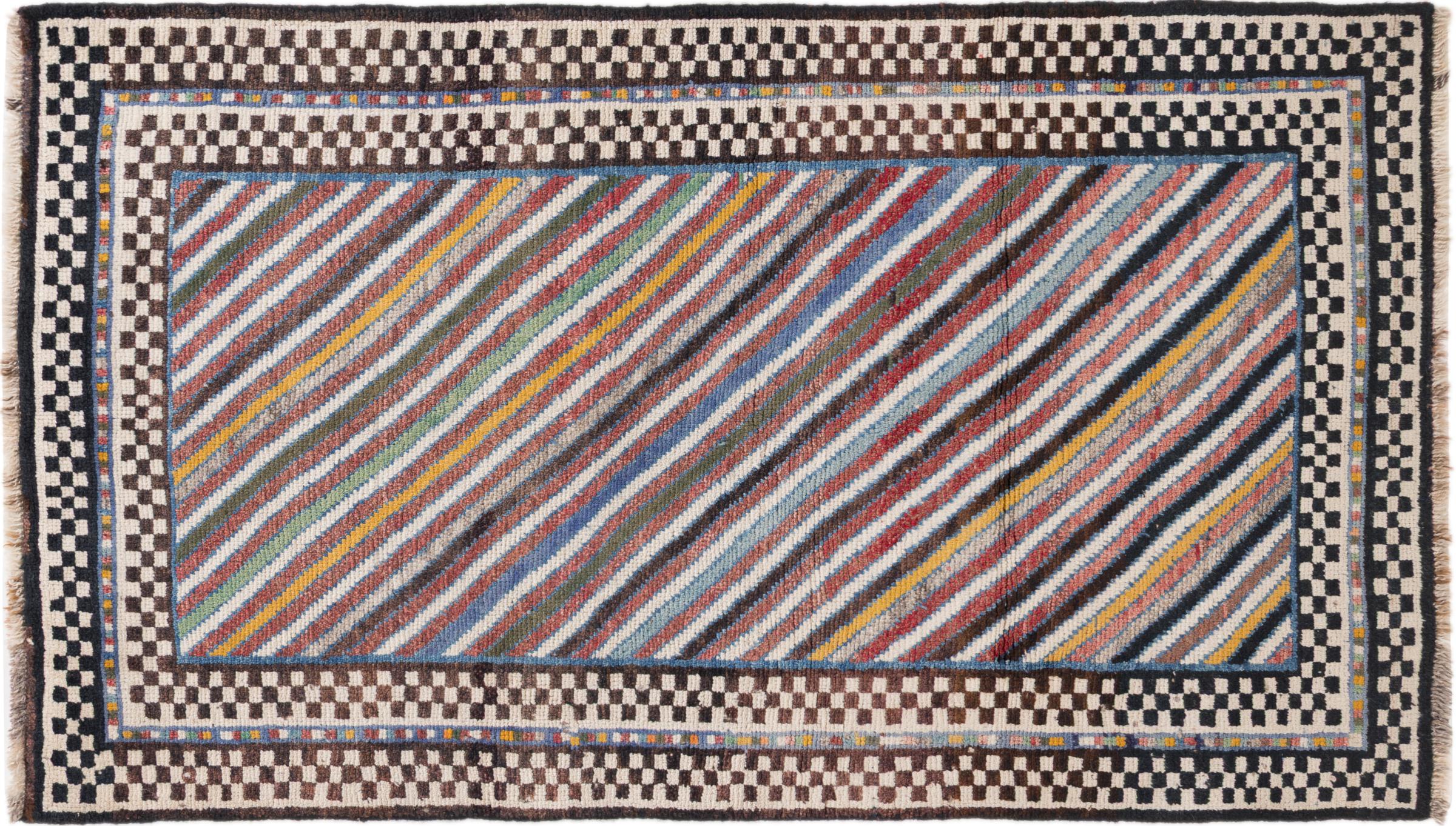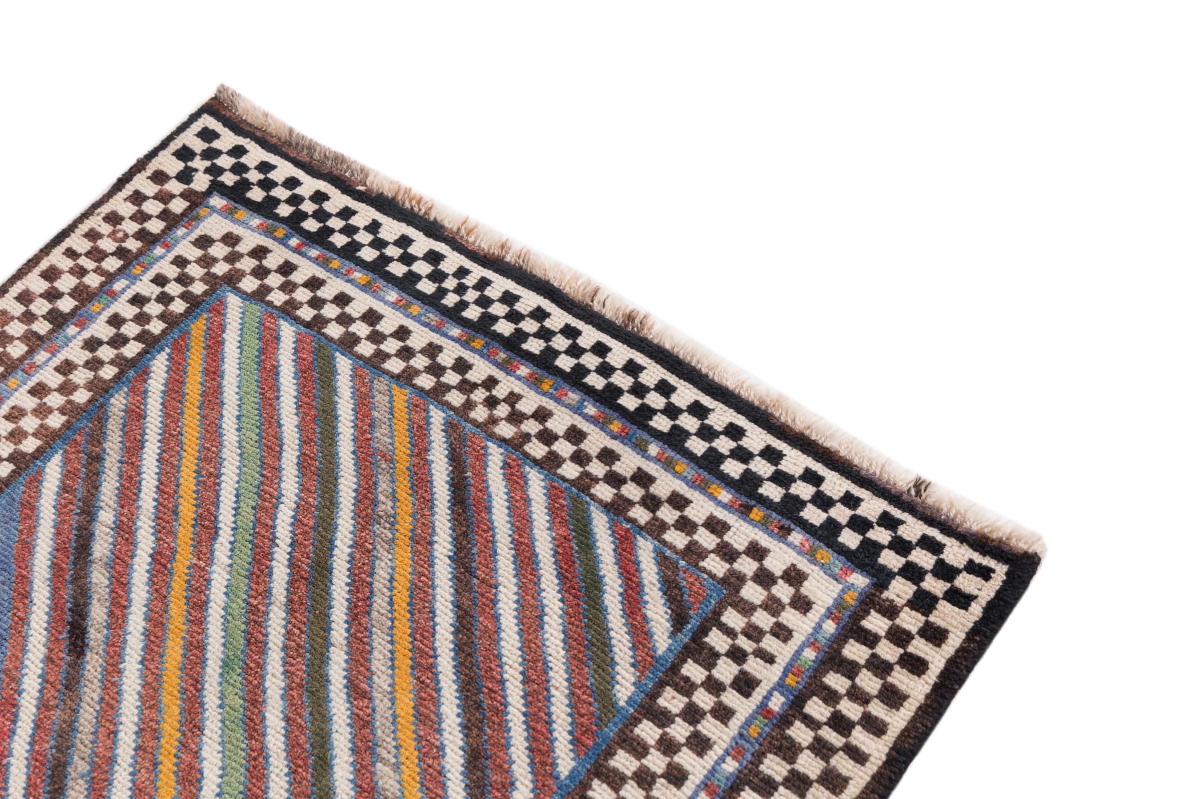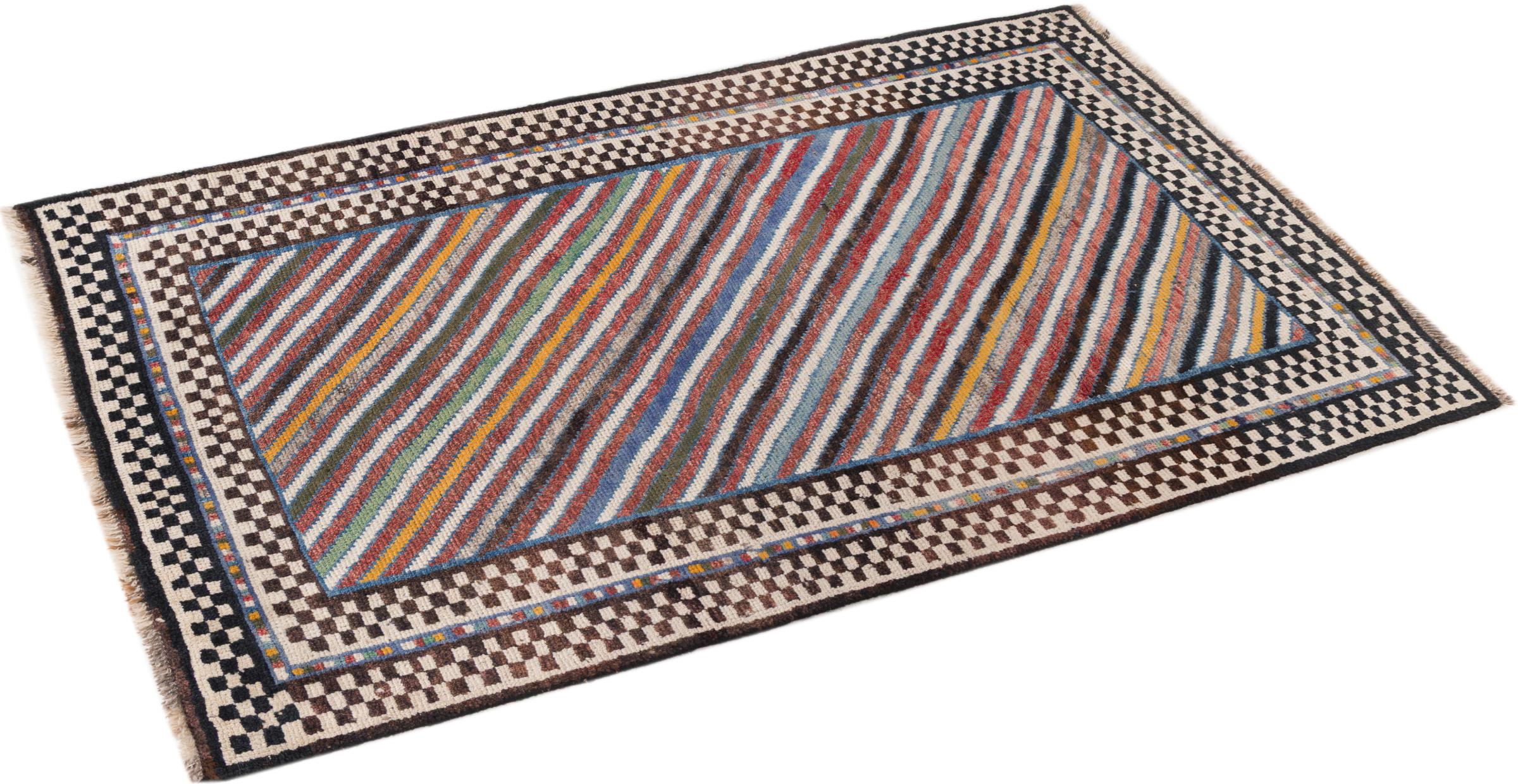 Tapijt ID: 298614002178 Grootte: 170x97 cm Dikte: ap. 15 mm Knoopdichtheid: 32 000 - 40 000 / m² Verwerking: Handgeknoopte Pool: Hand gesponnen wol Schering: Wol Oorsprong: Perzië / Iran Leeftijd: Oud/Semi antiek, boven 50 jaar Gewicht: ap. 7 kg Ook wel bekend als Gabbe, Ghabbeh Op voorraad: Uniek - Nog maar 1 op voorraad