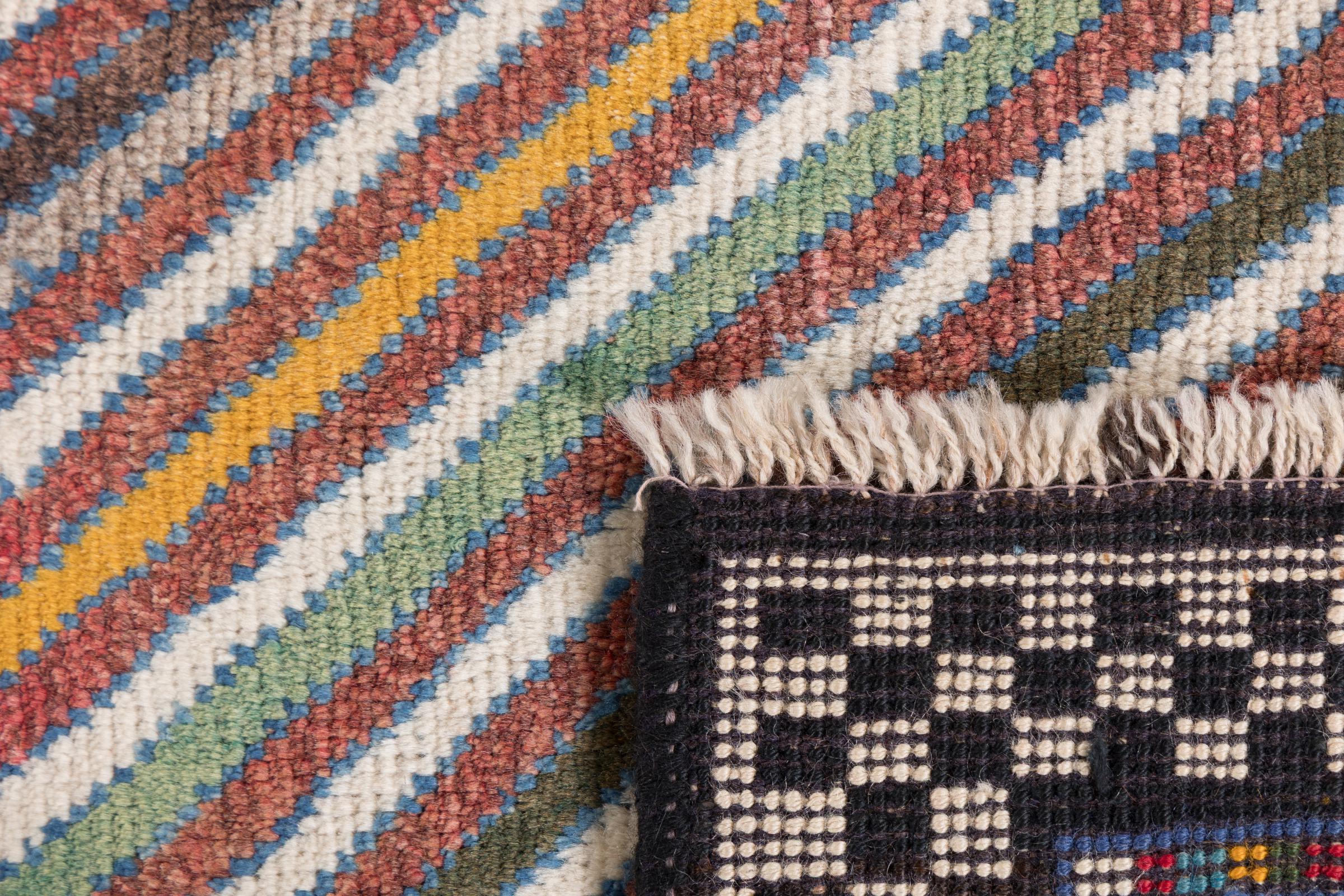 Deze handgeknoopte Perzische Gabbeh valt meteen op door zijn hoogwaardige en zeer robuuste pool. Het werd met de hand geknoopt door Ghashghai-nomaden in de provincie Fars in het zuiden van Perzië van de beste lokale schapenwol. Voor het verven van de wol worden natuurlijke plantaardige kleurstoffen gebruikt. Hierdoor is het een zeer waardevolle toevoeging aan de kinderkamer. Deze Perzische Gabbeh vertegenwoordigt de hoogste klasse Gabbeh-tapijten.