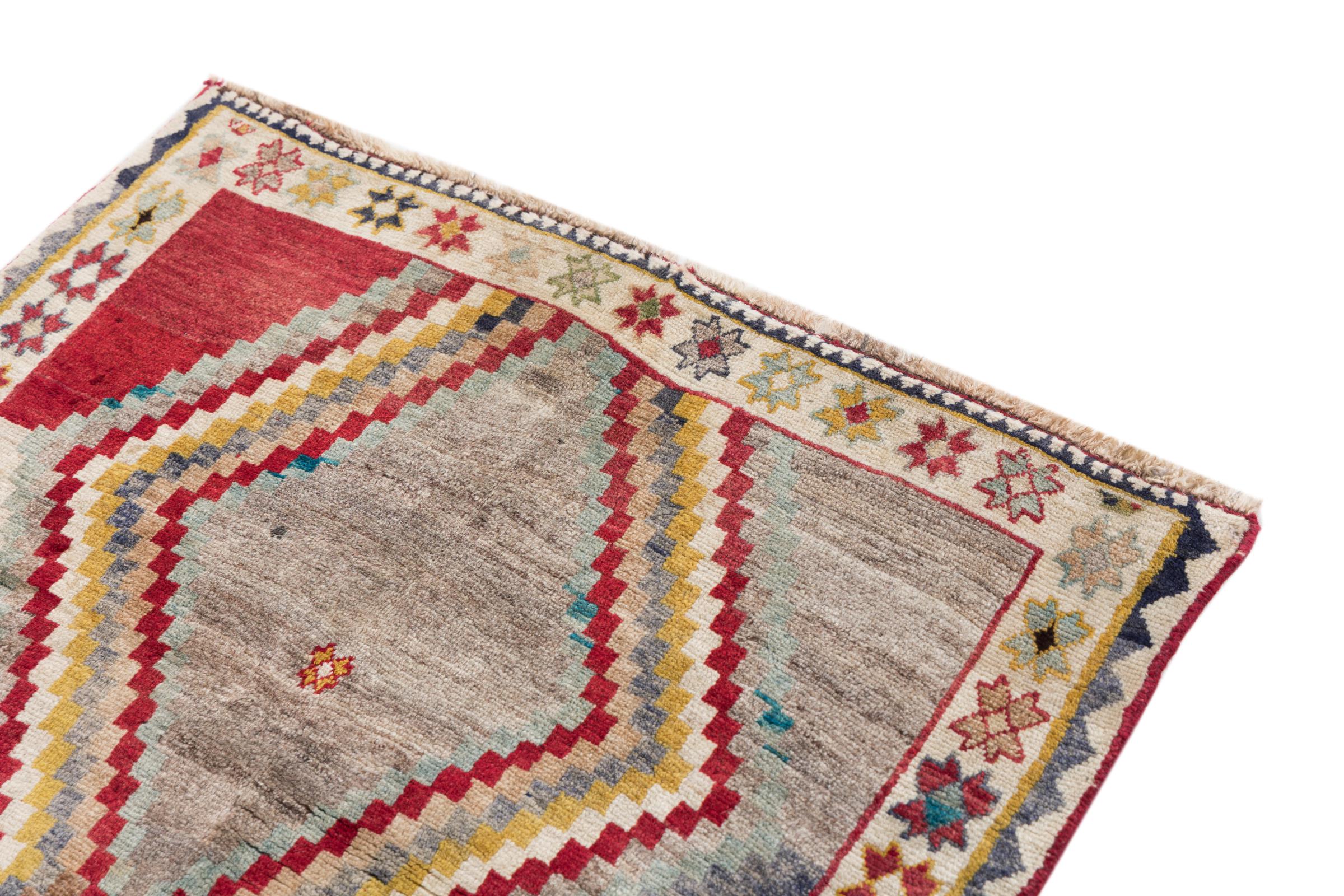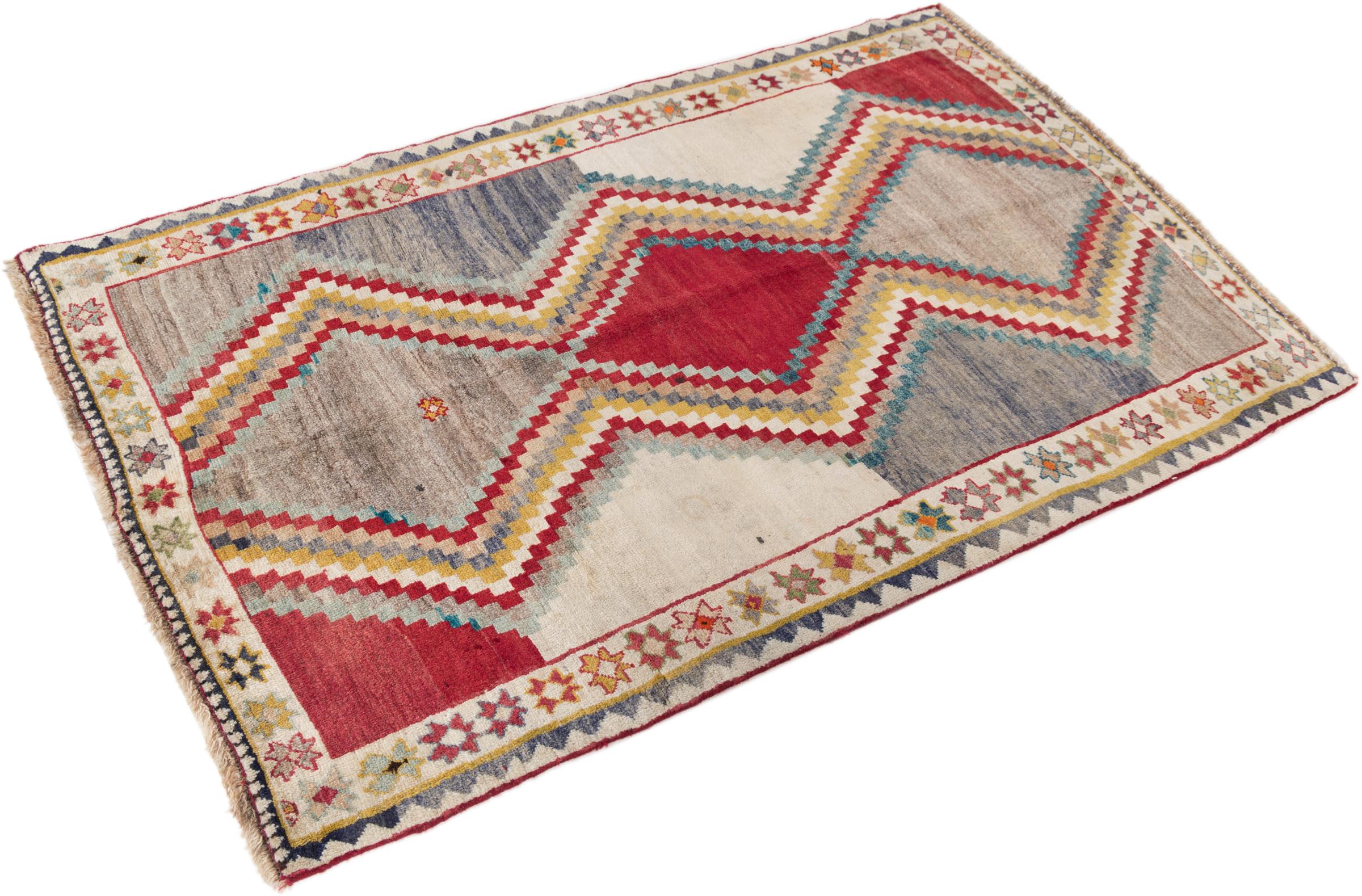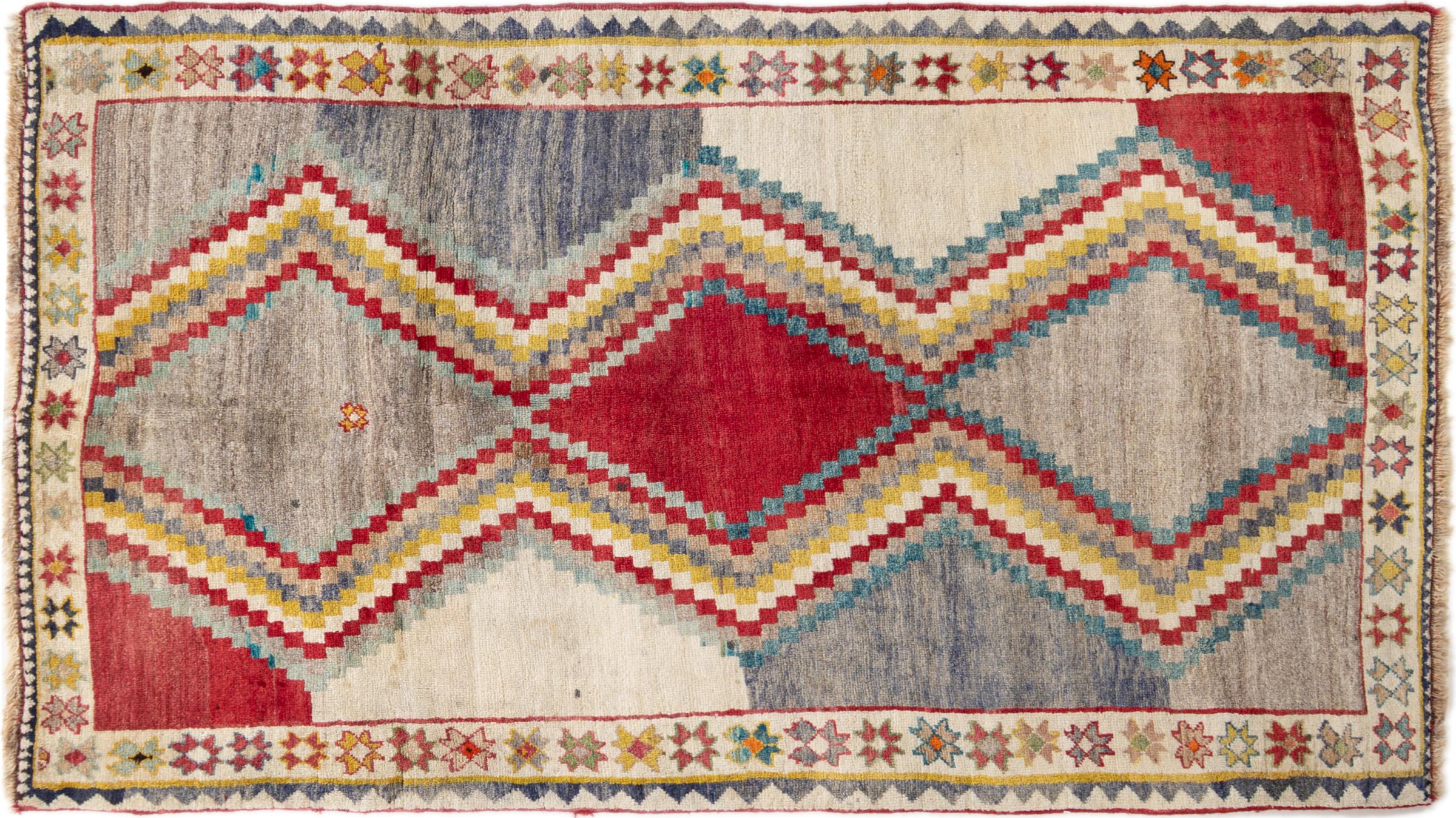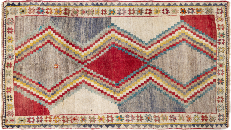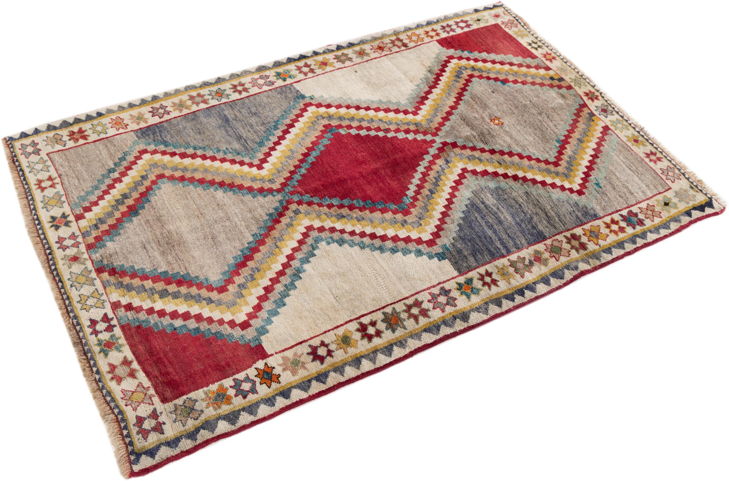 Tapijt ID: 295552007652 Grootte: 182x125 cm Dikte: ap. 15 mm Knoopdichtheid: 128 000 - 160 000 / m² Verwerking: Handgeknoopte Pool: Hand gesponnen wol Schering: Wol Oorsprong: Perzië / Iran Leeftijd: Oud/Semi antiek, boven 50 jaar Gewicht: ap. 9 kg Ook wel bekend als Gabbe, Ghabbeh Op voorraad: Uniek - Nog maar 1 op voorraad