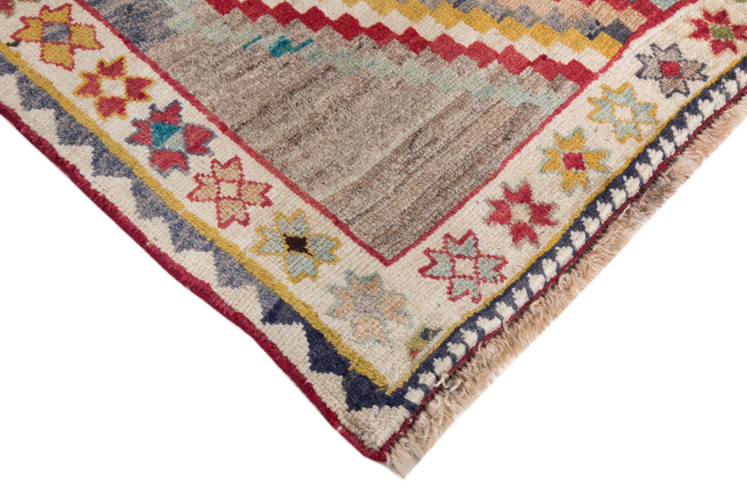 Deze handgeknoopte Perzische Gabbeh valt meteen op door zijn hoogwaardige en zeer robuuste pool. Het werd met de hand geknoopt door Ghashghai-nomaden in de provincie Fars in het zuiden van Perzië van de beste lokale schapenwol. Voor het verven van de wol worden natuurlijke plantaardige kleurstoffen gebruikt. Hierdoor is het een zeer waardevolle toevoeging aan de kinderkamer. Deze Perzische Gabbeh vertegenwoordigt de hoogste klasse Gabbeh-tapijten.