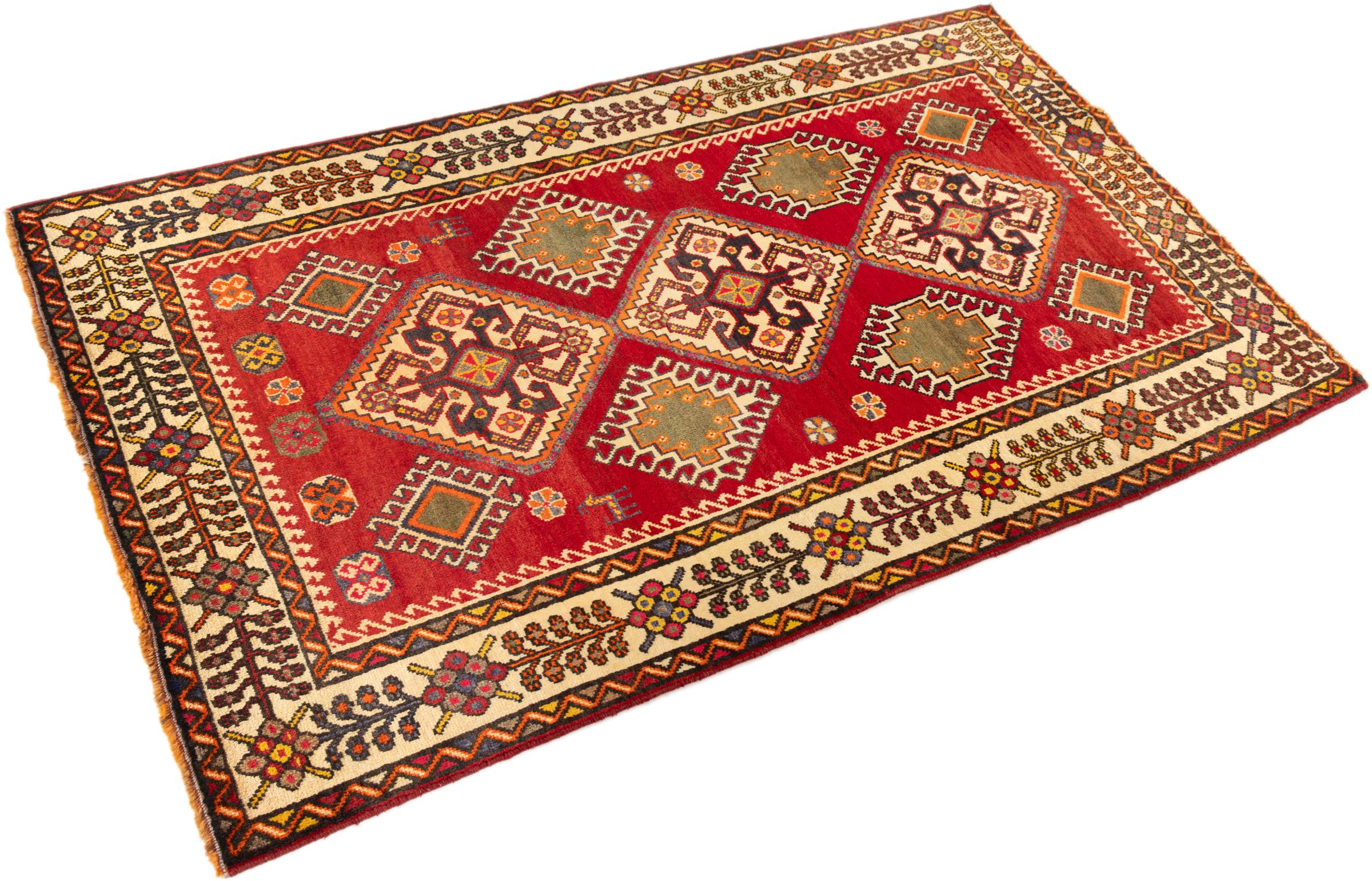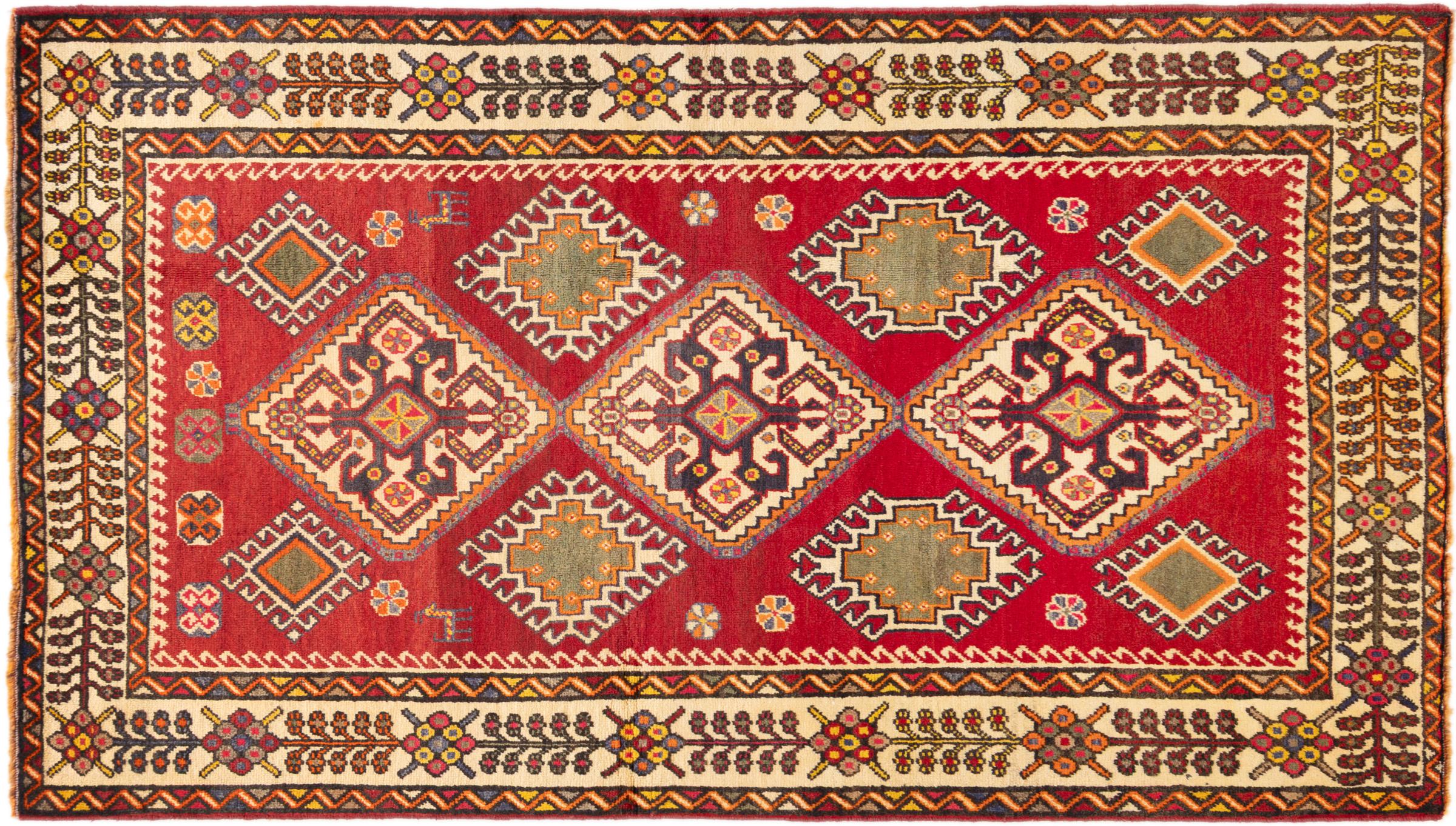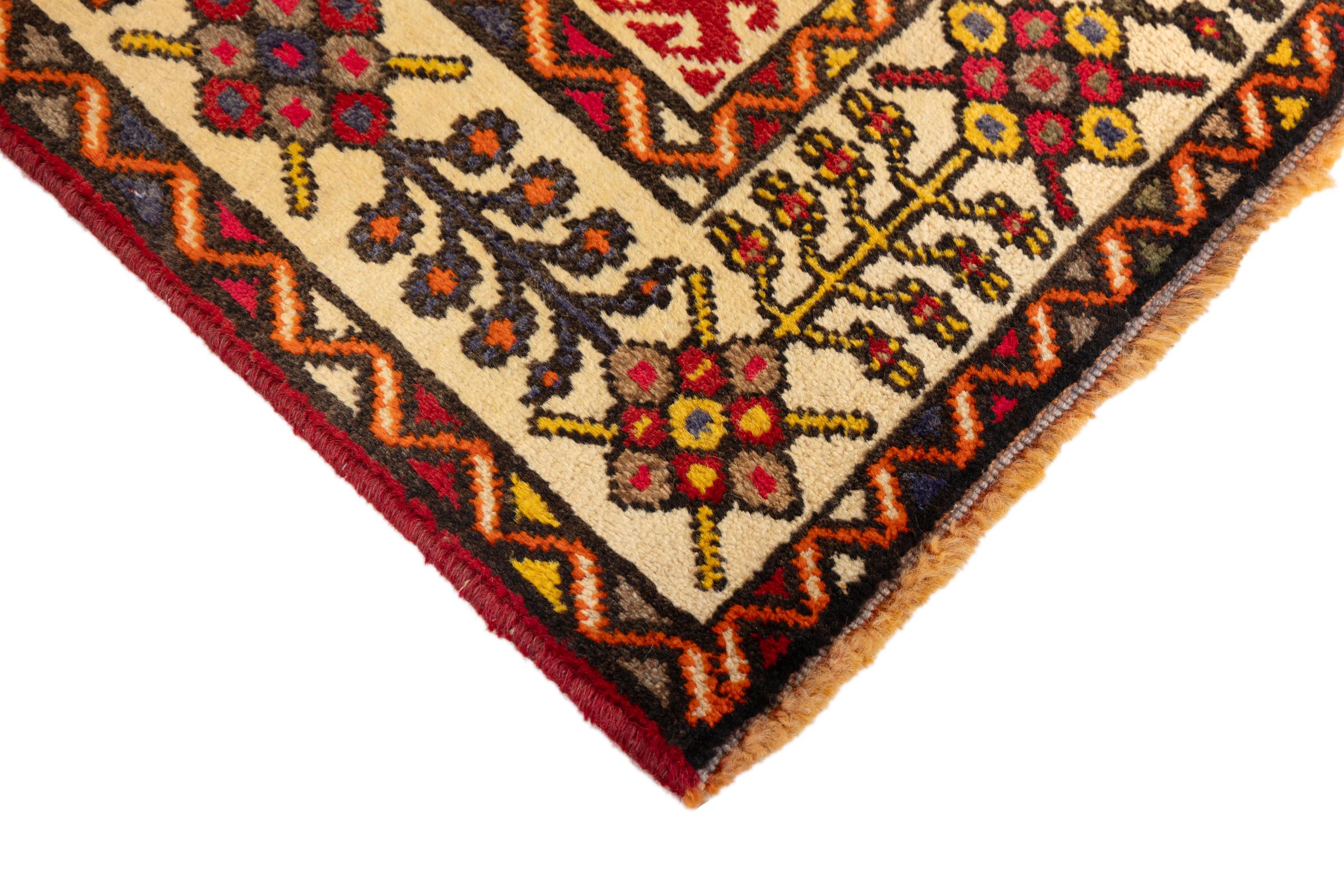 Tapijt ID: 295185007795 Grootte: 202x112 cm Dikte: ap. 15 mm Knoopdichtheid: 72 000 - 90 000 / m² Verwerking: Handgeknoopte Pool: Hand gesponnen wol Schering: Wol Oorsprong: Perzië / Iran Leeftijd: Oud, 30-50 jaar Gewicht: ap. 7 kg Ook wel bekend als Gabbe, Ghabbeh Op voorraad: Uniek - Nog maar 1 op voorraad