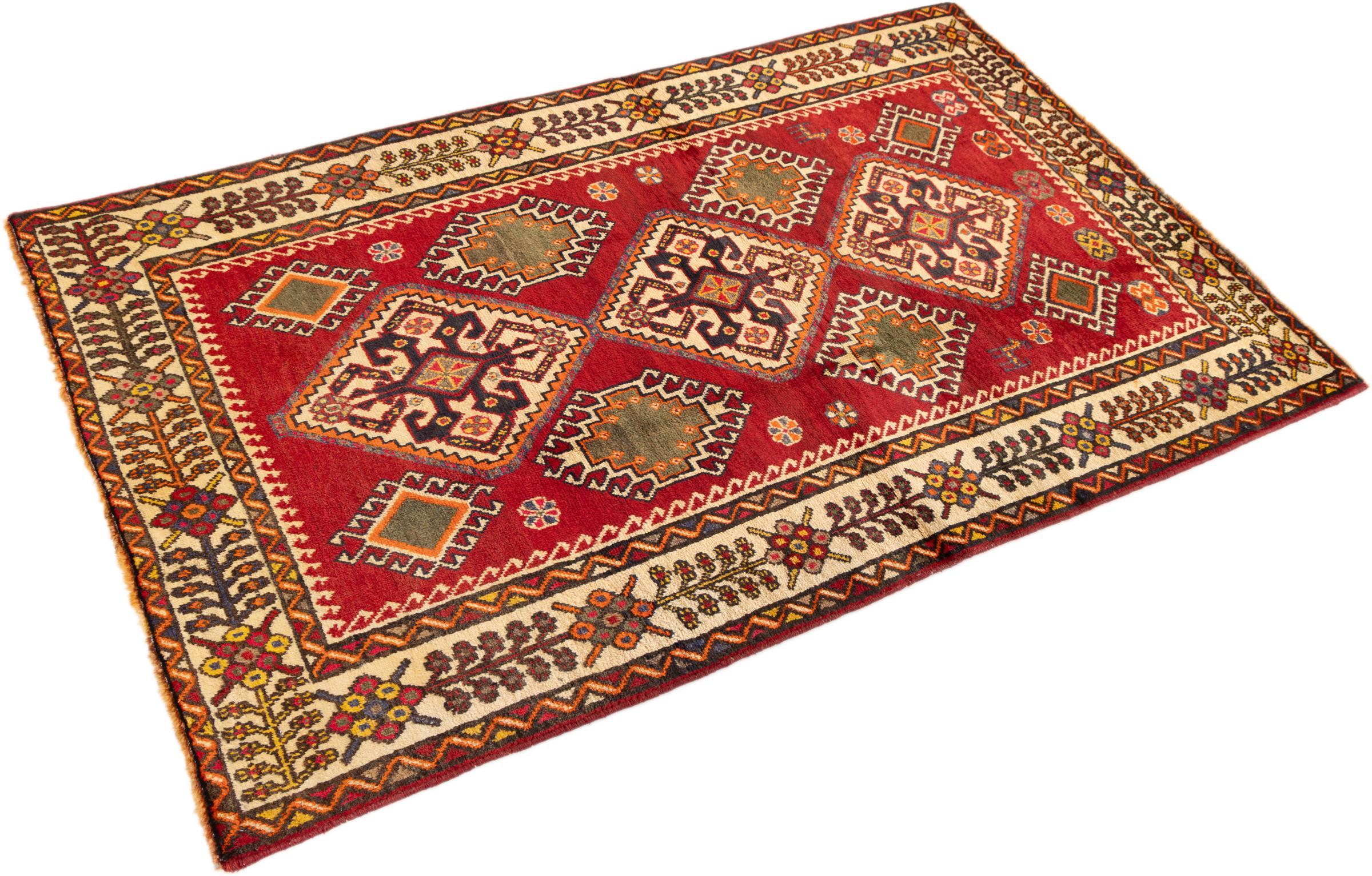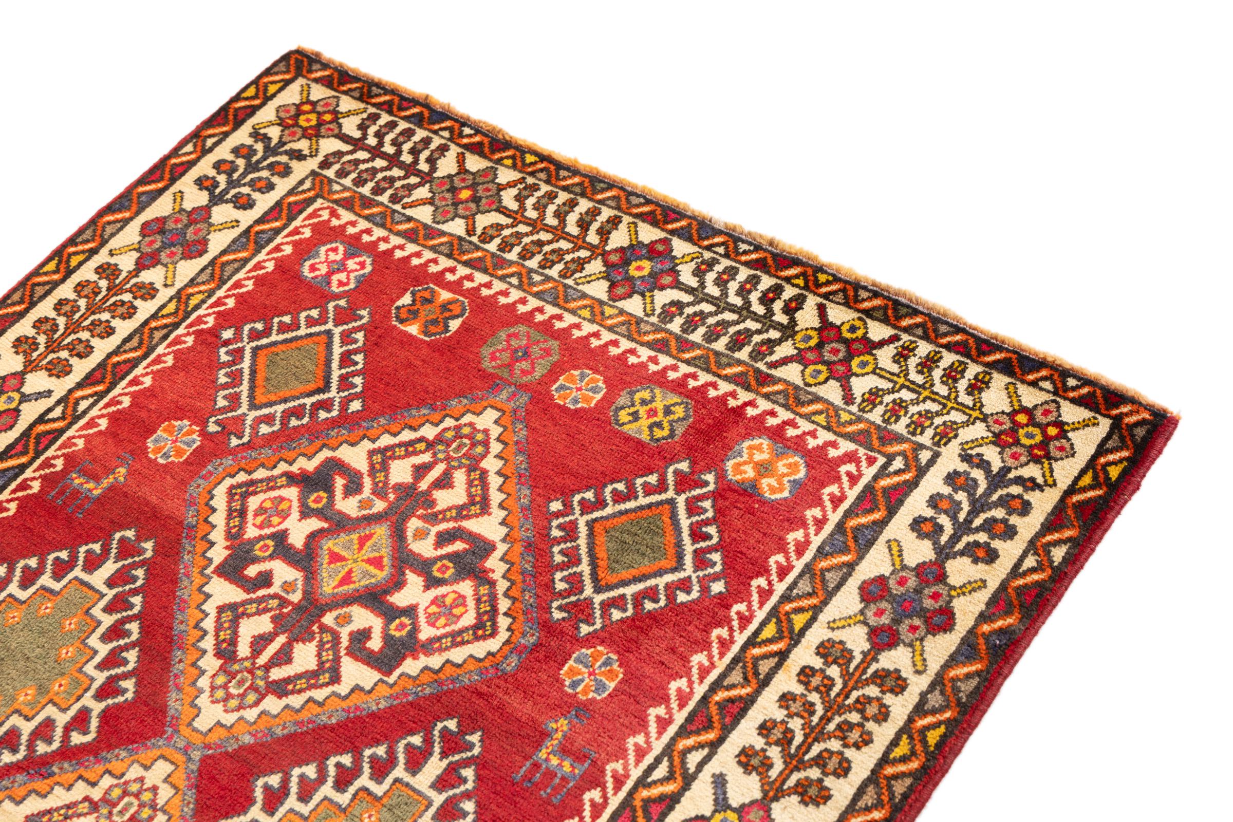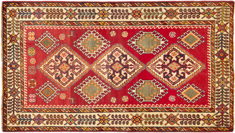 Tapijt ID: 295185007795 Grootte: 202x112 cm Dikte: ap. 15 mm Knoopdichtheid: 72 000 - 90 000 / m² Verwerking: Handgeknoopte Pool: Hand gesponnen wol Schering: Wol Oorsprong: Perzië / Iran Leeftijd: Oud, 30-50 jaar Gewicht: ap. 7 kg Ook wel bekend als Gabbe, Ghabbeh Op voorraad: Uniek - Nog maar 1 op voorraad