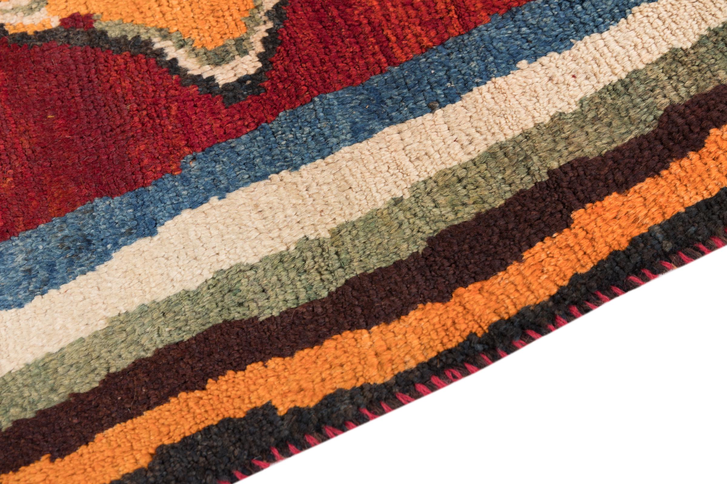 Deze handgeknoopte Perzische Gabbeh valt meteen op door zijn hoogwaardige en zeer robuuste pool. Het werd met de hand geknoopt door Ghashghai-nomaden in de provincie Fars in het zuiden van Perzië van de beste lokale schapenwol. Voor het verven van de wol worden natuurlijke plantaardige kleurstoffen gebruikt. Hierdoor is het een zeer waardevolle toevoeging aan de kinderkamer. Deze Perzische Gabbeh vertegenwoordigt de hoogste klasse Gabbeh-tapijten.
