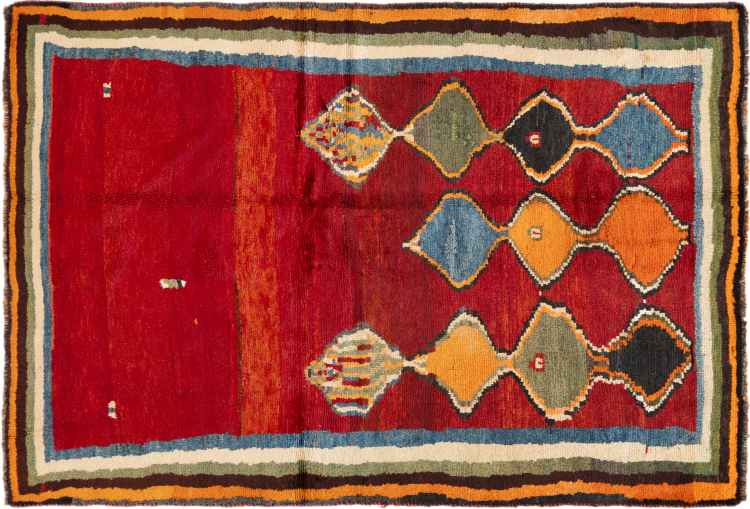 Tapijt ID: 295642007240 Grootte: 205x140 cm Dikte: ap. 15 mm Knoopdichtheid: 72 000 - 90 000 / m² Verwerking: Handgeknoopte Pool: Hand gesponnen wol Schering: Wol Oorsprong: Perzië / Iran Leeftijd: Oud/Semi antiek, boven 50 jaar Gewicht: ap. 11 kg Ook wel bekend als Gabbe, Ghabbeh Op voorraad: Uniek - Nog maar 1 op voorraad