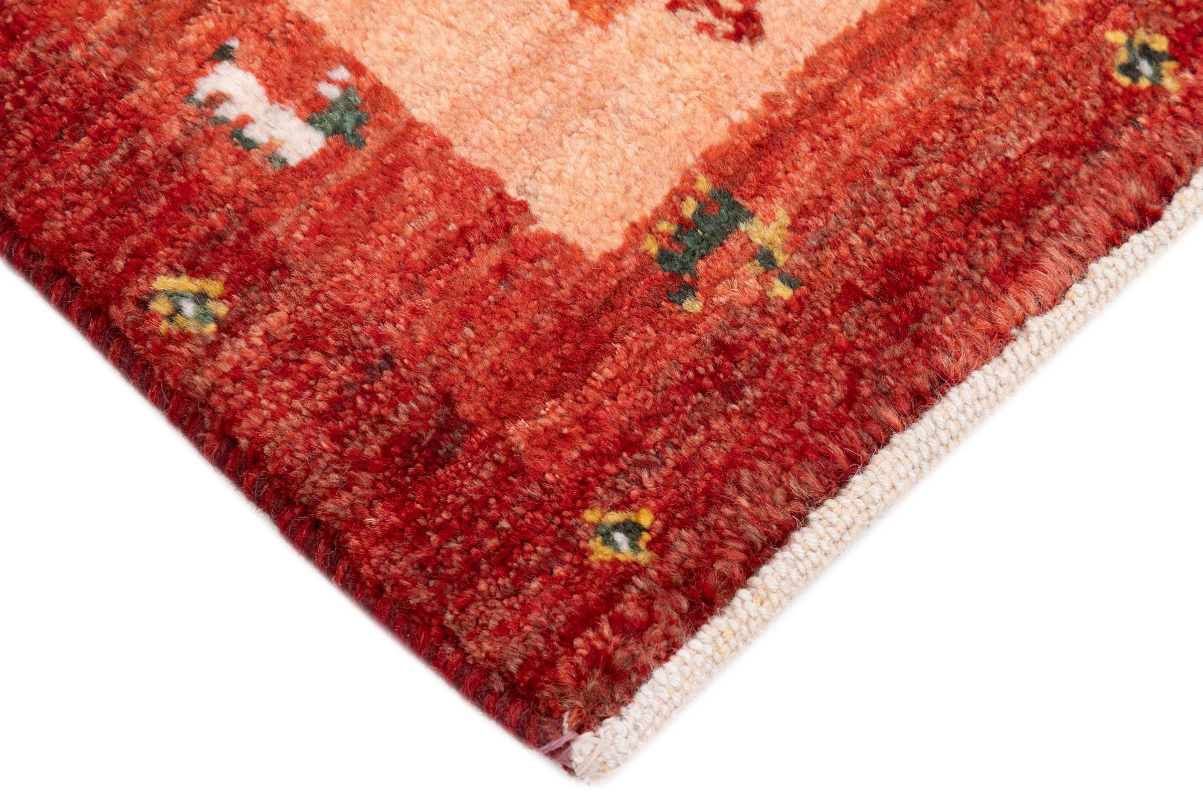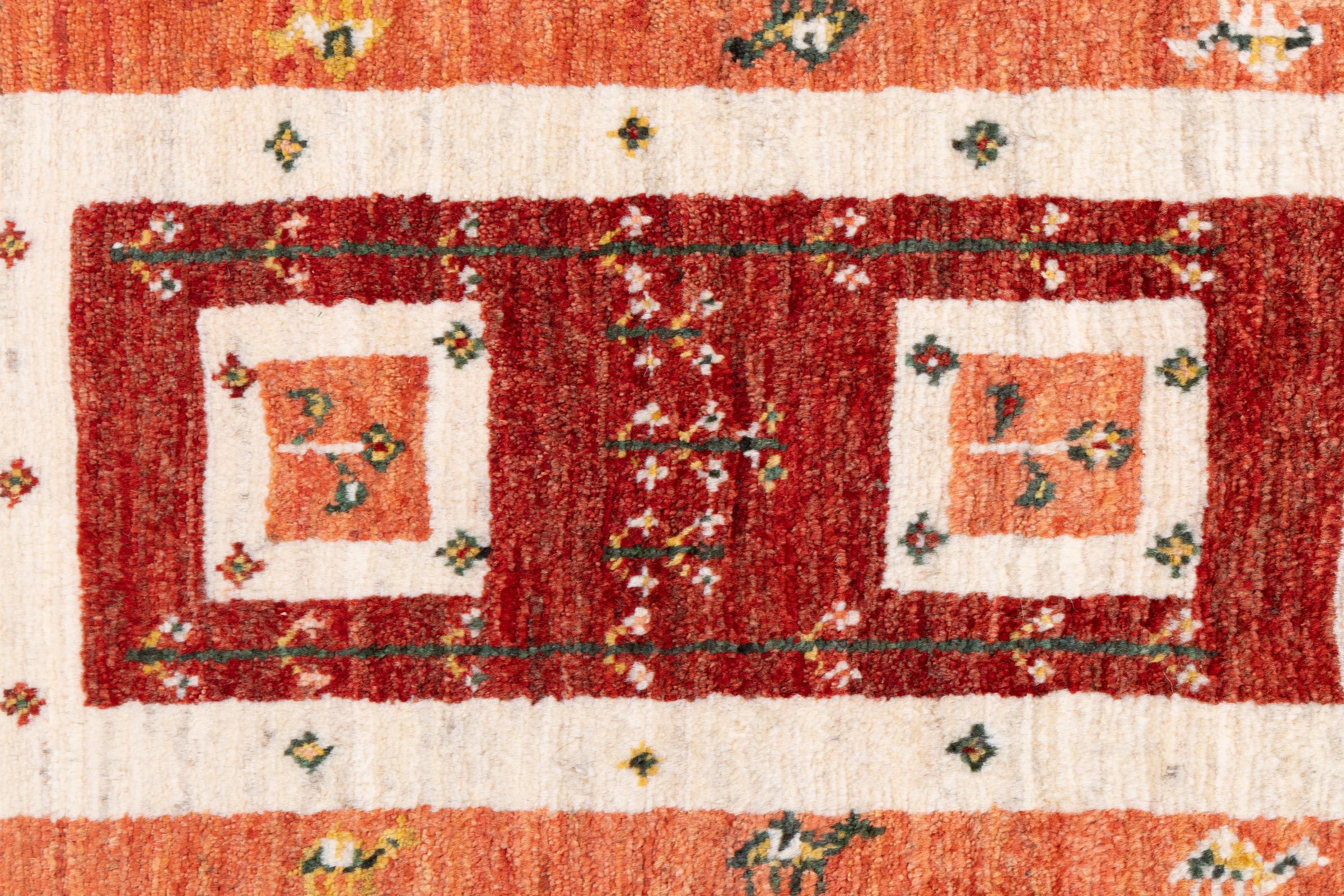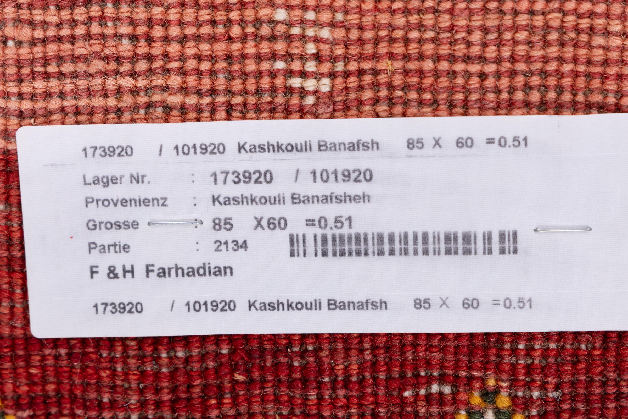 Tapijt ID: 287603004380701 Grootte: 86x59 cm Dikte: ap. 15 mm Knoopdichtheid: 128 000 - 160 000 / m² Verwerking: Handgeknoopte Pool: Hand gesponnen wol Schering: Wol Oorsprong: Perzië / Iran Leeftijd: Nieuw Gewicht: ap. 2 kg Ook wel bekend als Gabbe, Kashkuli Op voorraad: Uniek - Nog maar 1 op voorraad