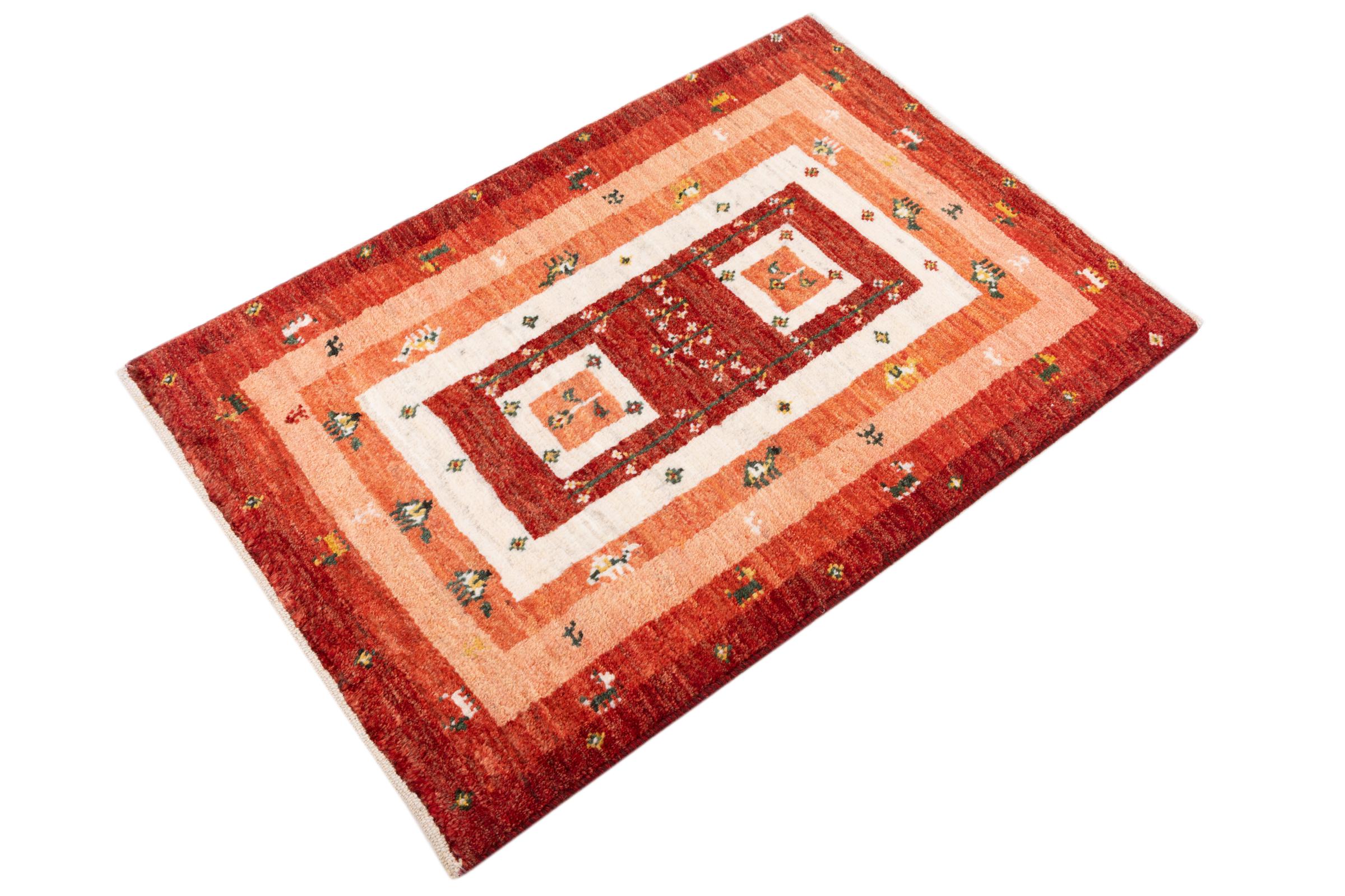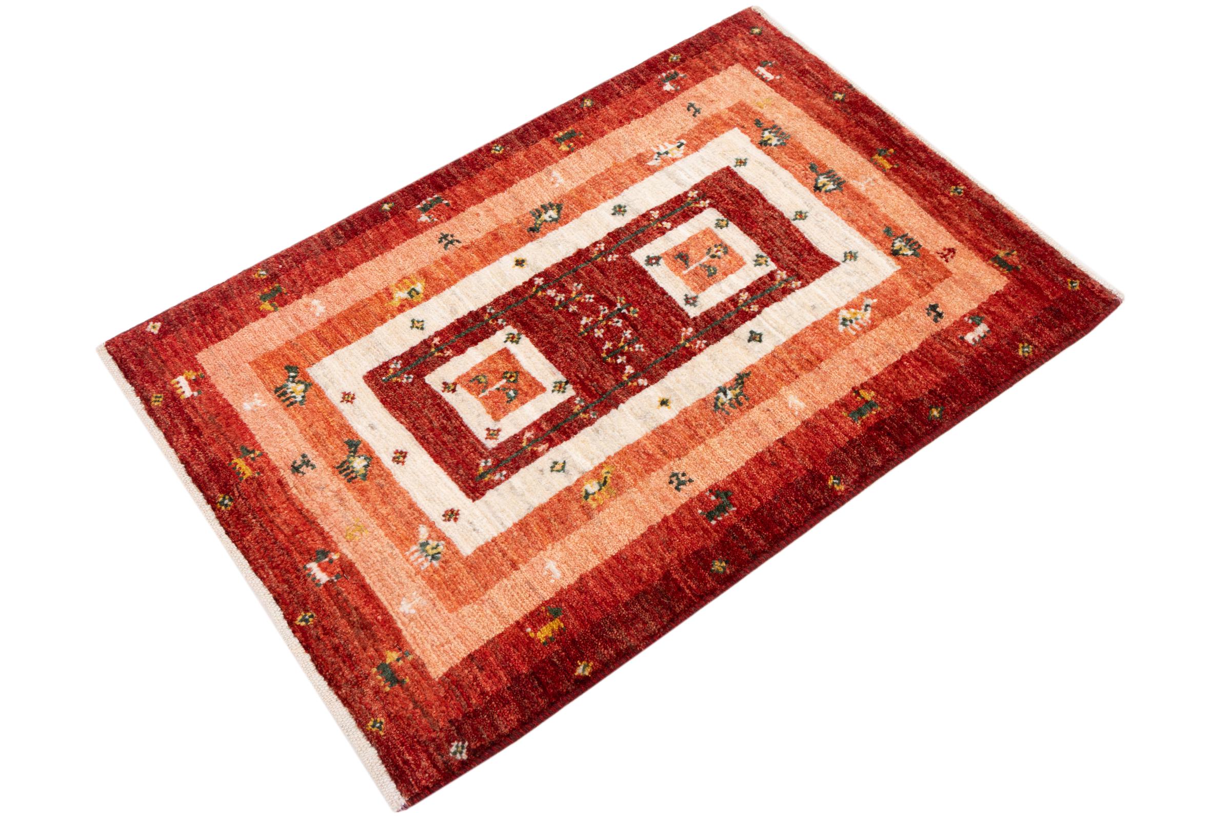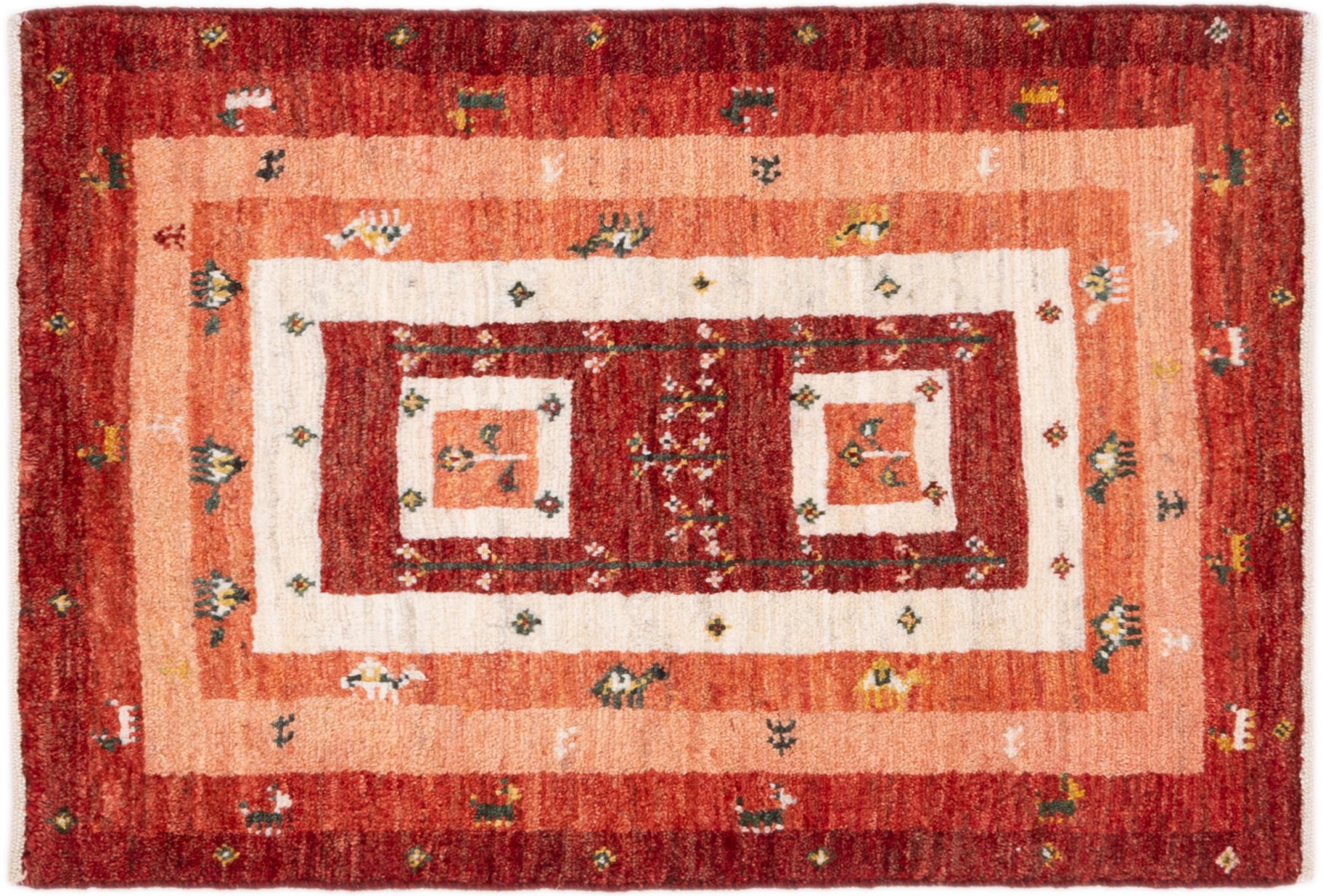Tapijt ID: 287603004380701 Grootte: 86x59 cm Dikte: ap. 15 mm Knoopdichtheid: 128 000 - 160 000 / m² Verwerking: Handgeknoopte Pool: Hand gesponnen wol Schering: Wol Oorsprong: Perzië / Iran Leeftijd: Nieuw Gewicht: ap. 2 kg Ook wel bekend als Gabbe, Kashkuli Op voorraad: Uniek - Nog maar 1 op voorraad