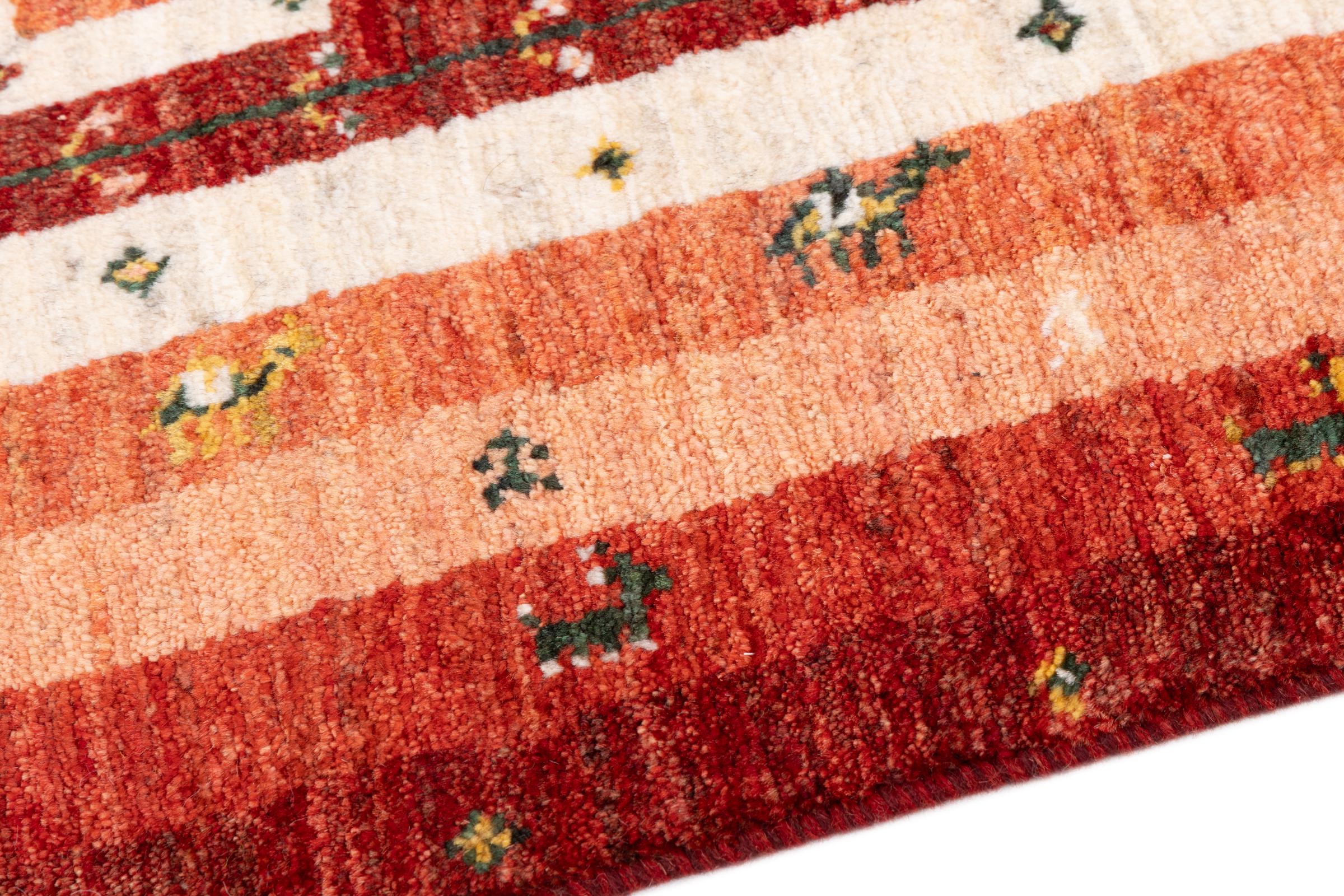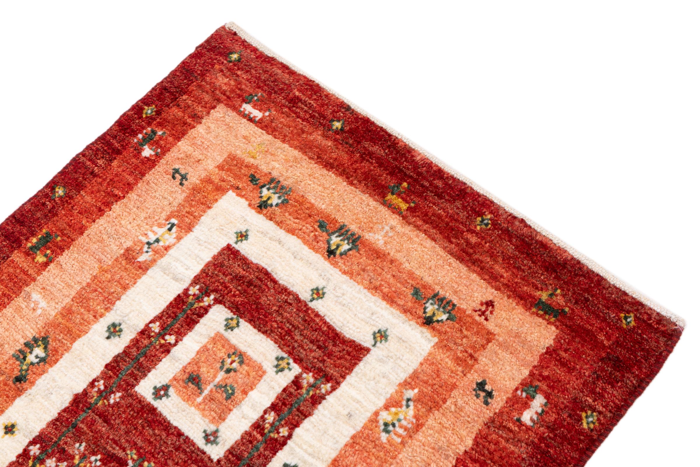 Dit prachtige tapijt is een Perzisch Gabbeh-tapijt en behoort daarom tot de hoogste kwaliteit Gabbeh-tapijten. De tapijten worden geknoopt door nomaden of semi-nomaden in Iran volgens traditioneel vakmanschap. De eenvoudige motieven en patronen zijn vooral geïnspireerd op de directe omgeving van de nomaden. Zo zijn er bijvoorbeeld kamelen, bomen of struiken te vinden op de traditionele tapijten. De Perzische Gabbeh-tapijten zijn gemaakt van wol van lokaal opgefokte kuddes schapen. De wol wordt dus meestal nog met de hand gesponnen. Elk van deze oosterse tapijten belichaamt dus een uniek karakter van de eeuwenoude cultuur.
