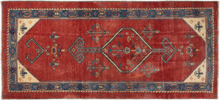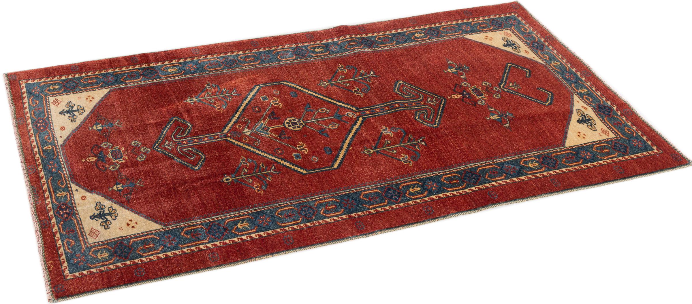 Tapijt ID: 298598008490 Grootte: 191x86 cm Dikte: ap. 12 mm Knoopdichtheid: 160 000 - 200 000 / m² Verwerking: Handgeknoopte Pool: Hand gesponnen wol Schering: Wol Oorsprong: Perzië / Iran Leeftijd: Nieuw Gewicht: ap. 6 kg Op voorraad: Uniek - Nog maar 1 op voorraad