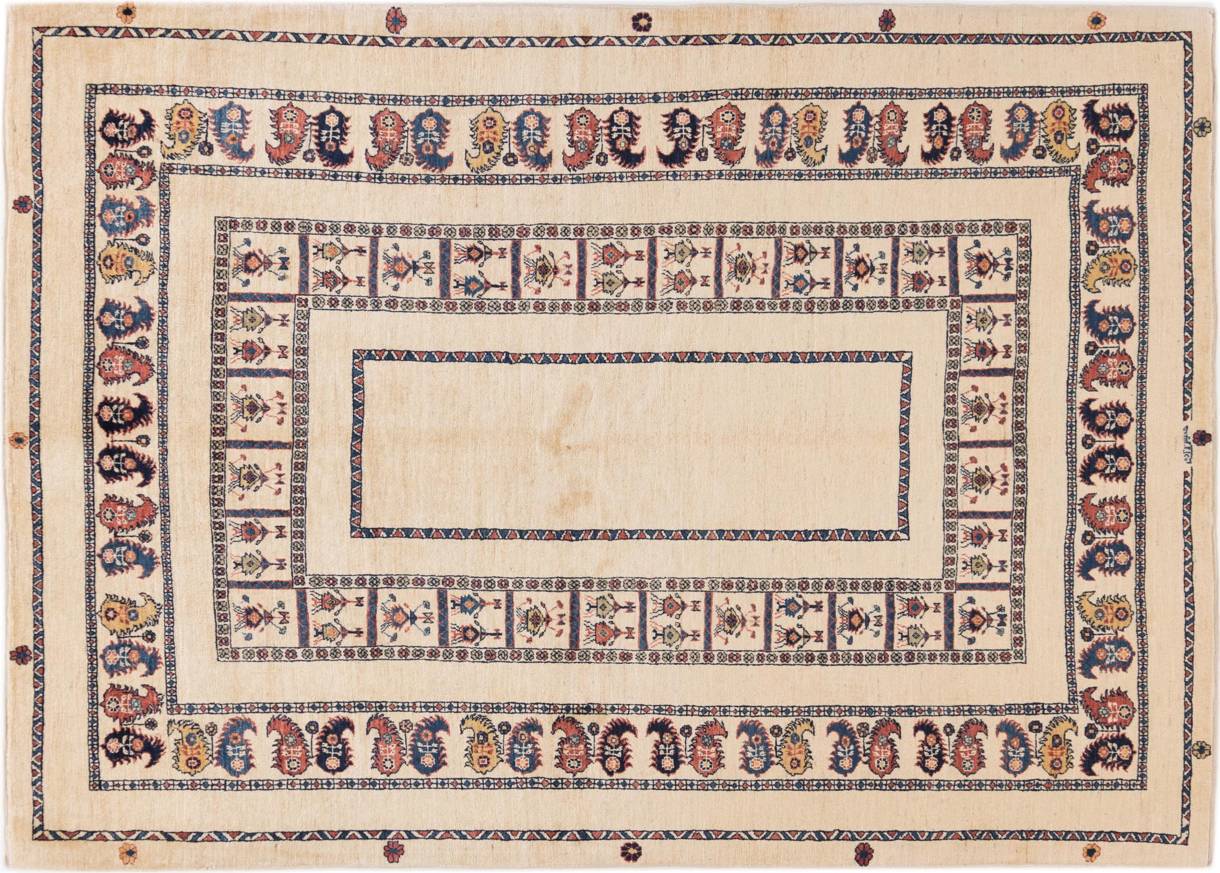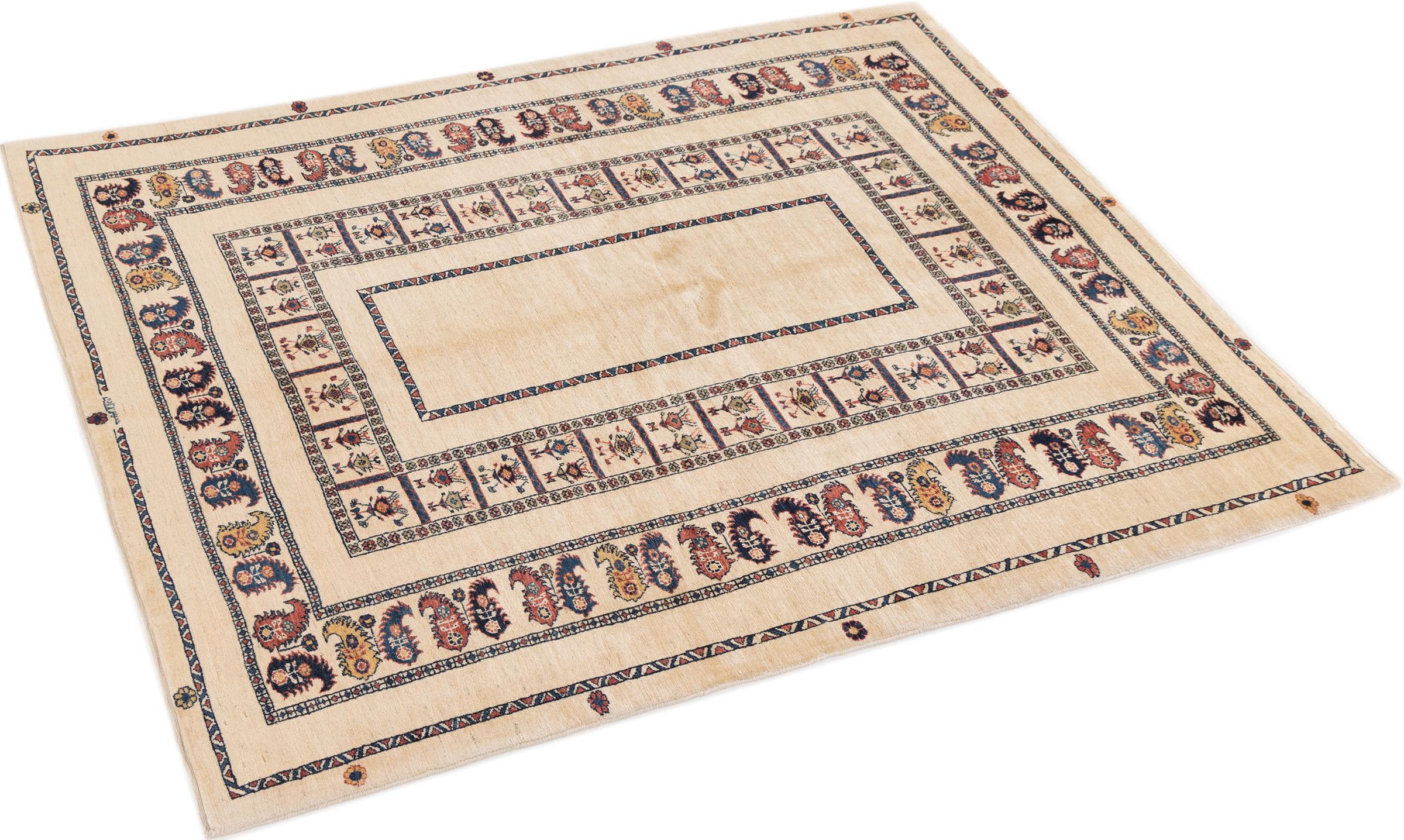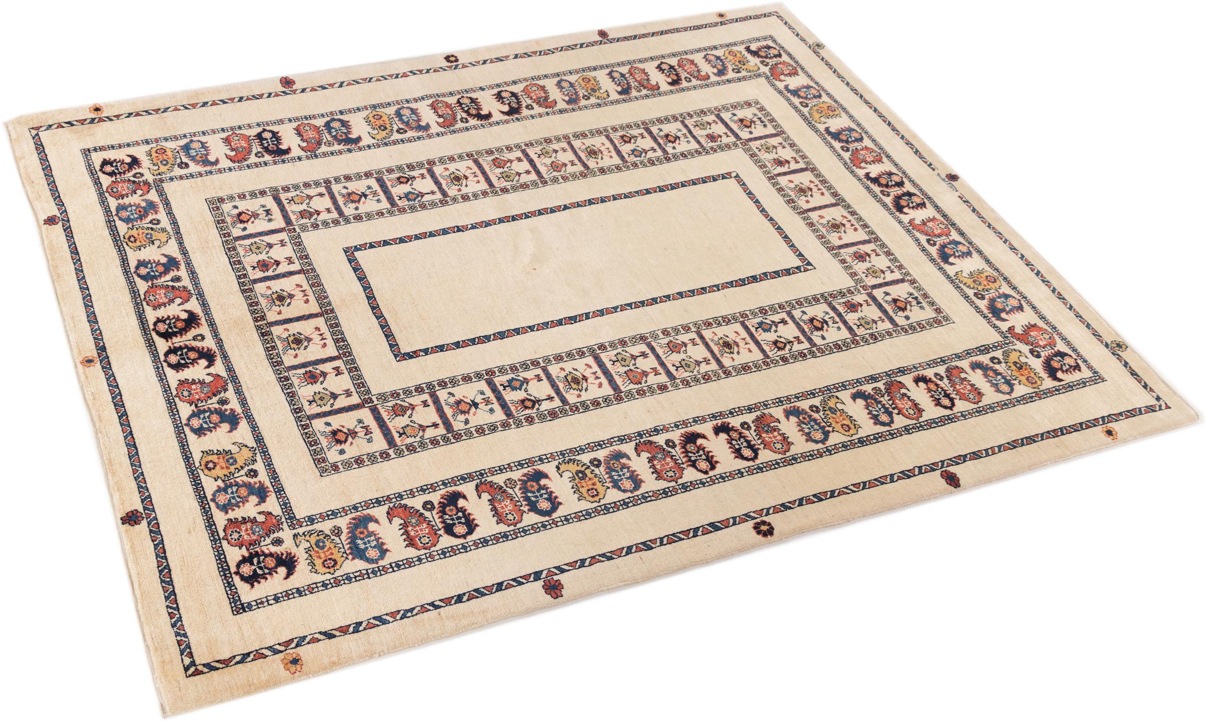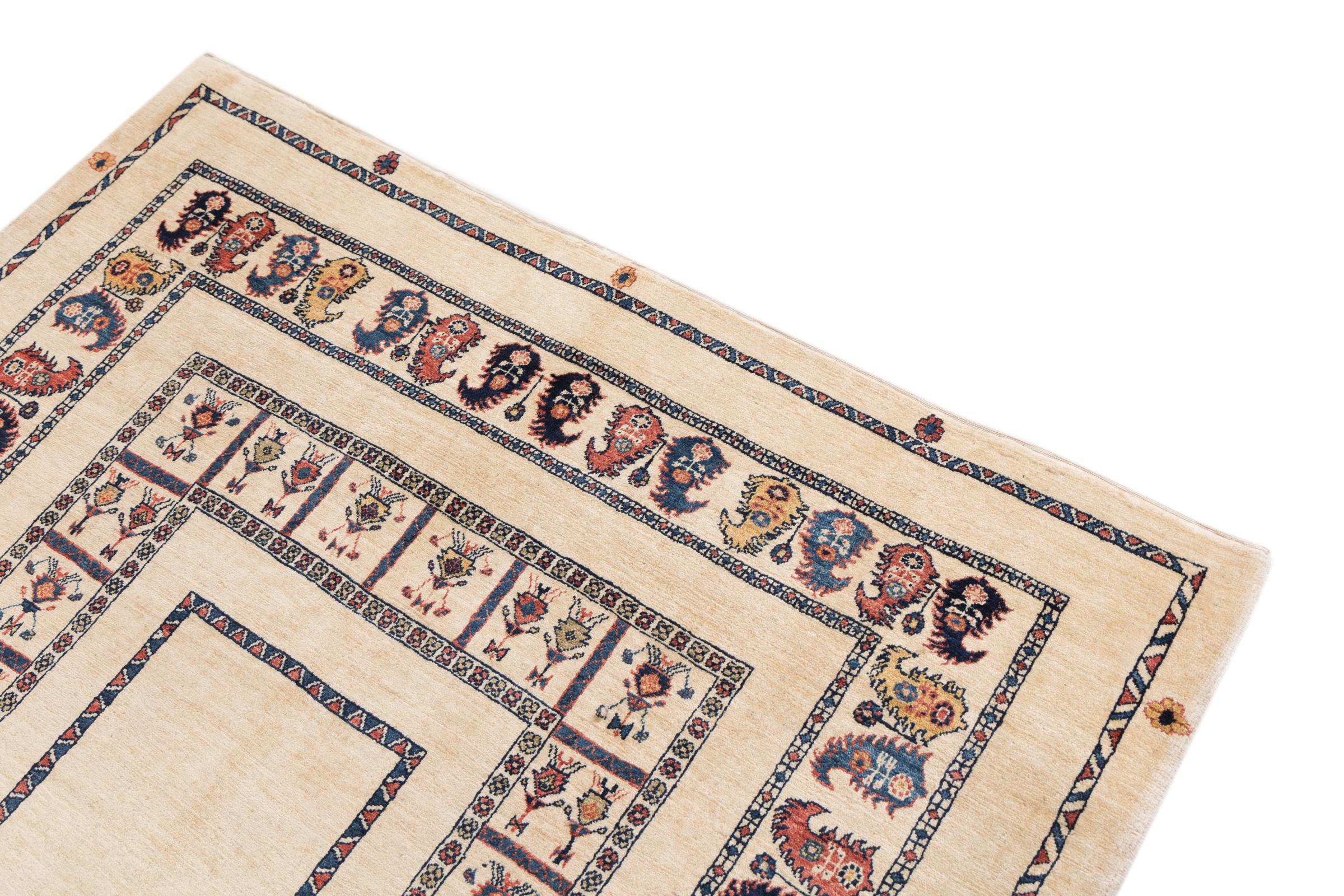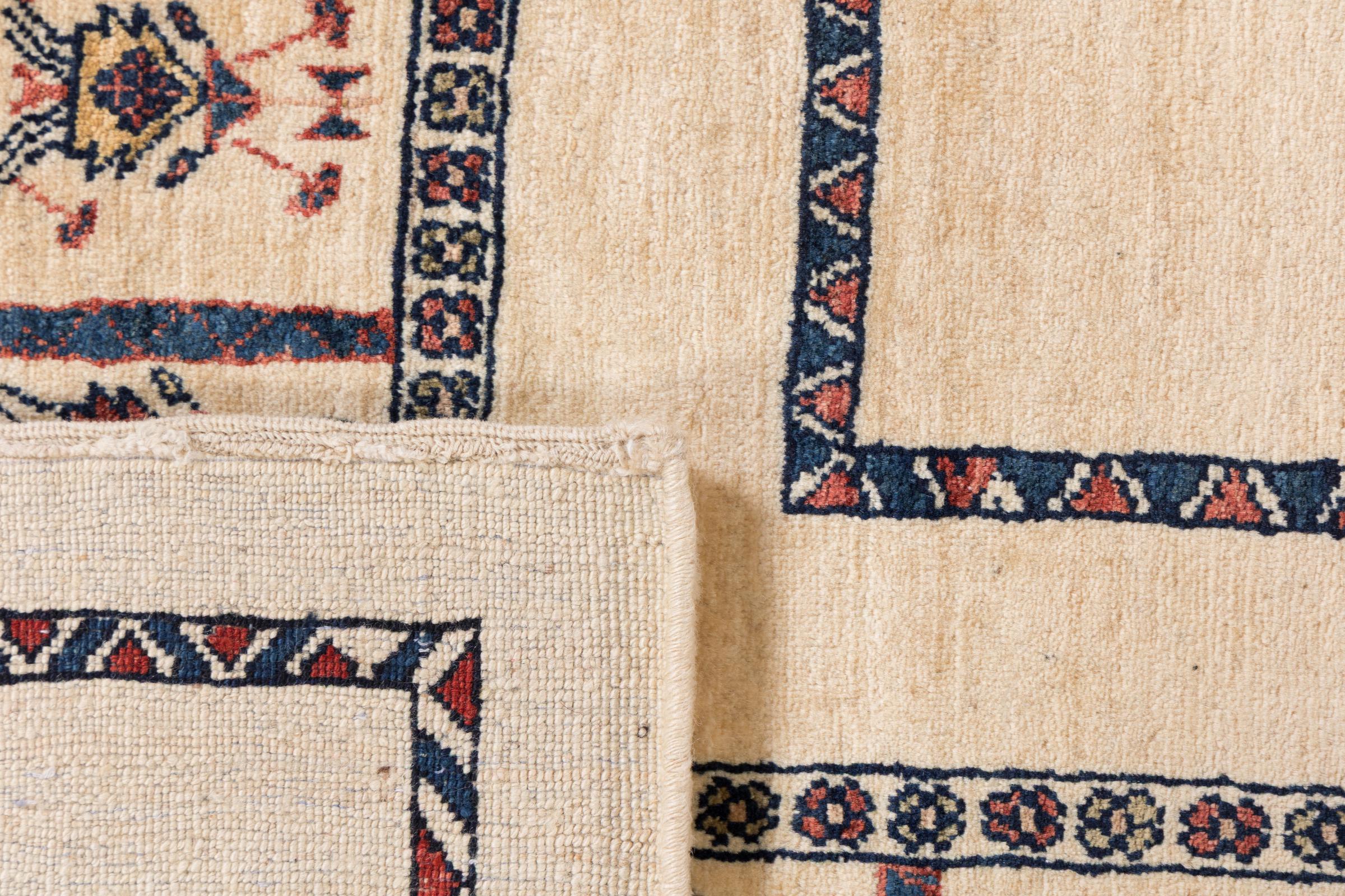 Een verfijning van de al bekende Gabbeh-tapijten: Dit is deze Perzische Gabbeh Loribaft. Het weet indruk te maken met zijn fijnere weefsel en prachtige ontwerp. Het werd door Loren in het zuiden van Perzië met de hand geknoopt van de beste handgesponnen schapenwol. Voor het verven van de wol worden uitsluitend pure plantaardige kleurstoffen gebruikt. Met dit vloerkleed haal je de hoogste standaard van een Gabbeh-tapijt in huis.