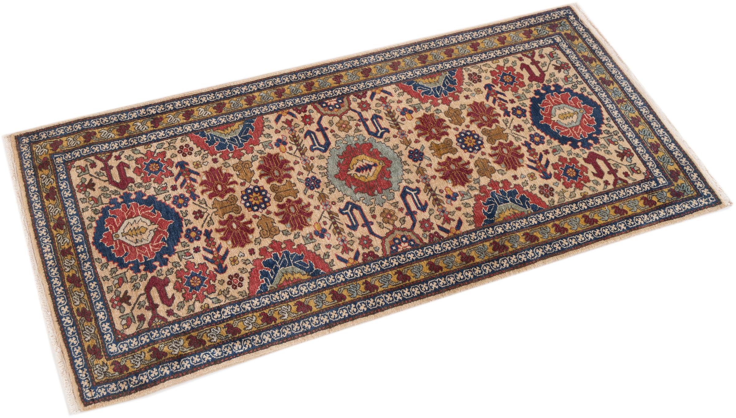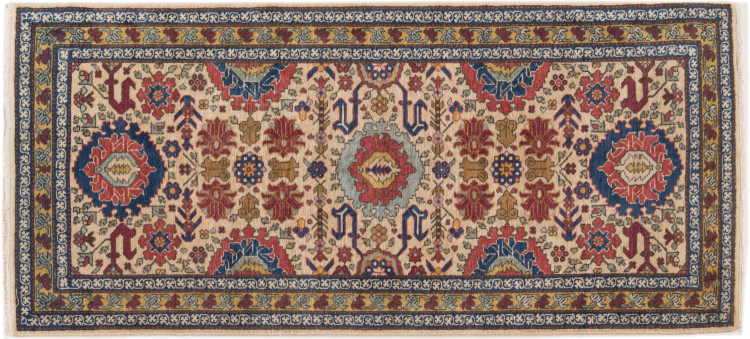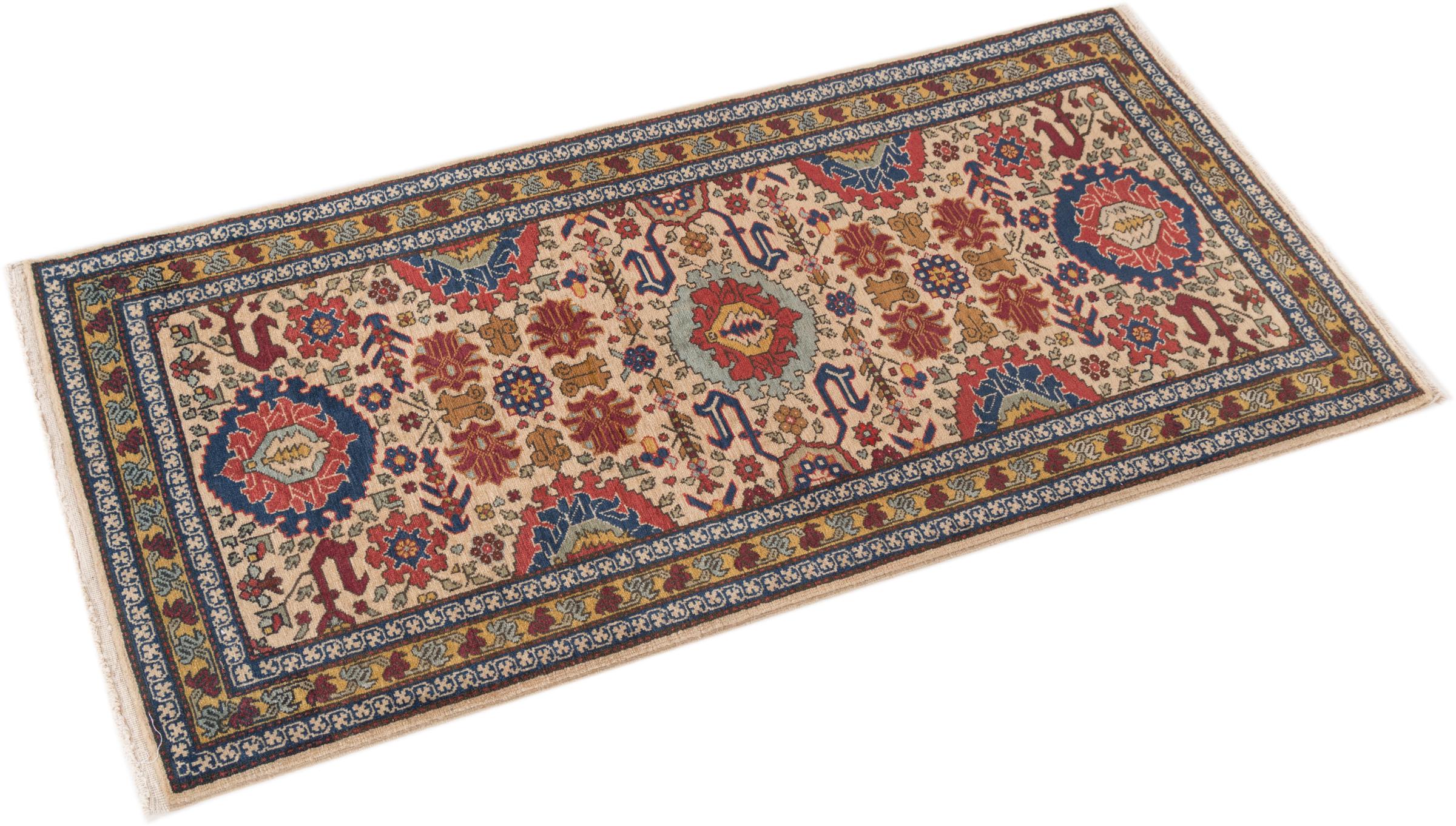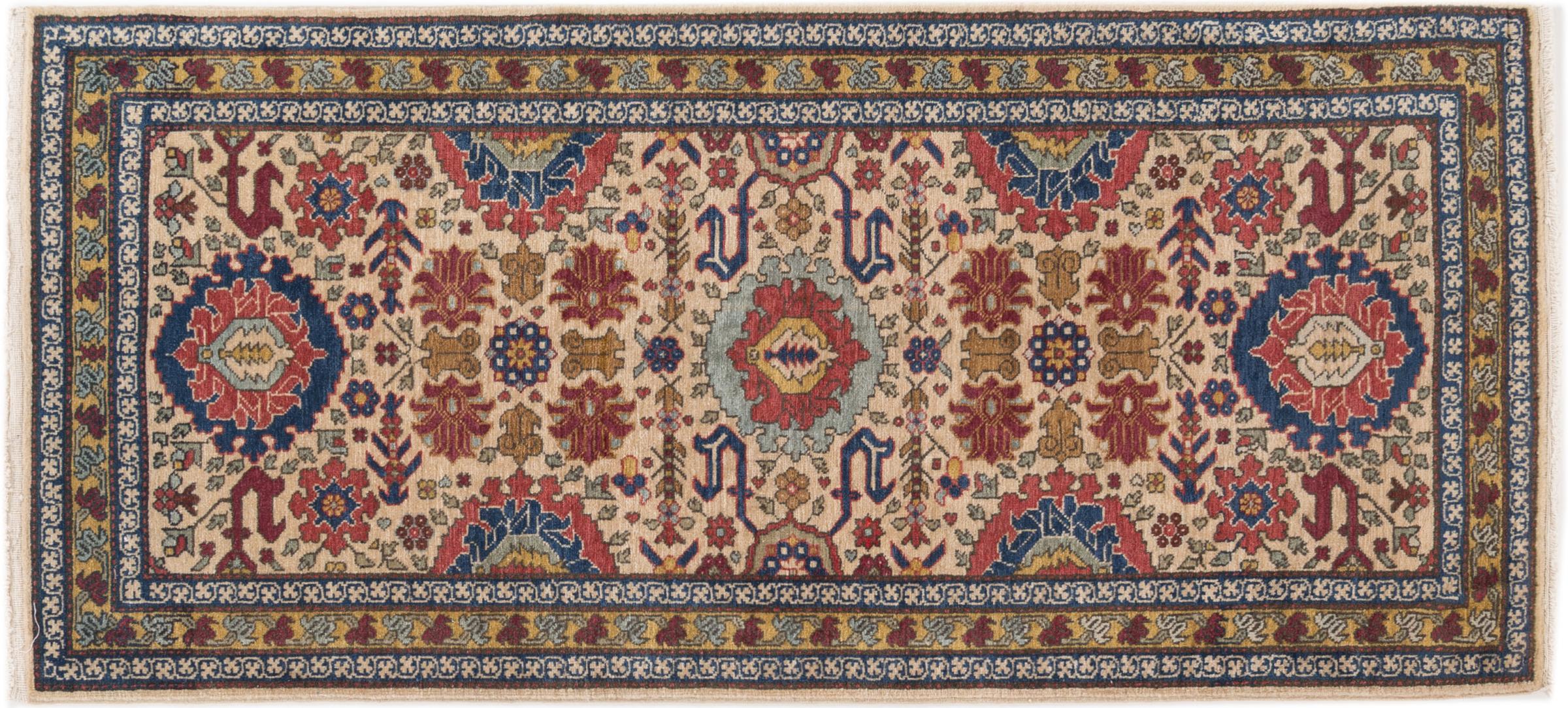 Tapijt ID: 298251002568 Grootte: 141x63 cm Dikte: ap. 12 mm Knoopdichtheid: 320 000 - 360 000 / m² Verwerking: Handgeknoopte Pool: Hand gesponnen wol Schering: Katoen Oorsprong: Perzië / Iran Leeftijd: Oud/Semi antiek, boven 50 jaar Gewicht: ap. 3 kg Op voorraad: Uniek - Nog maar 1 op voorraad