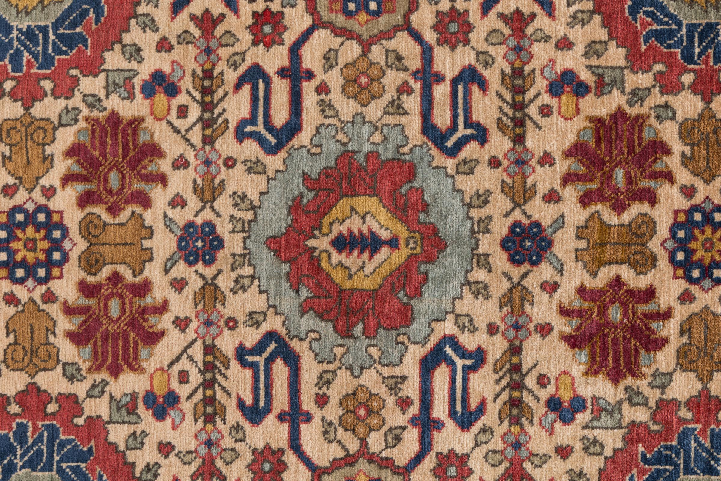 Dit tapijt is gemaakt van handgesponnen schapenwol van de hoogste kwaliteit. Vooral in Iran (voormalig Perzië), Afghanistan en Pakistan wordt de wol nog met de hand gesponnen voordat het eigenlijke knopen van het tapijt begint. Wol heeft zich door de eeuwen heen bewezen als een natuurlijk en extreem slijtvast materiaal. Het heeft onder andere vuilafstotende en warmte-isolerende eigenschappen. Tegelijkertijd is wol onvergelijkbaar zacht en heeft het een natuurlijke glans.