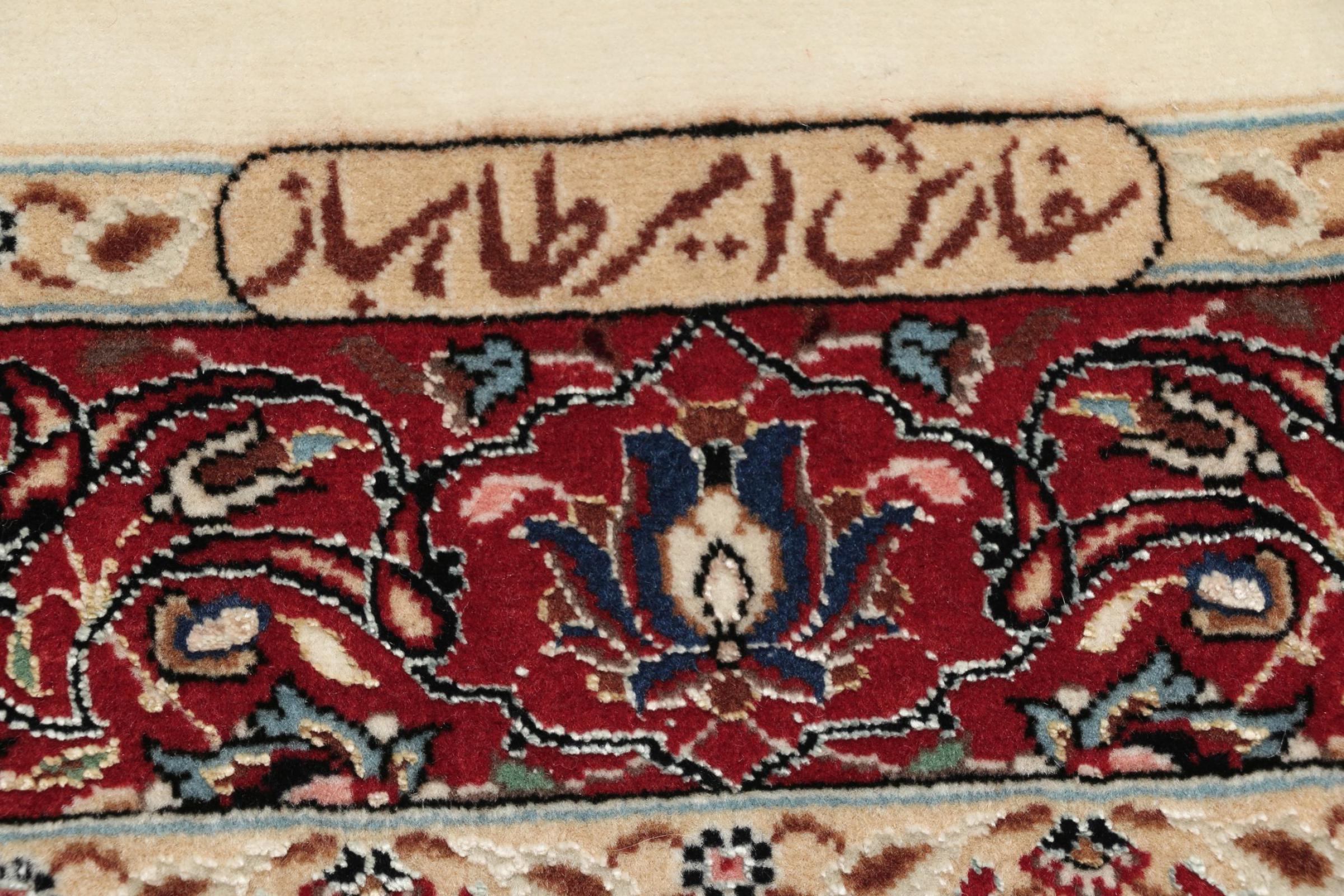 Deze Ghom kurk is het resultaat van het hoogste vakmanschap. De fijne pool en schering overtuigen zelfs tapijtverzamelaars. Dit Perzische tapijt is met de hand geknoopt in de heilige stad Ghom van de fijnste kurkwol. Kurkwol is bijzonder zacht en vettig omdat het uitsluitend van de nek van het schaap wordt geschoren. Een Perzisch tapijt kan bijna niet mooier en zachter zijn. Zo'n hoogtepunt heeft bij ons zijn eigen categorie verdiend.