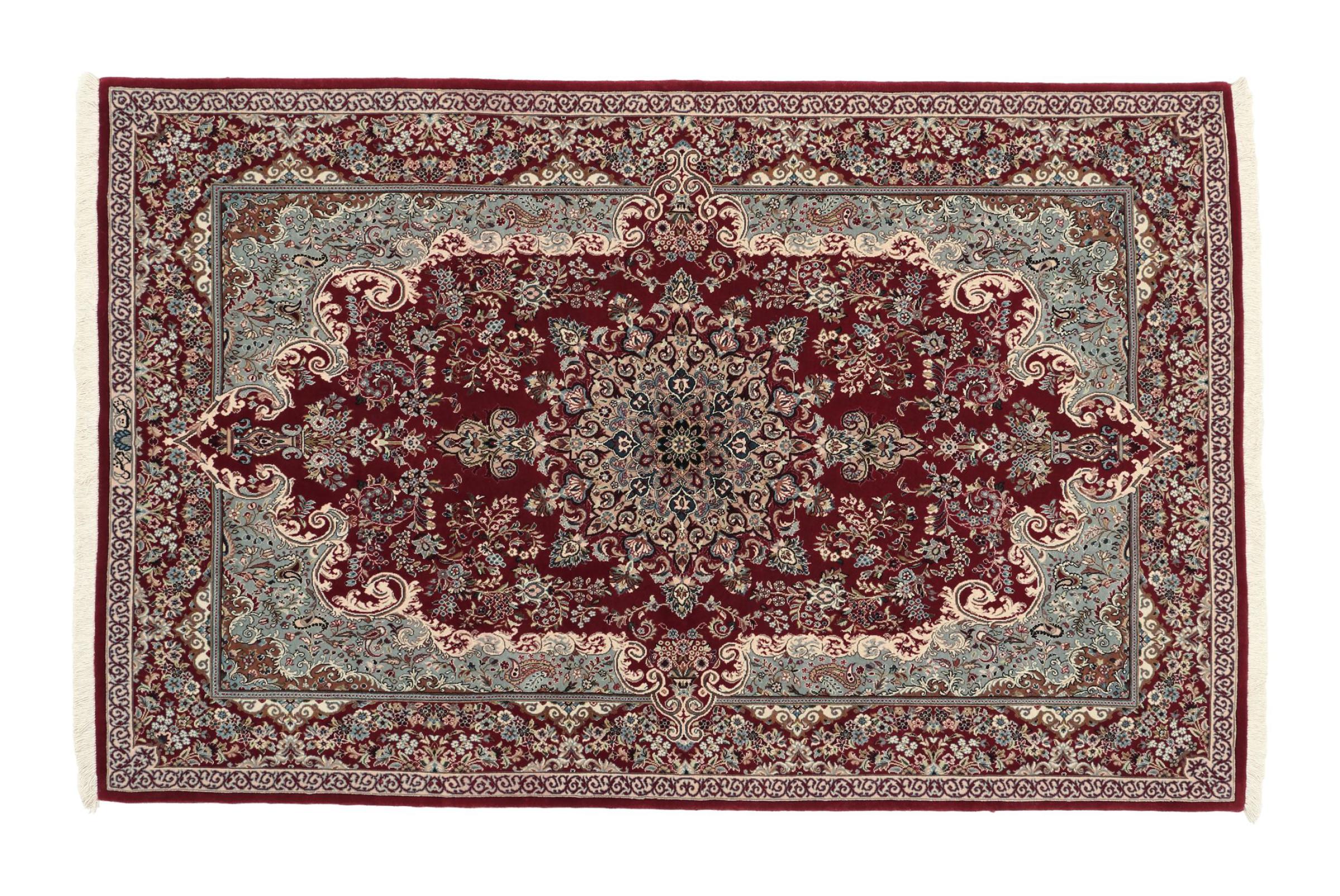 Dit tapijt is afkomstig uit Iran (voorheen Perzië) en geniet als Perzisch tapijt de waarschijnlijk hoogste reputatie onder alle handgeknoopte tapijtsoorten. Geen enkele andere regio kijkt terug op zo'n lange traditie in het knopen van tapijten als Iran. Dus de waarschijnlijk mooiste en meest uitgebreide tapijten komen hier. De robuustheid, duurzaamheid en kwaliteit van de Perzische knoop zijn vandaag de dag nog steeds onovertroffen. Perzische tapijten zijn meestal vernoemd naar hun regio van herkomst. Zo komt een Nain, een Ghom en een Isfahan tapijt uit de gelijknamige stad in Iran.
